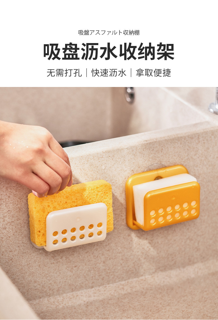 주방 그릇 세척 스폰지 배수 랙 펀치 무료 흡입 컵 싱크 랙 벽걸이 수세미 스틸 볼 보관 랙