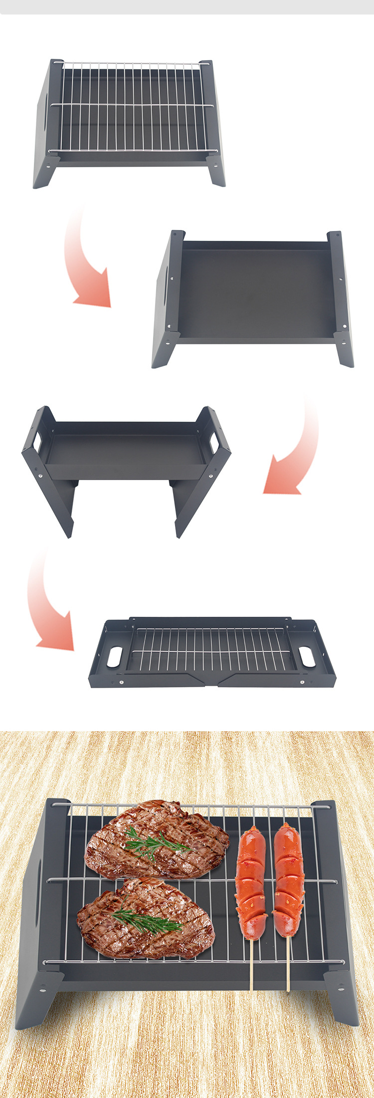 가정용 미니 바베큐 오븐 야외 무연 접이식 BBQ 선반 BBQ 숯 오븐 휴대용 오븐 로티 세리 기계