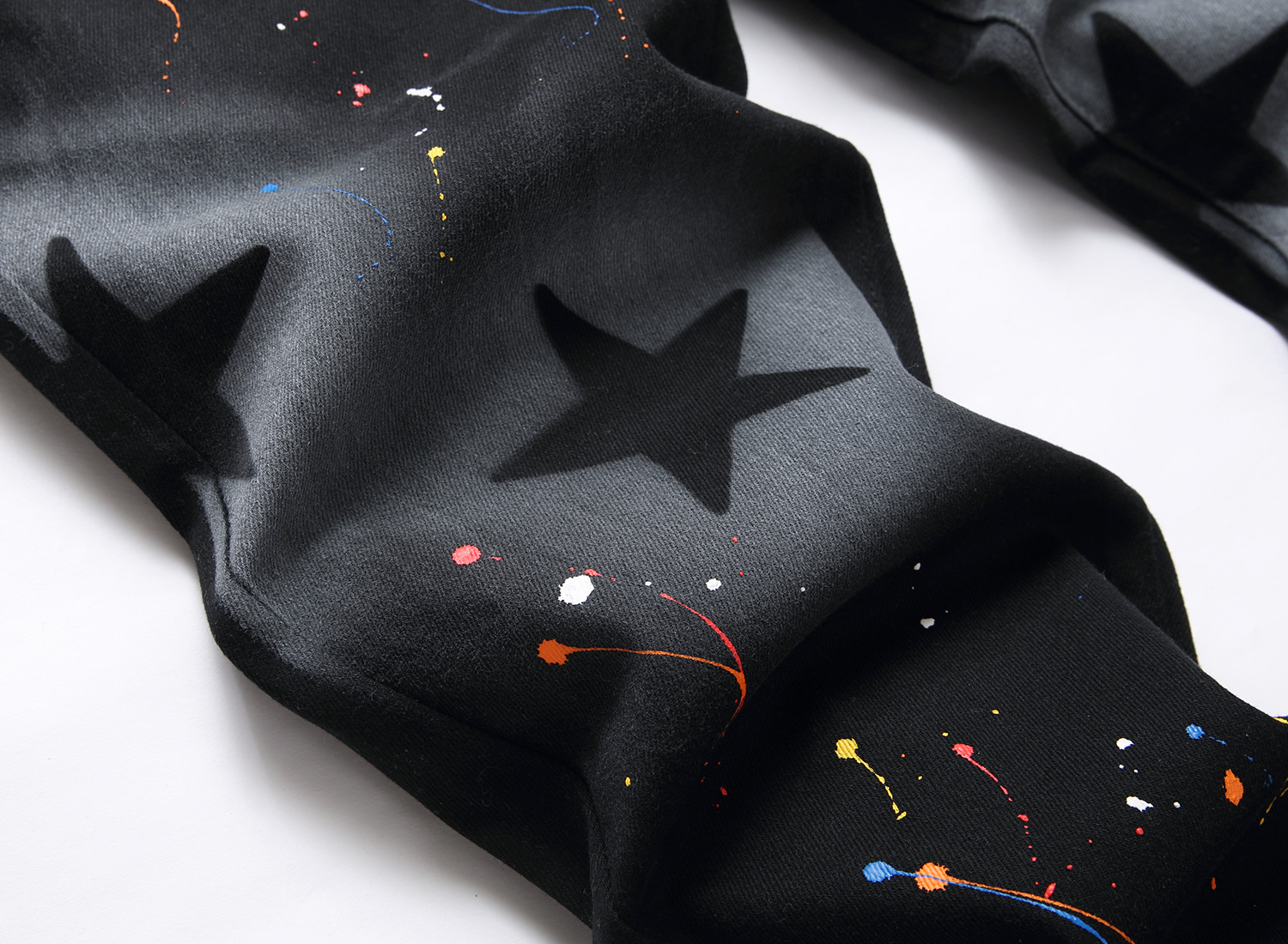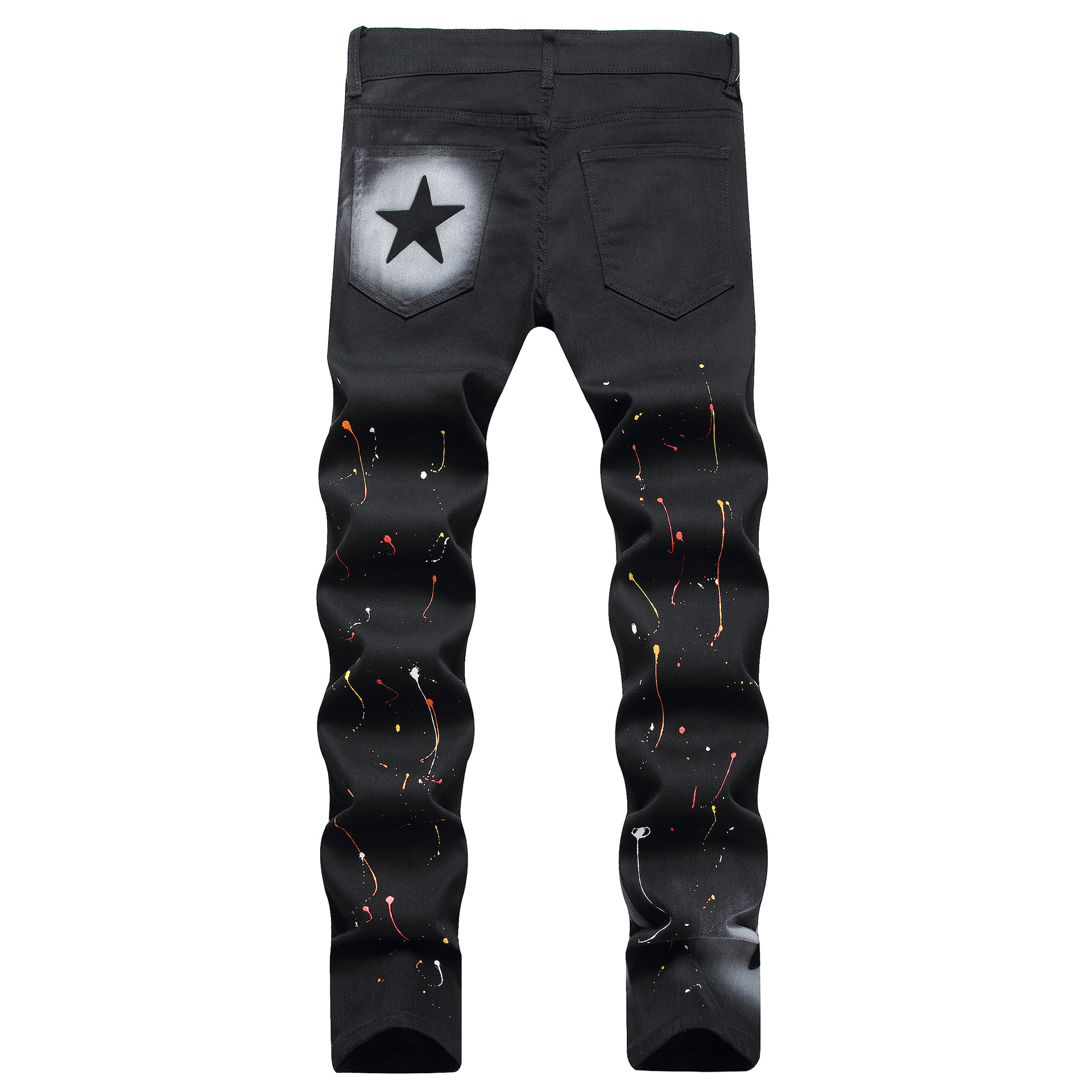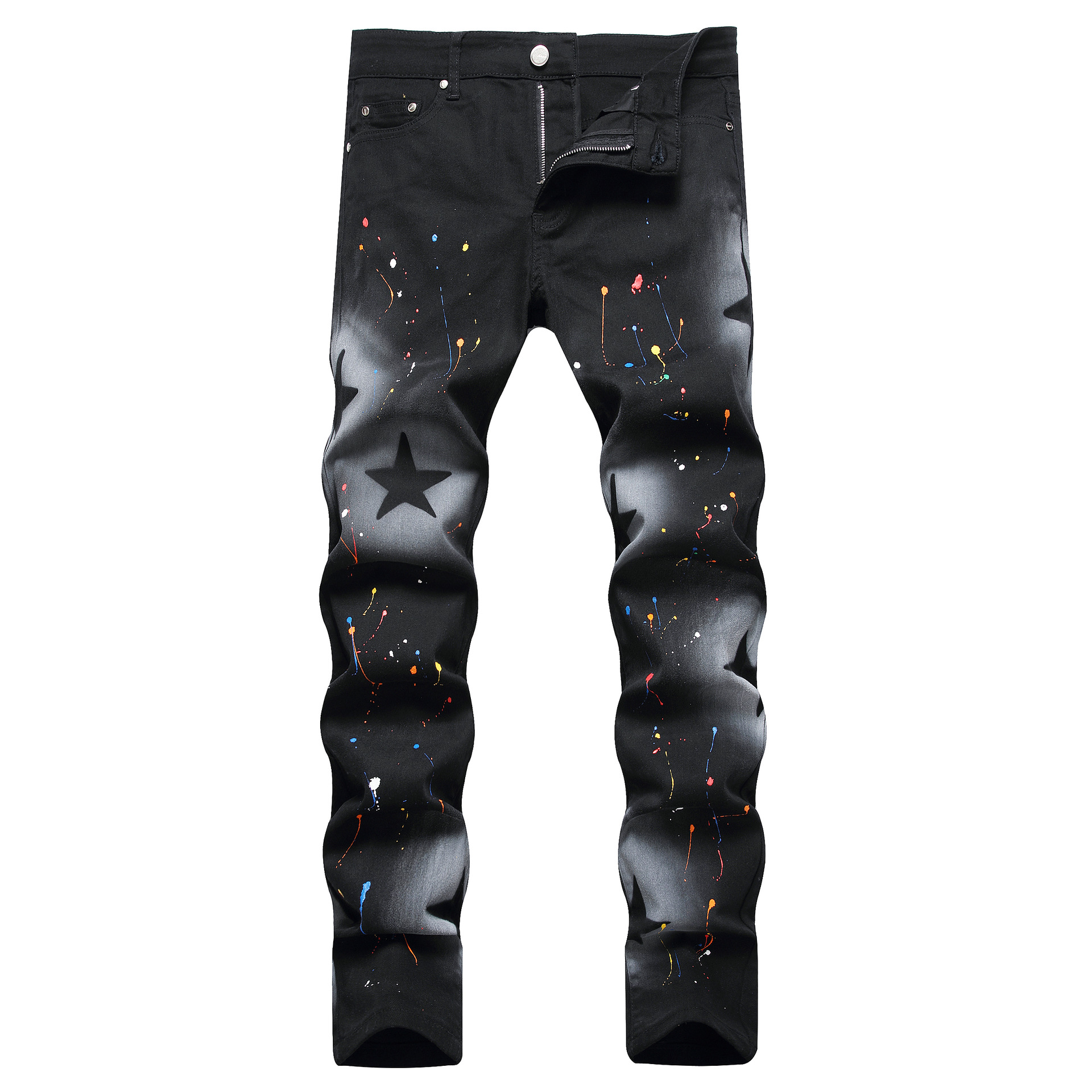 재고 유럽과 미국 크로스 국경 개인 손으로 그린 총 스프레이 5 각 별 색상 페인트 탄성 블랙 작은 스트레이트 청바지 남성