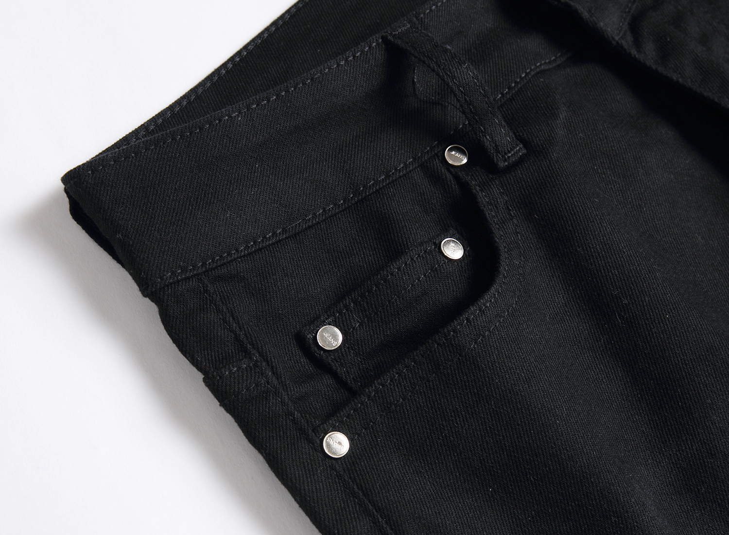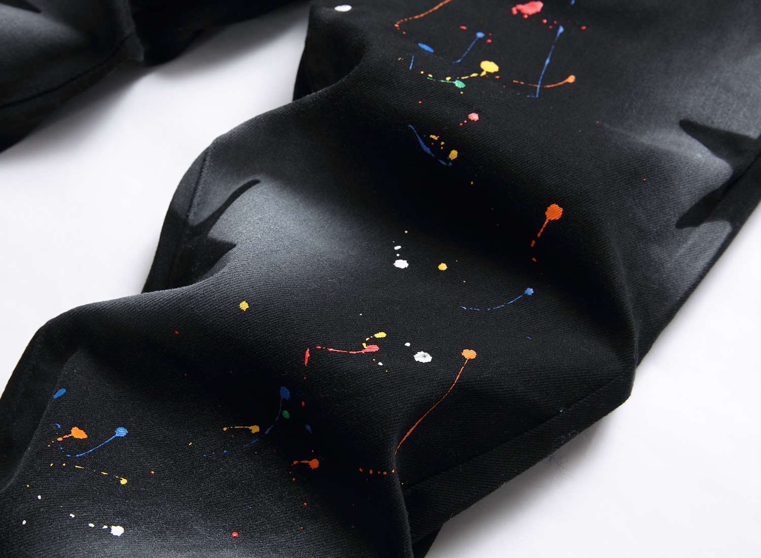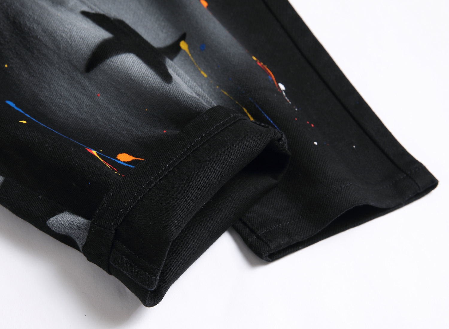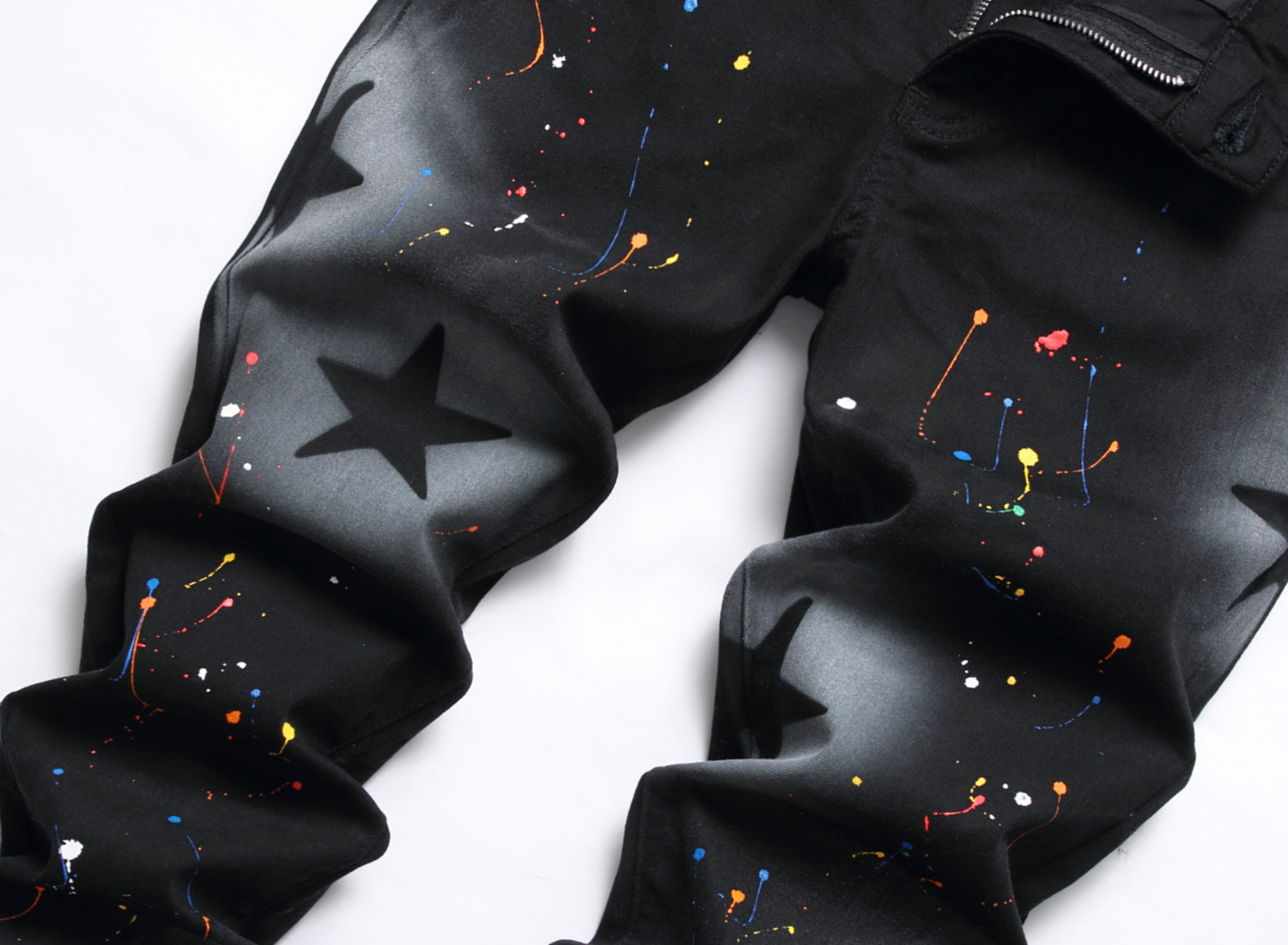 재고 유럽과 미국 크로스 국경 개인 손으로 그린 총 스프레이 5 각 별 색상 페인트 탄성 블랙 작은 스트레이트 청바지 남성