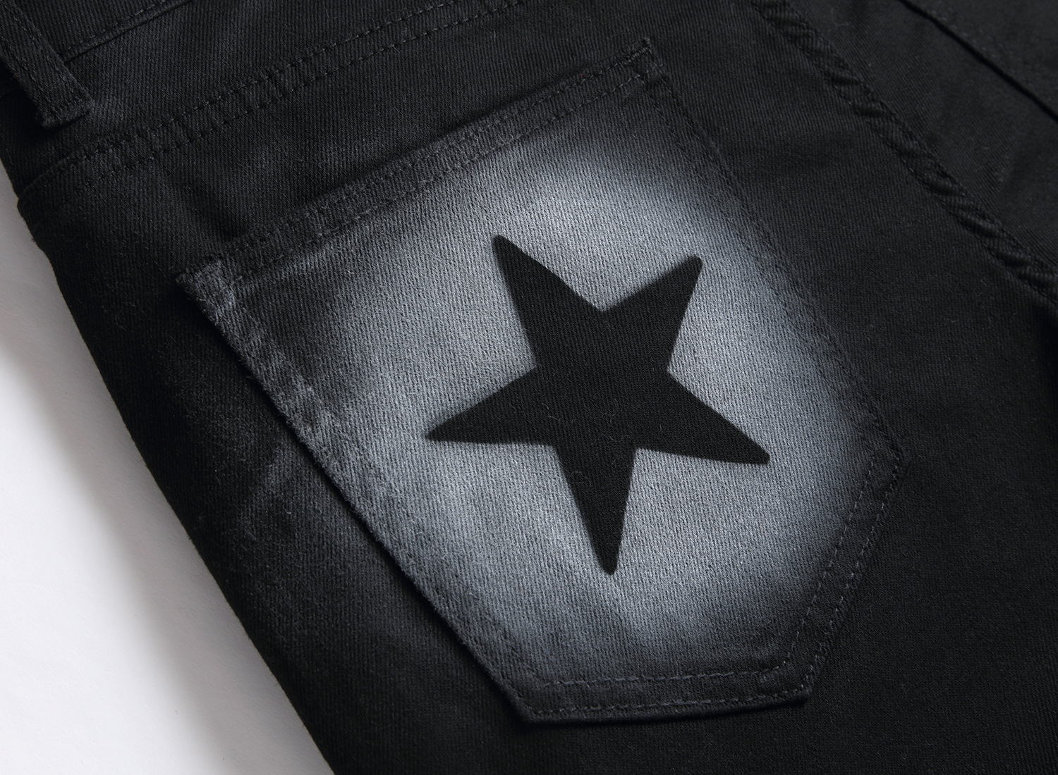 재고 유럽과 미국 크로스 국경 개인 손으로 그린 총 스프레이 5 각 별 색상 페인트 탄성 블랙 작은 스트레이트 청바지 남성스토어 가기