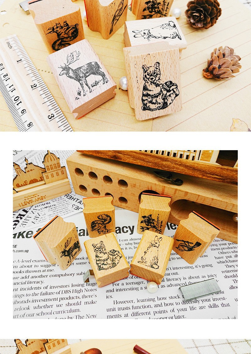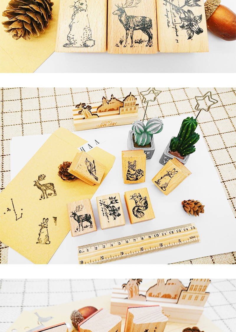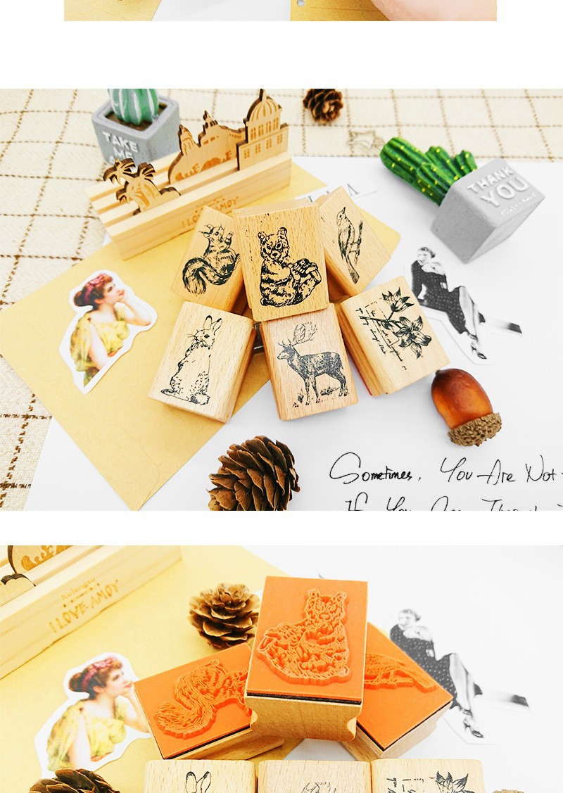 창조적 인 문구 귀여운 숲 나무 빈티지 인감 DIY 손 계정 일기 장식 나무 인감 6 선택스토어 가기
