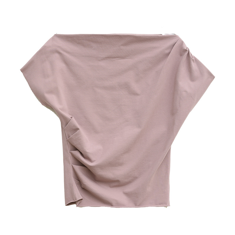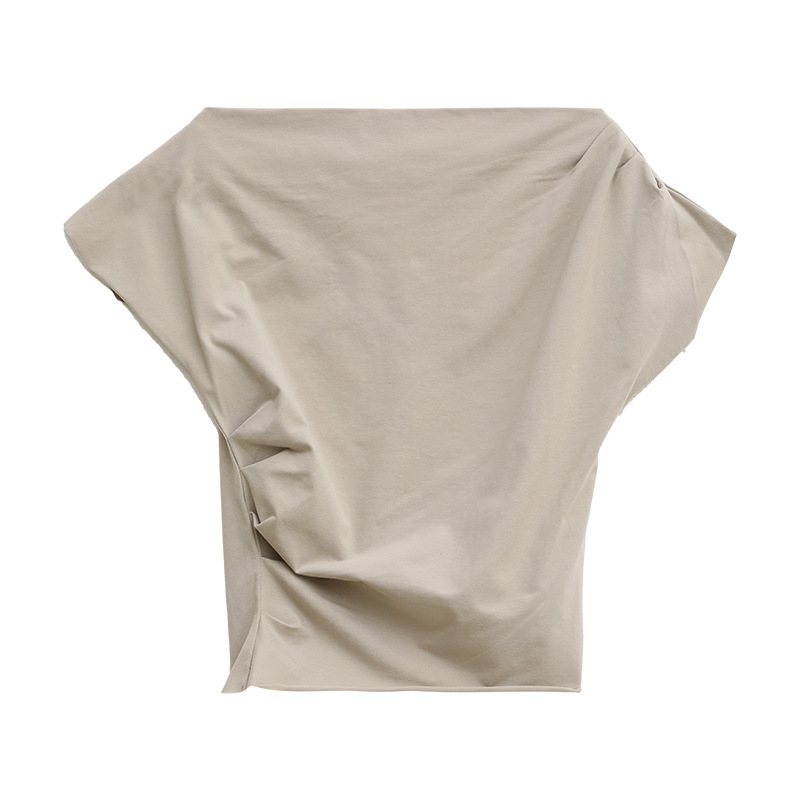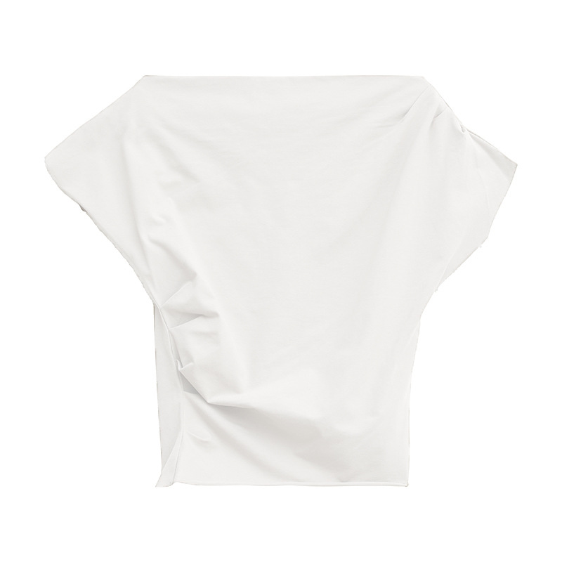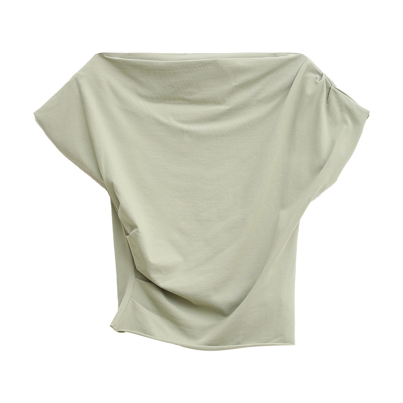 사랑과 Nanxi 13 라인 2025 여름 기울어 진 어깨 입체 주름 슬림 디자인 여성용 반팔 티셔츠 21140