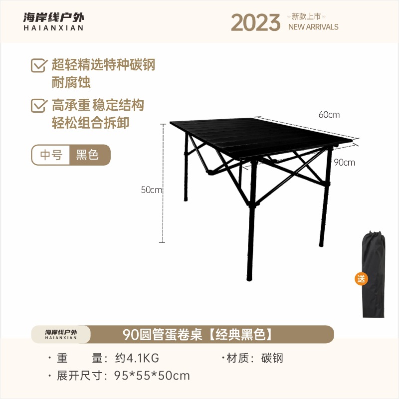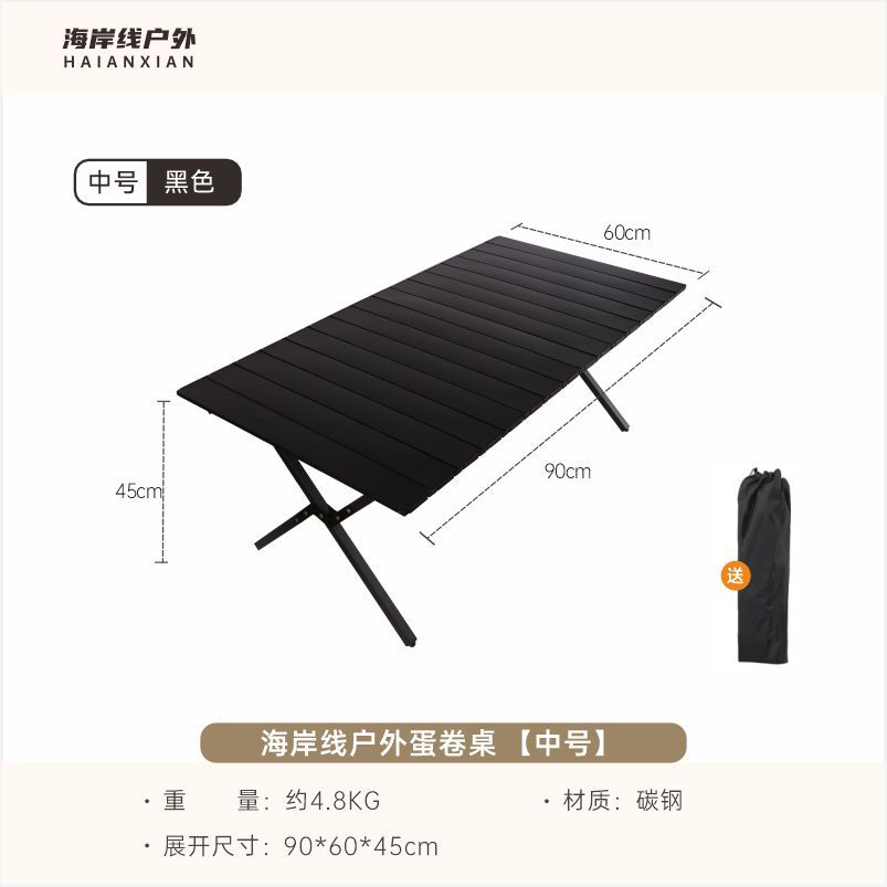 • 90 라운드 튜브 계란 롤 테이블 블랙