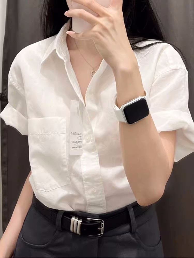 여성용 흰색 반팔 셔츠 여름 틈새 디자인 하이 엔드 캐주얼 다목적 통근 셔츠 루즈 한 반팔 탑