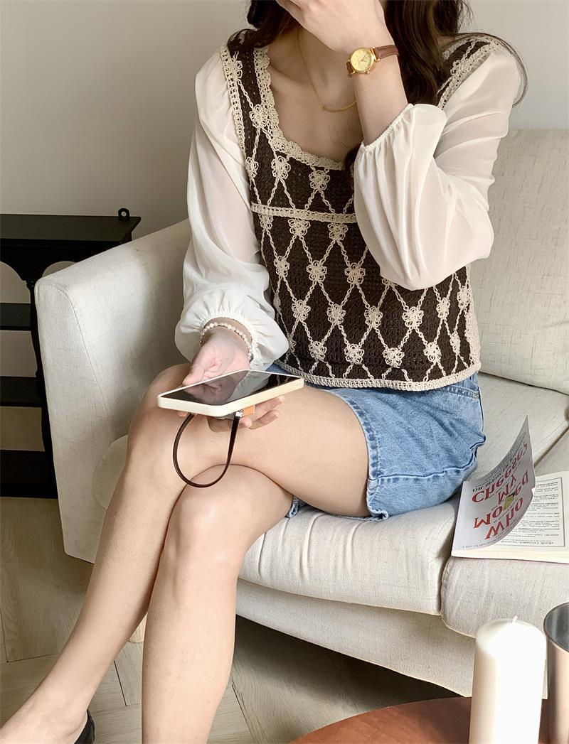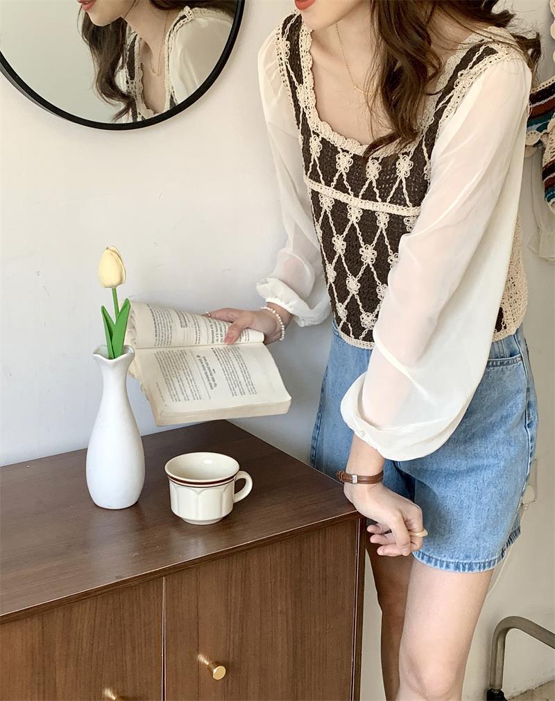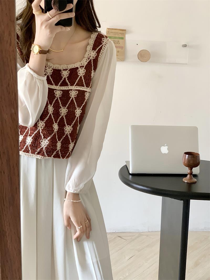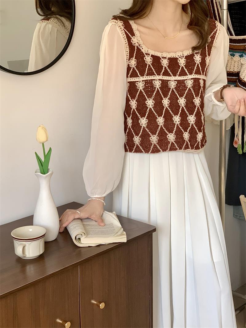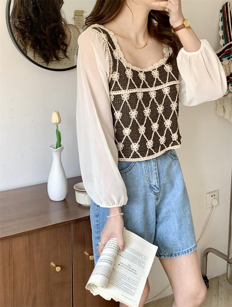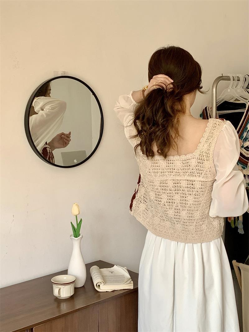 아카데미 스타일 크로 셰 뜨개질 중공 쉬폰 니트 스웨터 일본식 게으른 스타일 오버랩 짧은 버건디 가디건 여성용스토어 가기