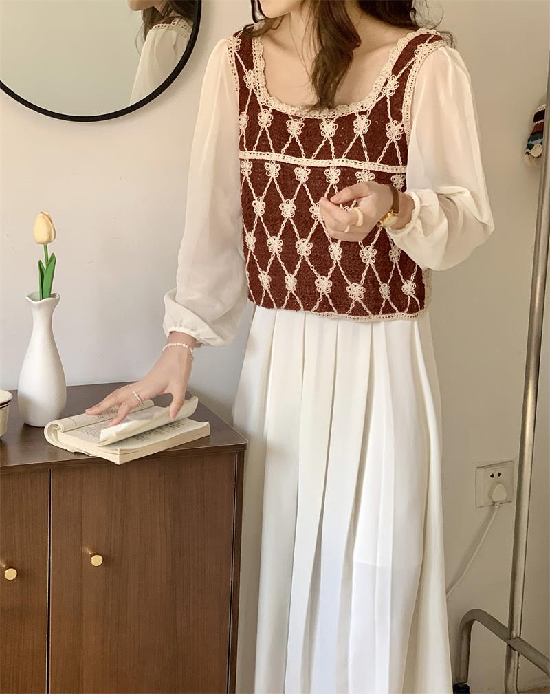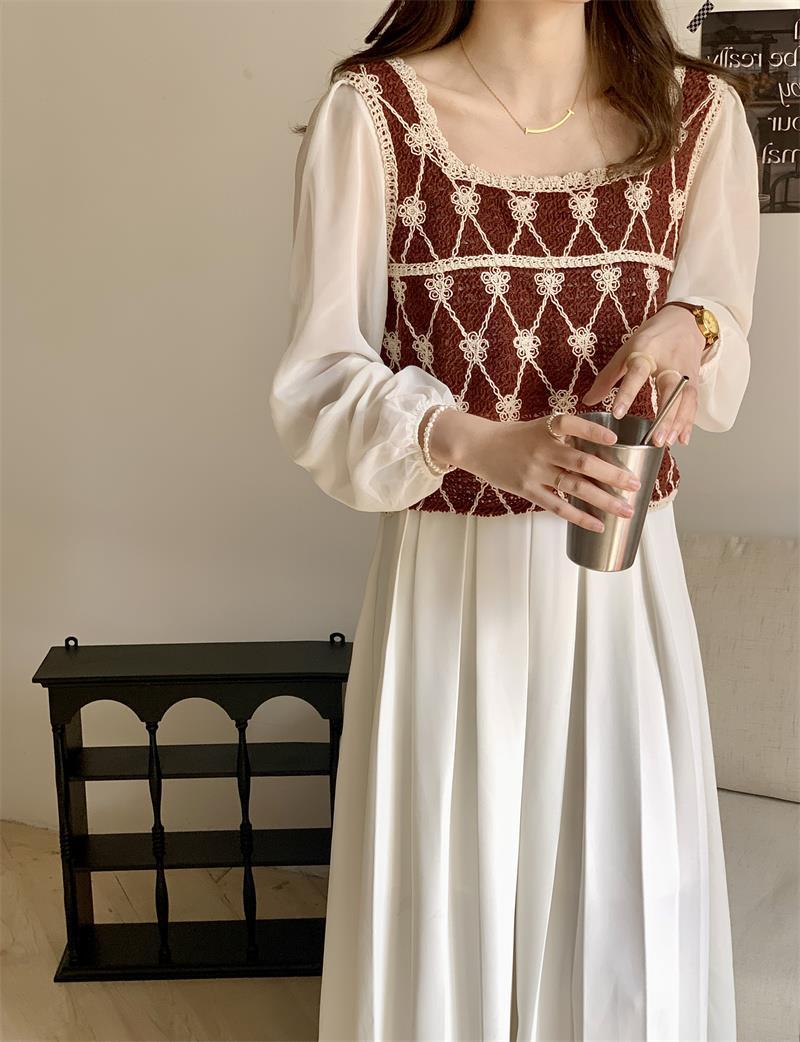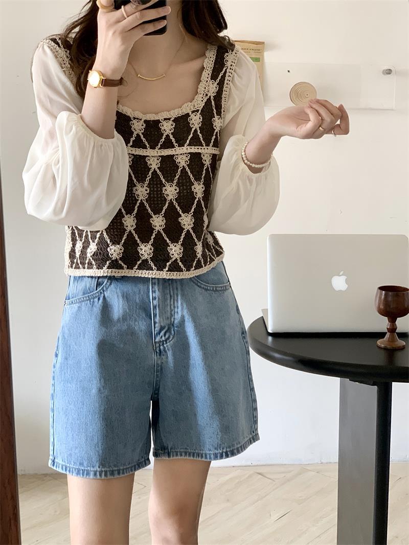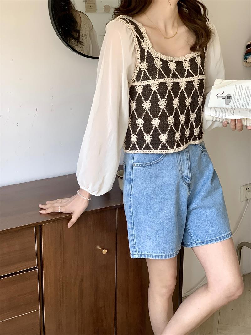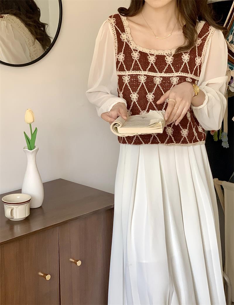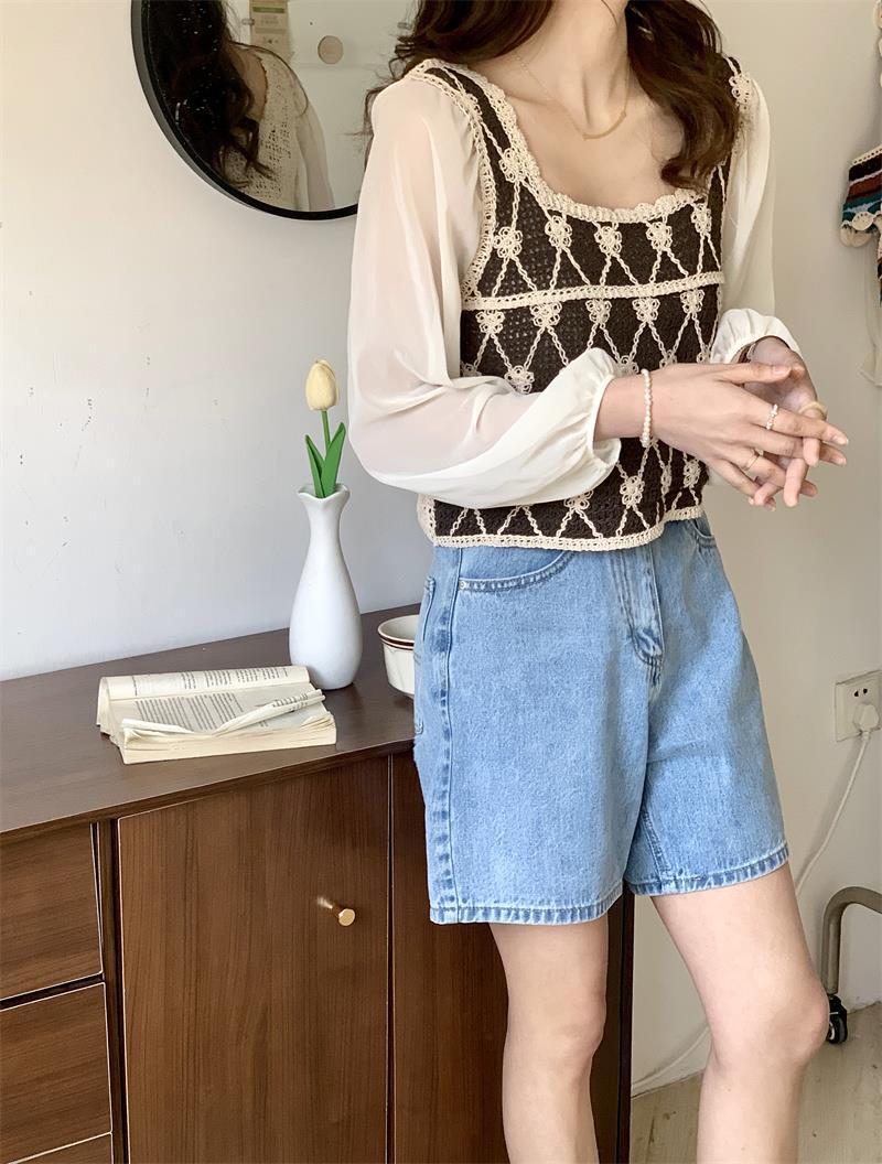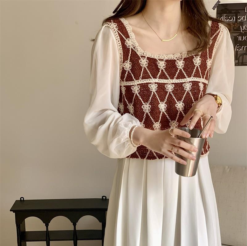 아카데미 스타일 크로 셰 뜨개질 중공 쉬폰 니트 스웨터 일본식 게으른 스타일 오버랩 짧은 버건디 가디건 여성용스토어 가기