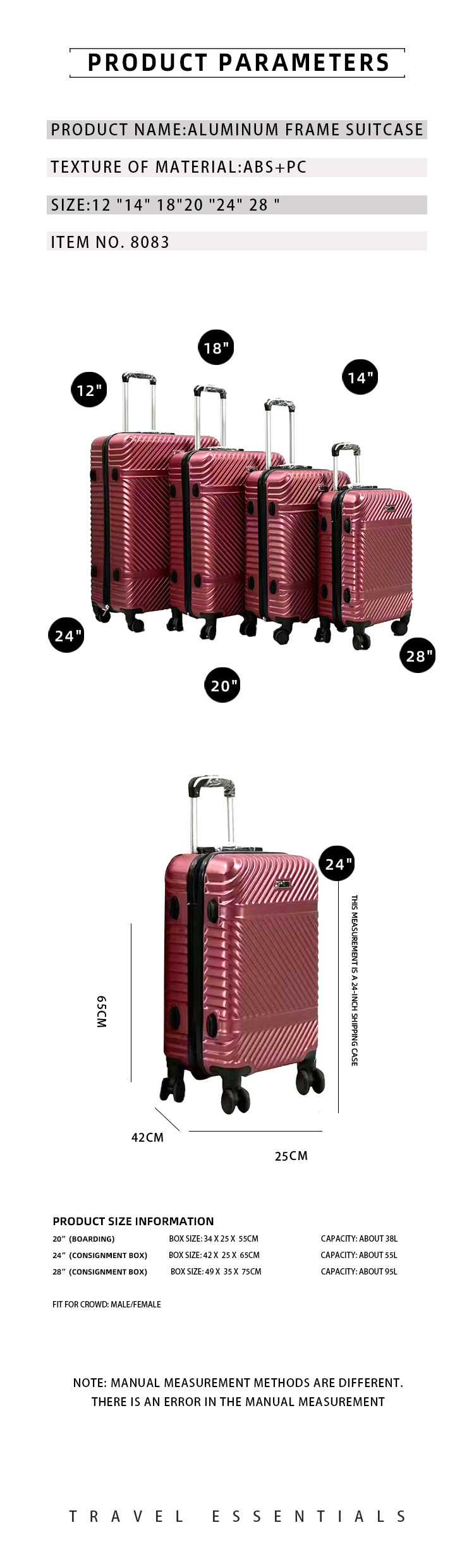 공장 도매 패션 캐주얼 ABS 트롤리 케이스 가방 3 조각 세트 멀티 피스 세트 세트스토어 가기