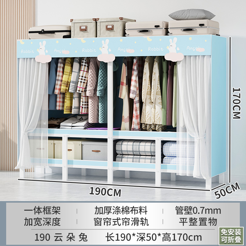 접이식 옷장 설치 무료 가구 침실 간단한 옷장 견고하고 튼튼한 철골 구조 임대 주택 천 옷장