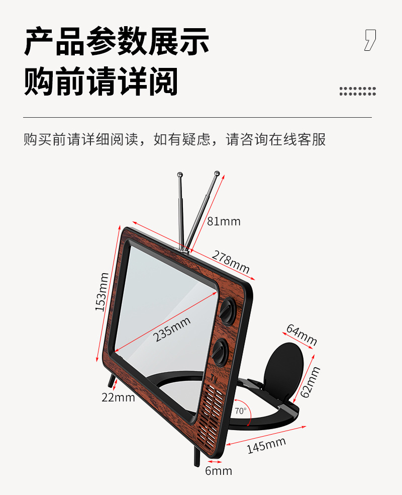 由于TV款式的手机屏幕放大器非常受市场欢迎,所以公司开发了更多的TV款式,如有不清楚的地方请联系客服哦~!