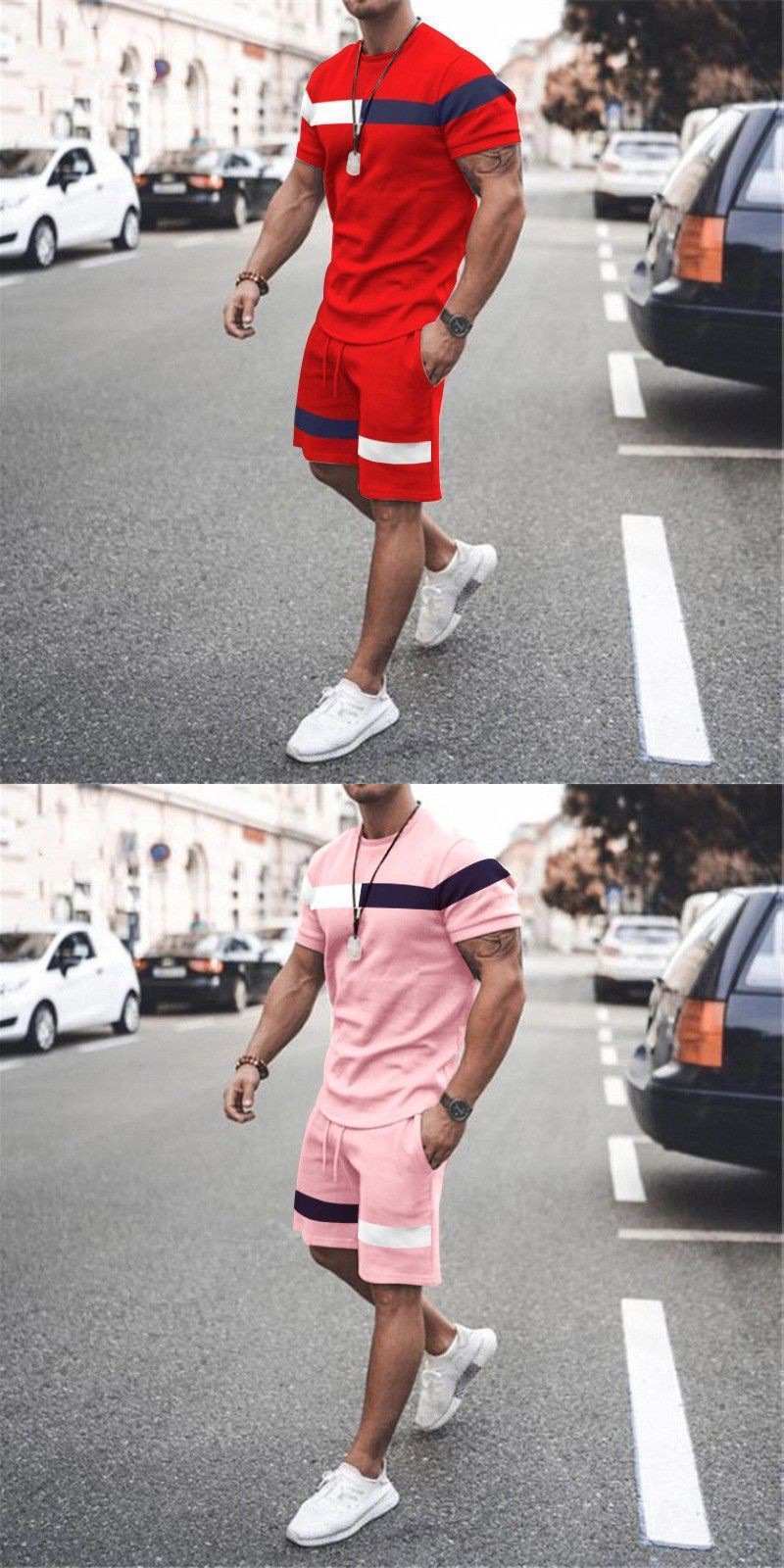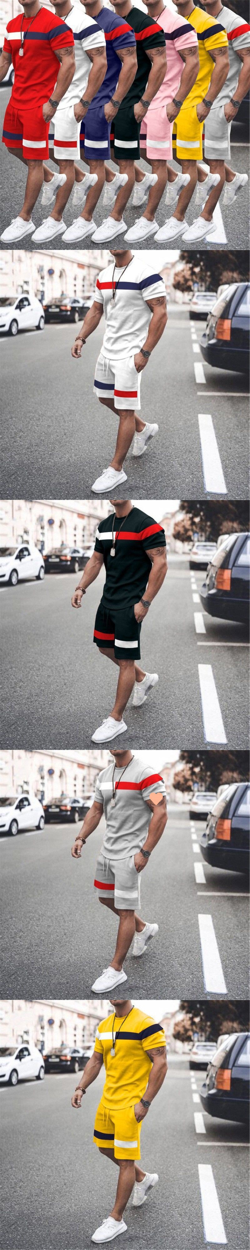 여름 홈 캐주얼 남자의 얇은 반팔 스포츠 스트랩 라운드 넥 피트니스 세트 남자의 트렌디 한 투피스 티셔츠스토어 가기