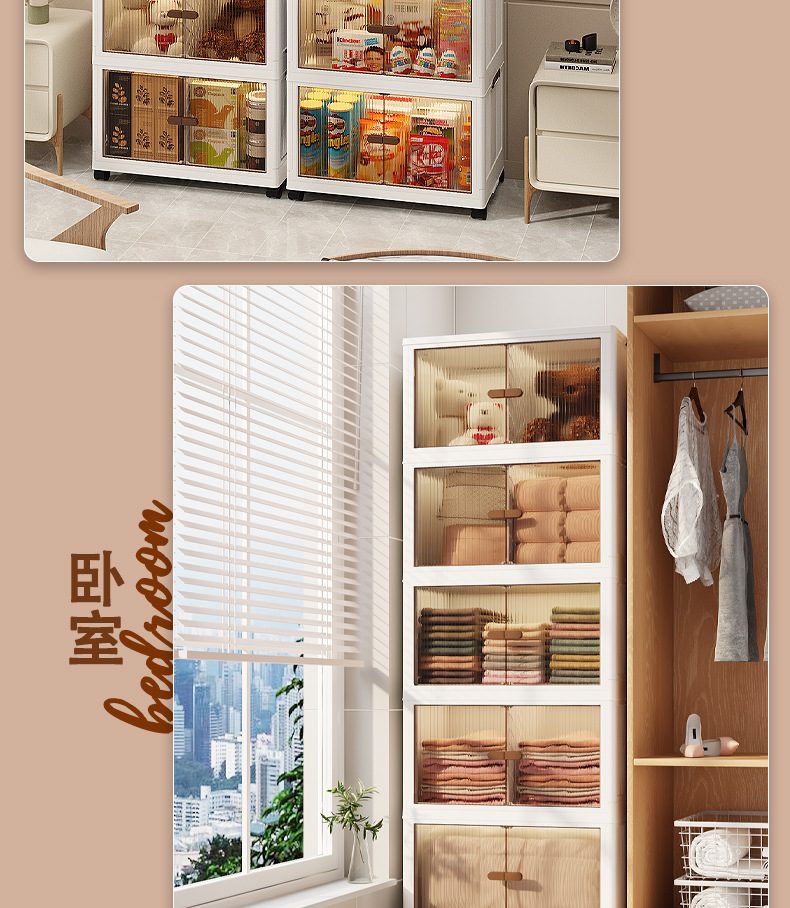 보관함 보관함 캐비닛 이중 도어 접이식 사물함 뚜껑이있는 다기능 서랍형 옷 장난감 주최자