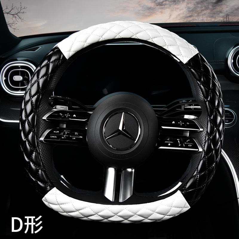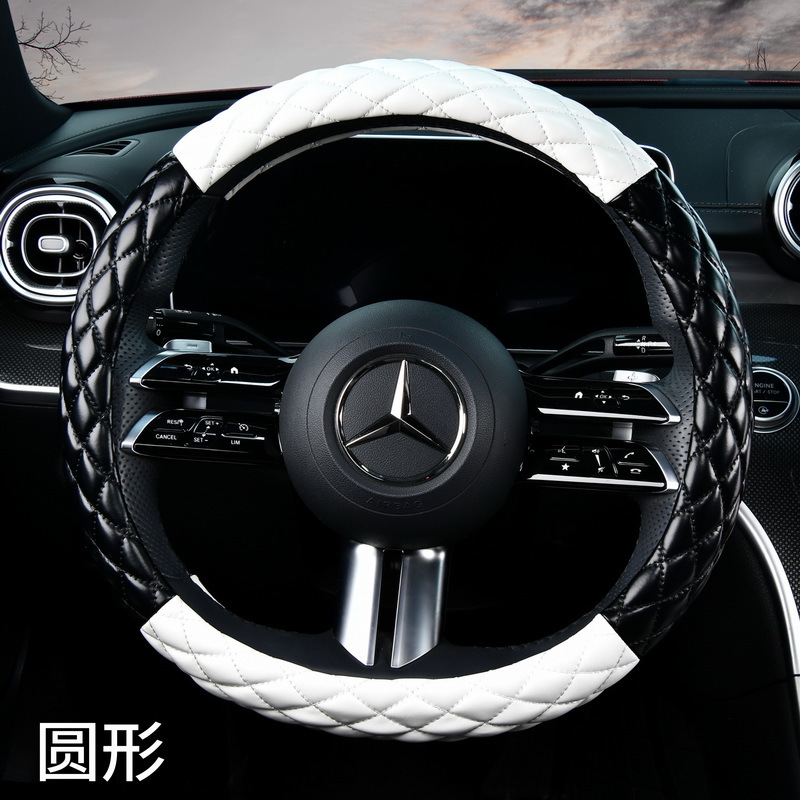 사계절용 심플하고 개성 넘치는 자동차 핸들 커버, 사계절 모두 사용 가능한 심플한 디자인의 블랙 앤 화이트 마름모 무늬 자동차 핸들 커버(여성용)스토어 가기