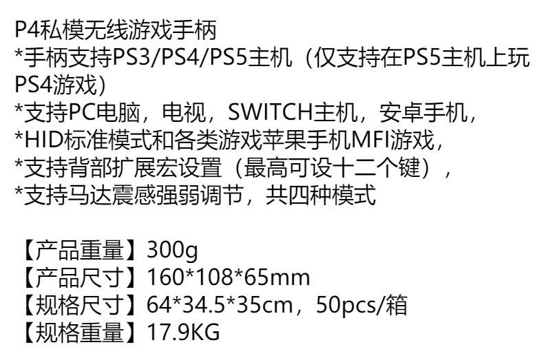 개인 모델 P4 무선 게임 핸들 PS4 게임 핸들 지원 PC 컴퓨터/PS4/스위치/Android 게임