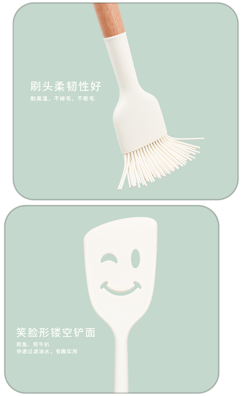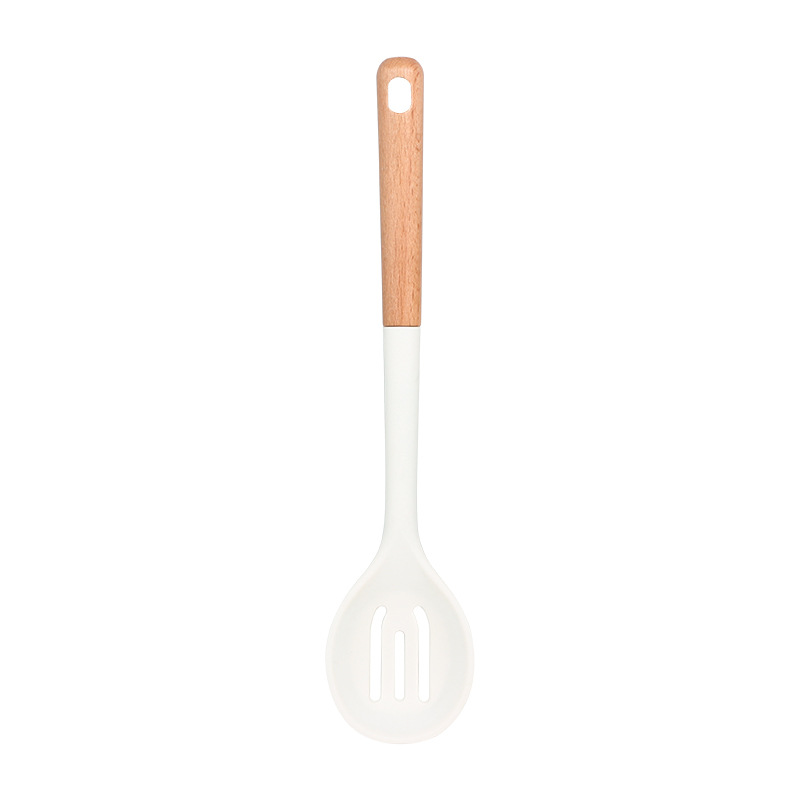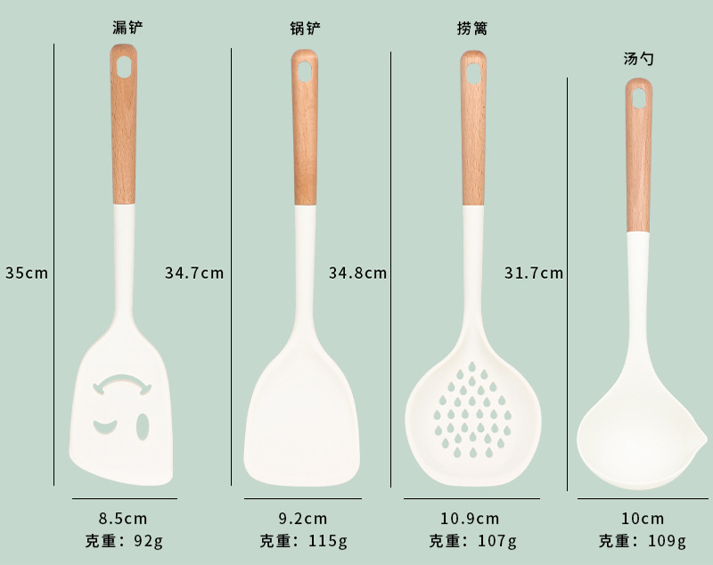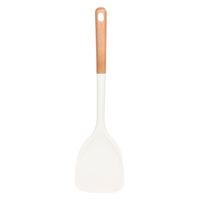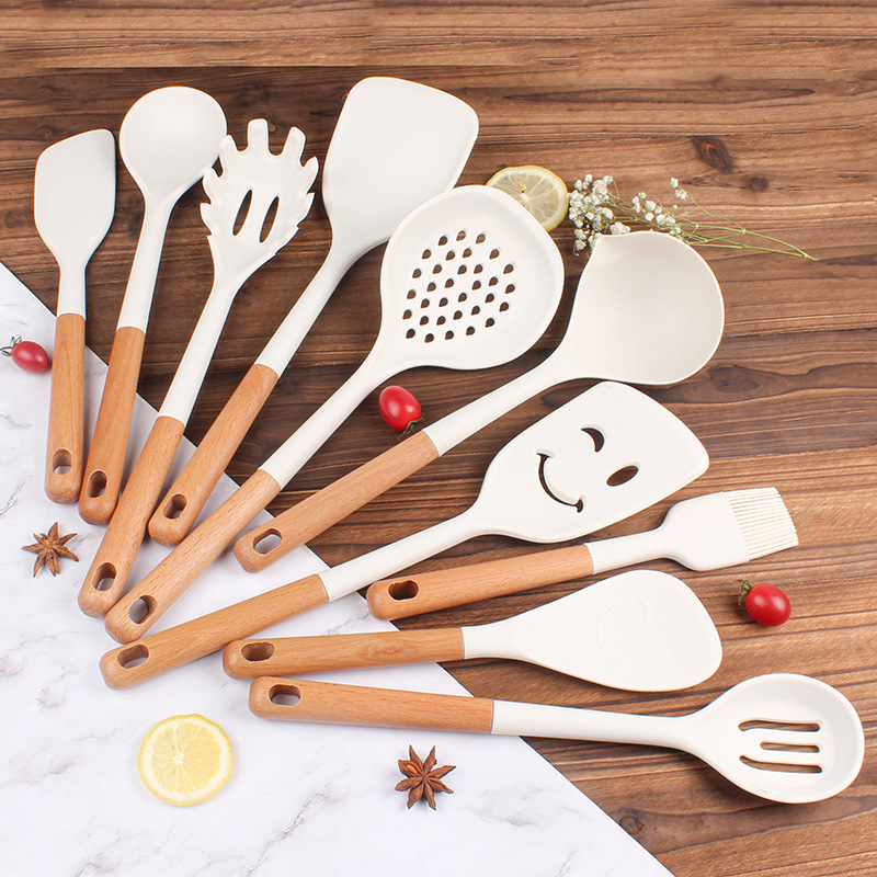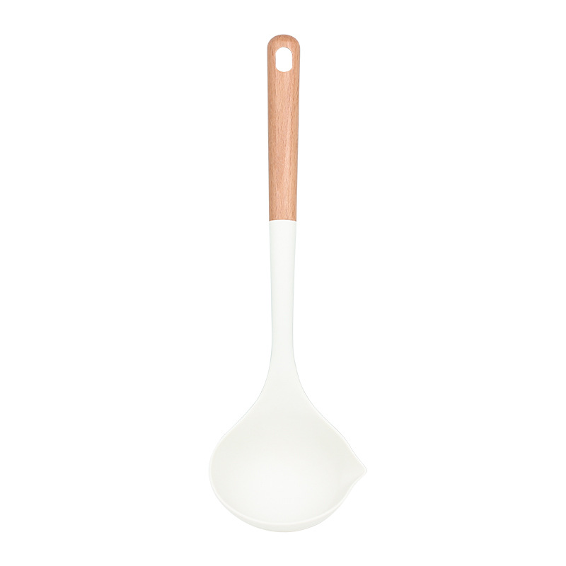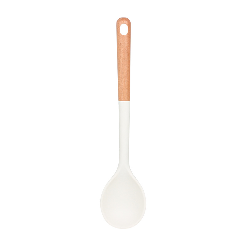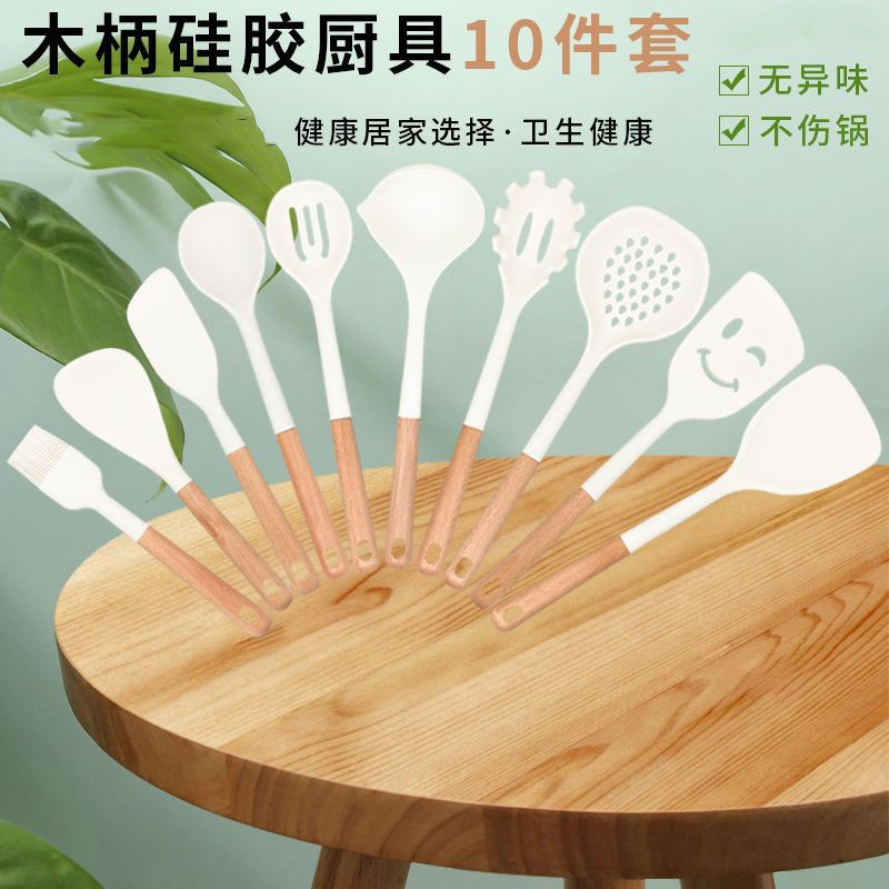 새로운 나무 손잡이 실리콘 주방 용품 세트 주방 가정용 주걱 수프 스푼 고온 저항 붙지 않는 요리 도구