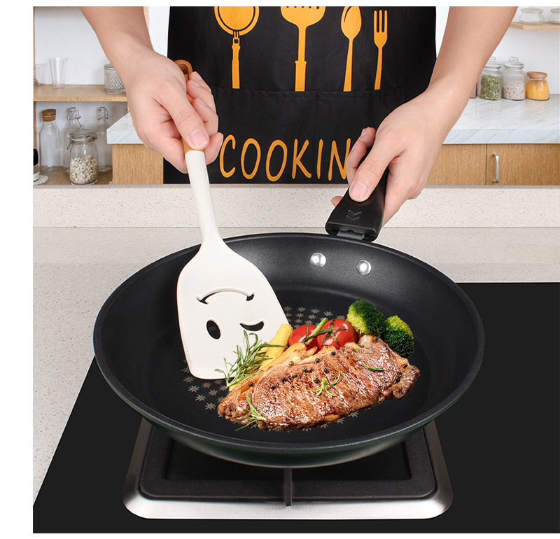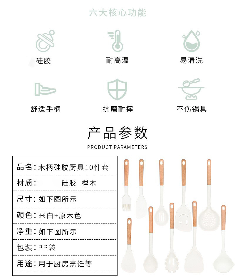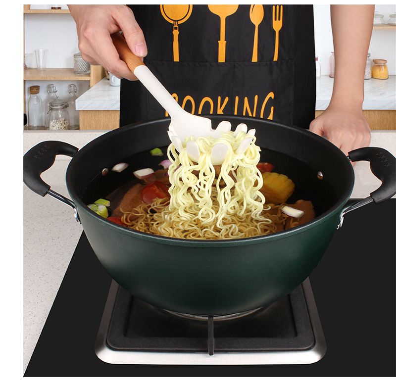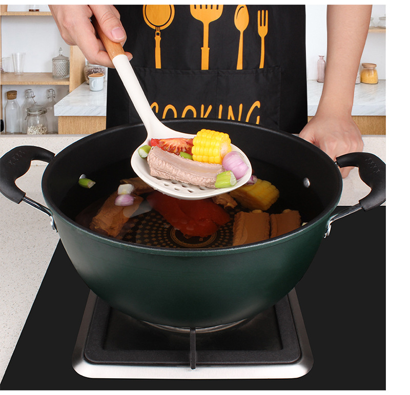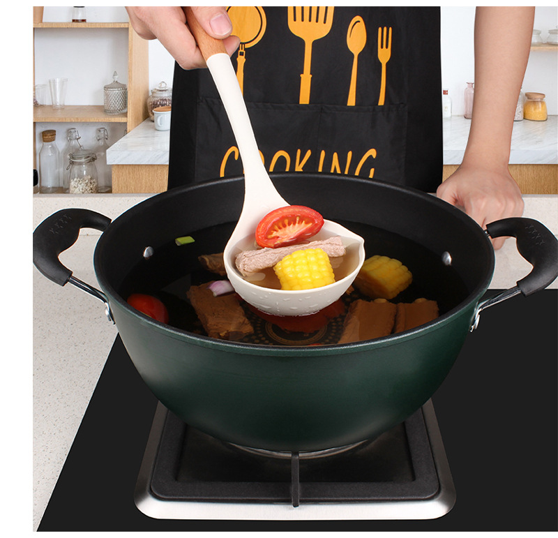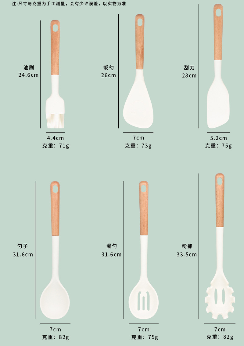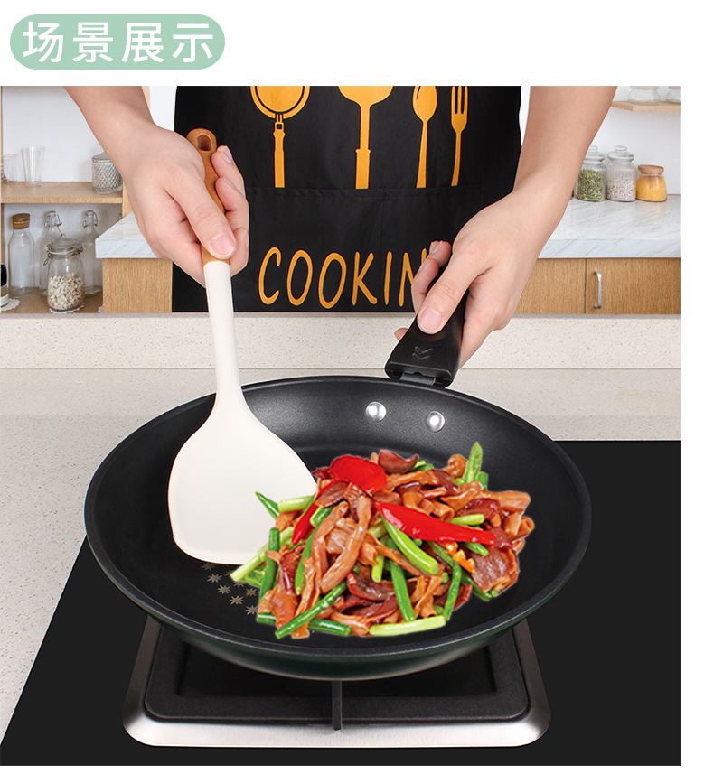 새로운 나무 손잡이 실리콘 주방 용품 세트 주방 가정용 주걱 수프 스푼 고온 저항 붙지 않는 요리 도구