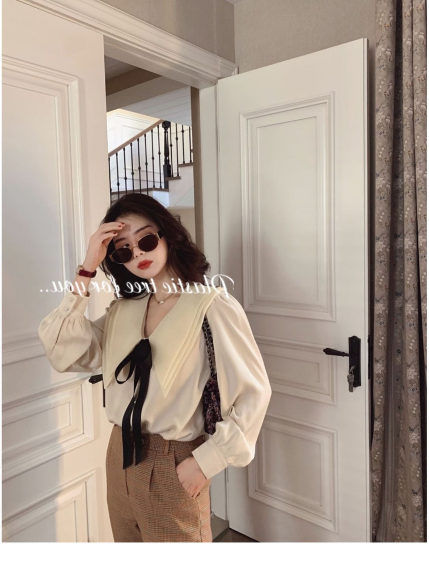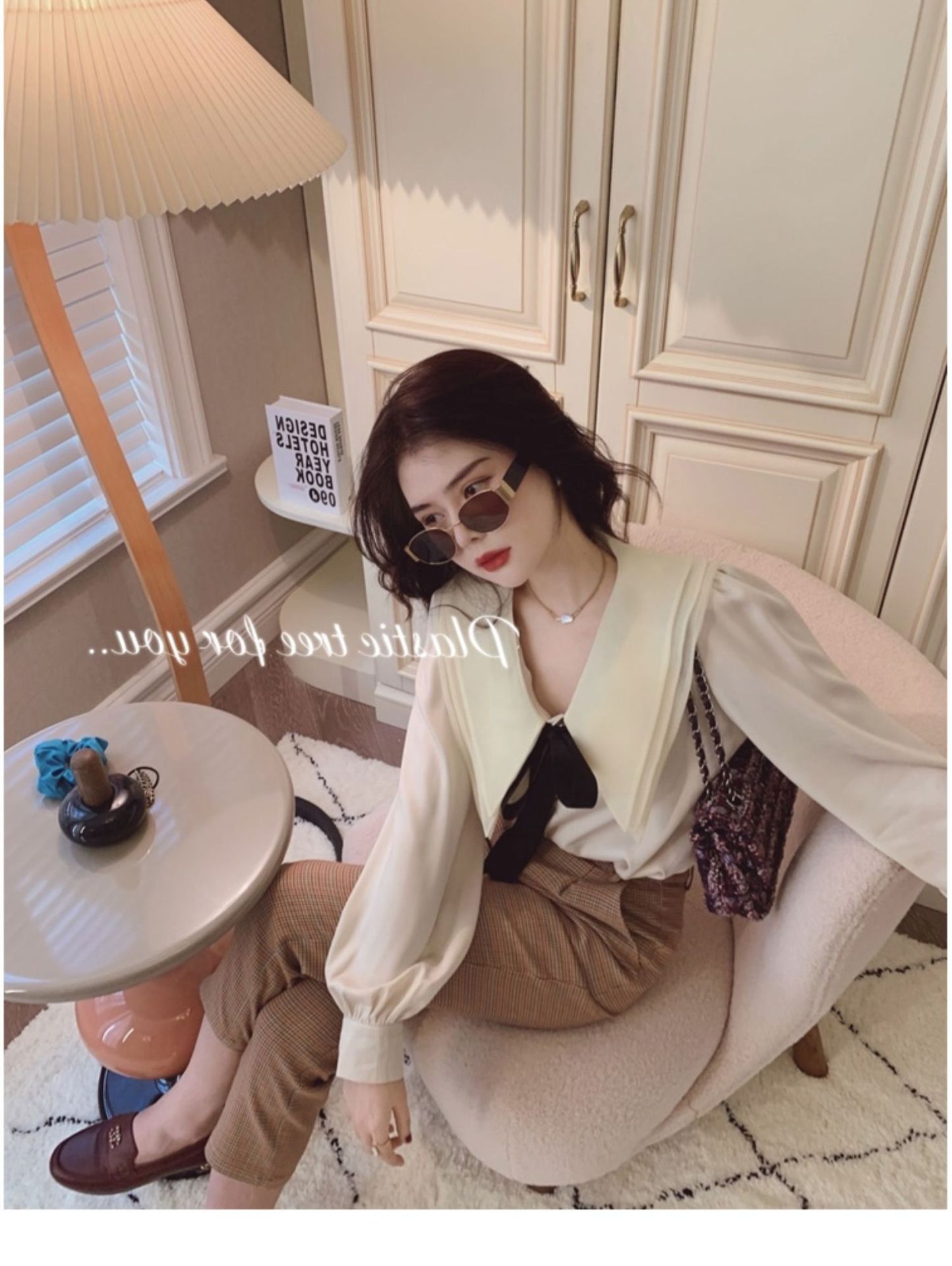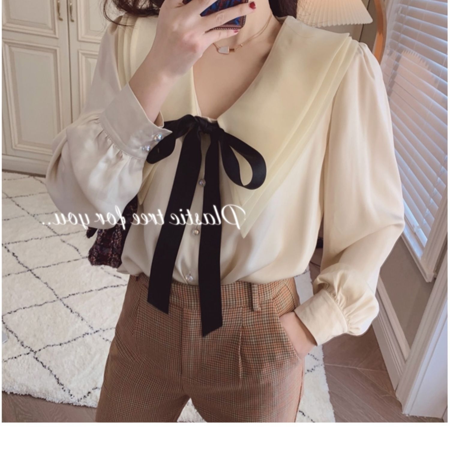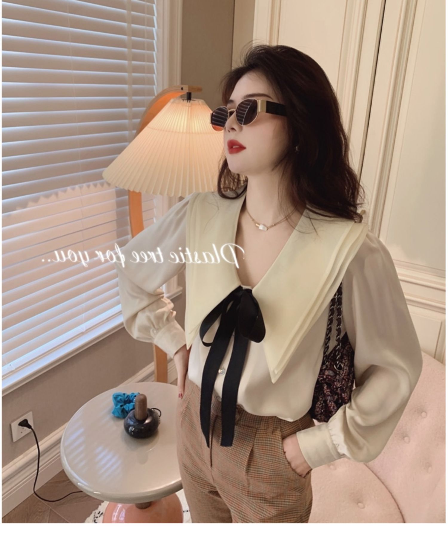 1069 프랑스 스타일 부드러운 스타일 달콤한 인형 칼라 탑 여성의 이른 봄 새로운 디자인 감각베이스 쉬폰 셔츠스토어 가기