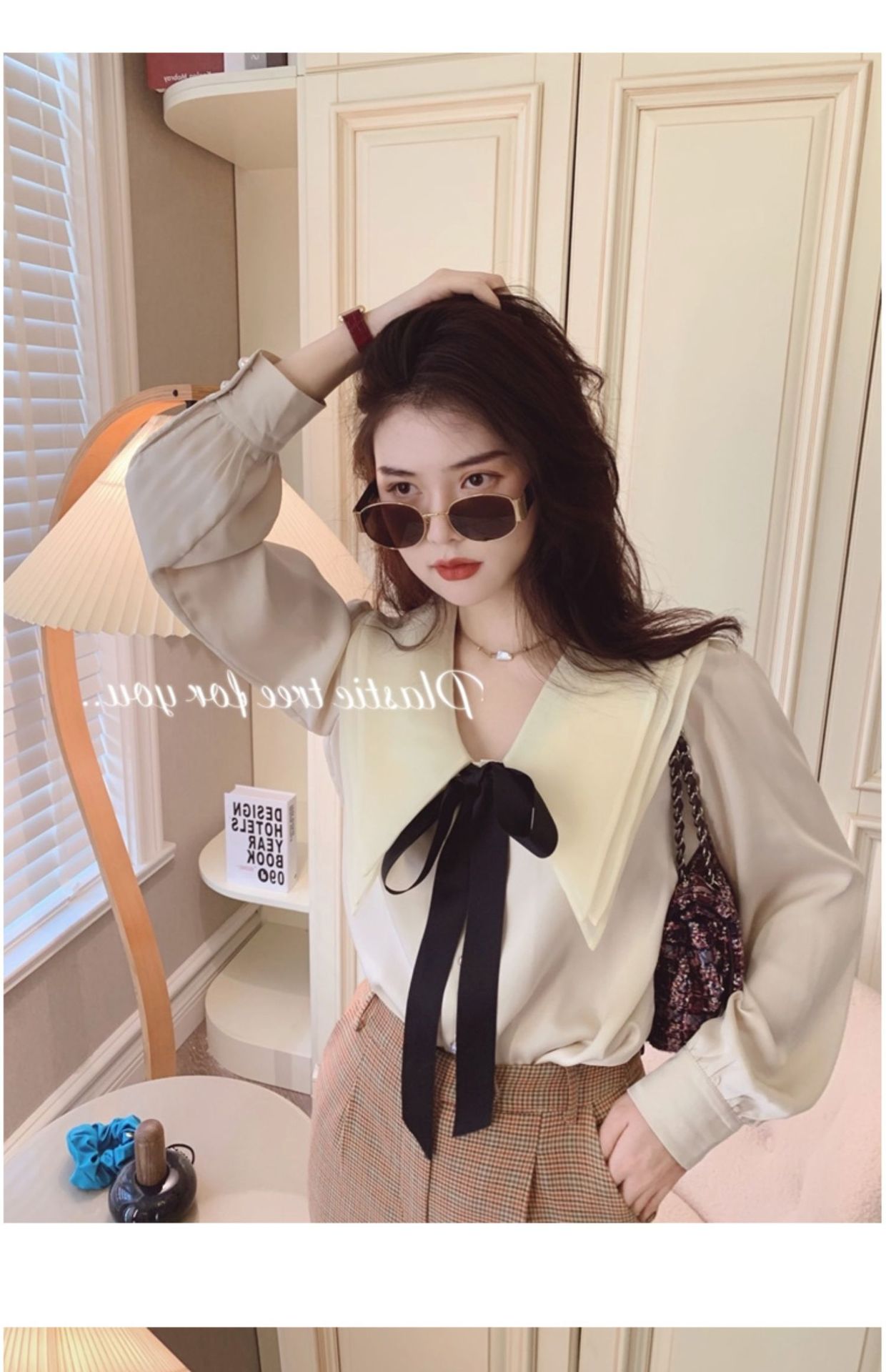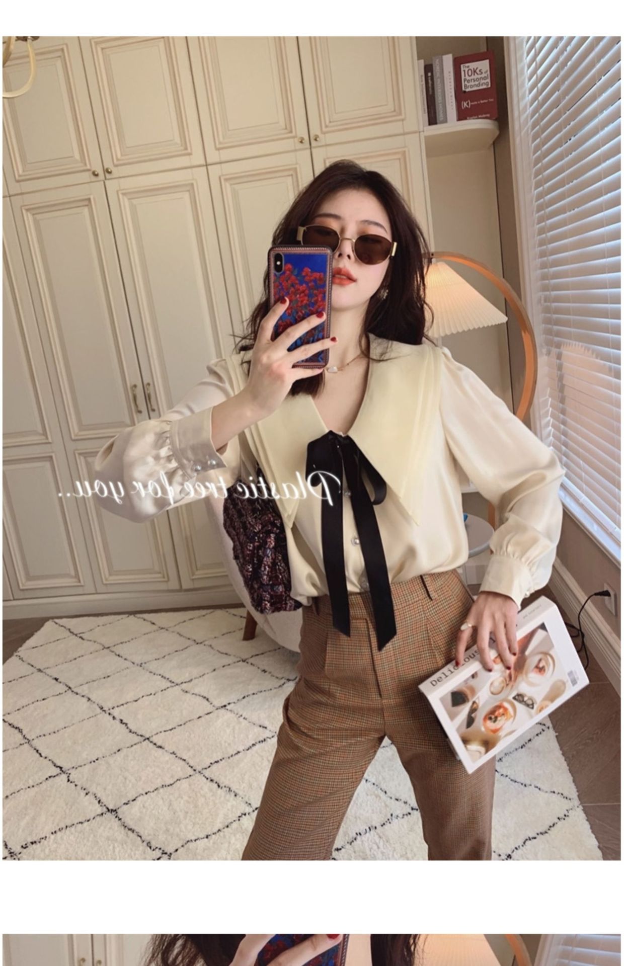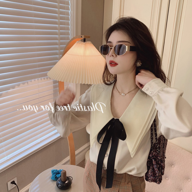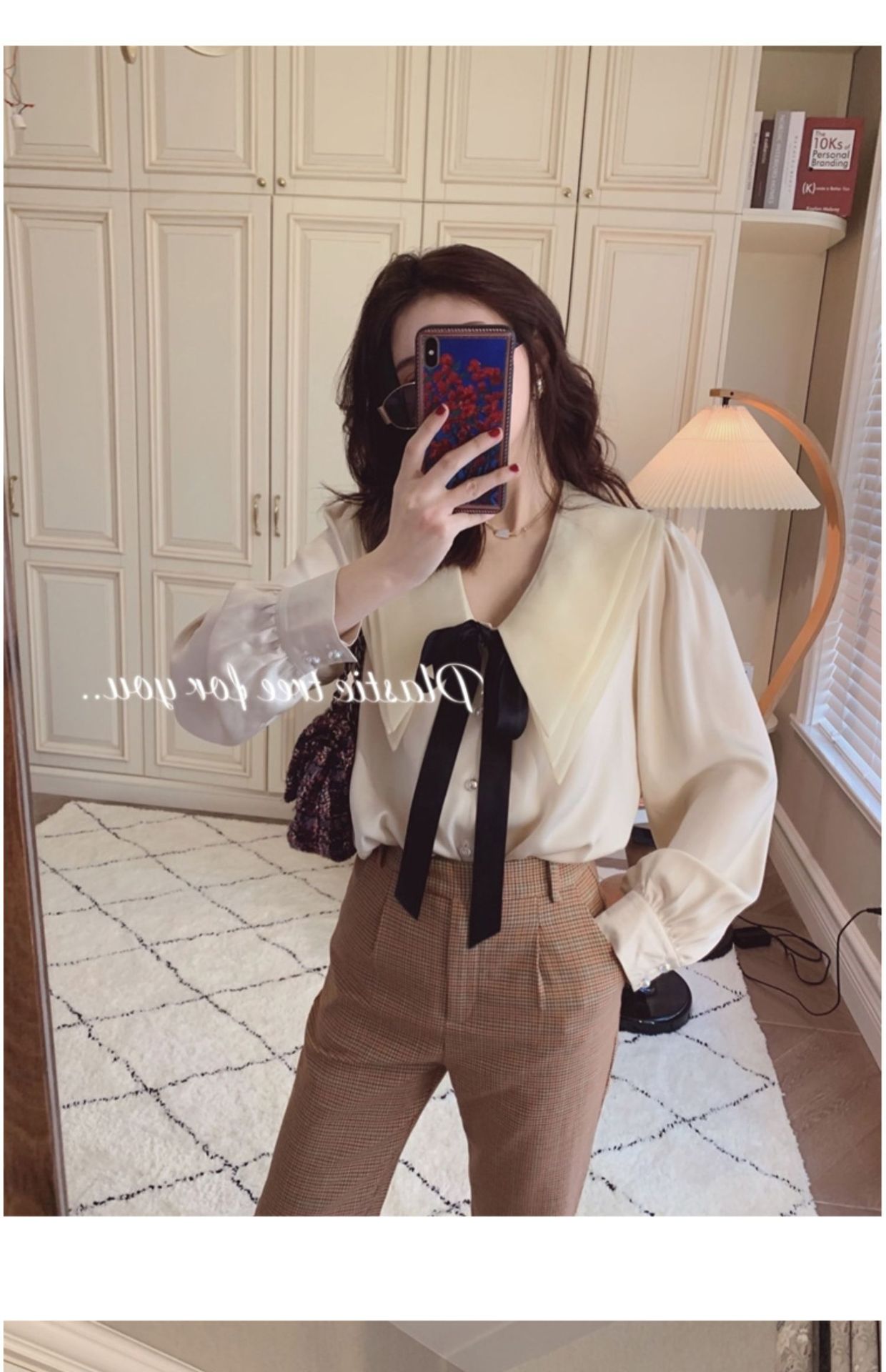 1069 프랑스 스타일 부드러운 스타일 달콤한 인형 칼라 탑 여성의 이른 봄 새로운 디자인 감각베이스 쉬폰 셔츠스토어 가기
