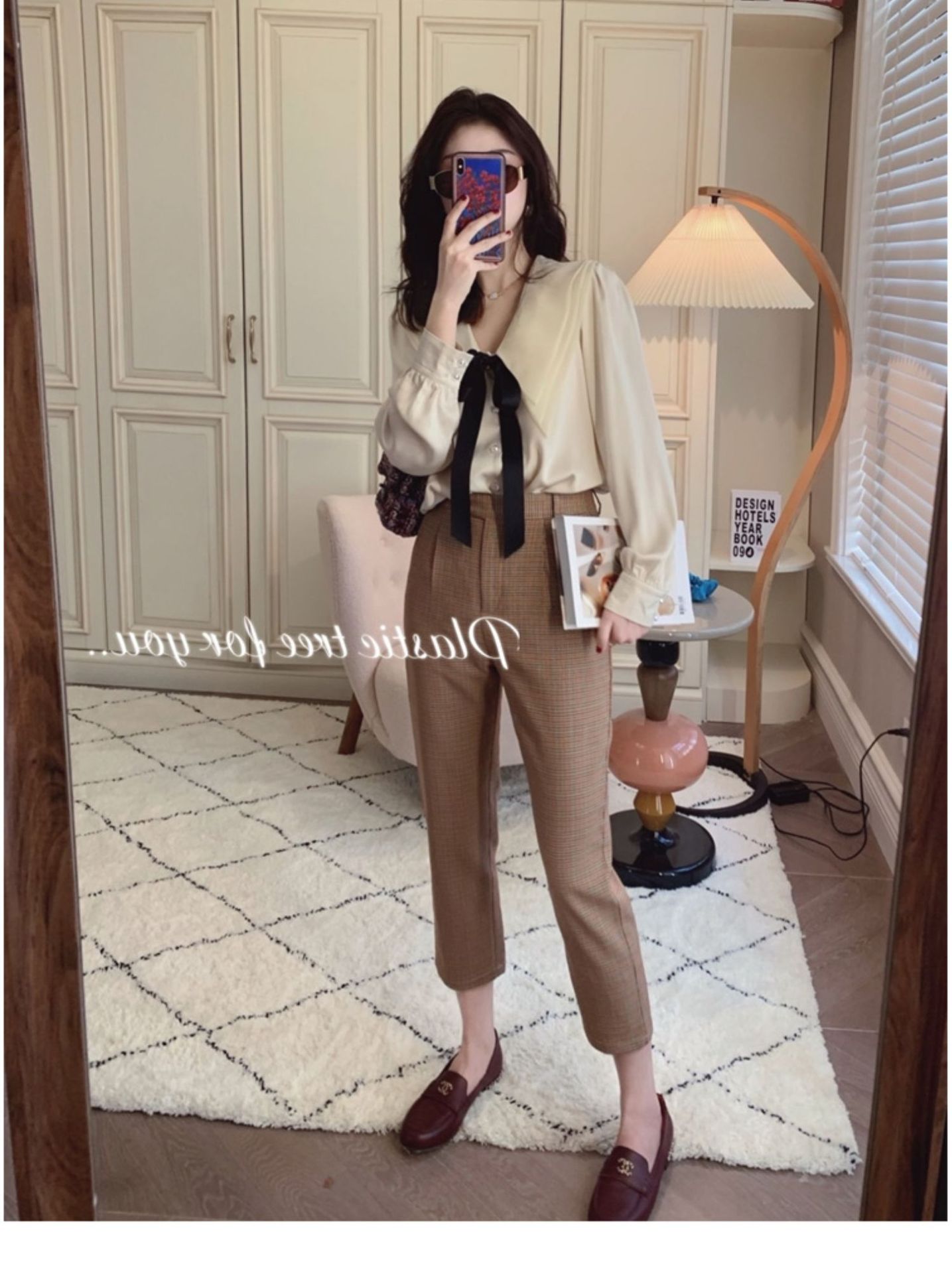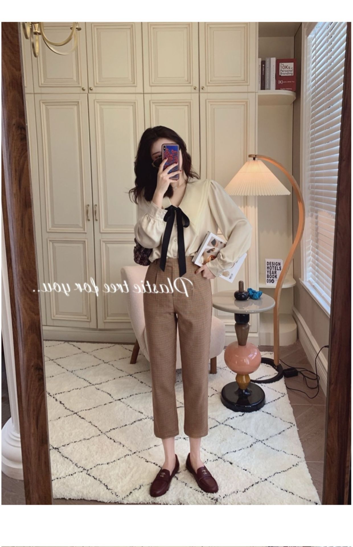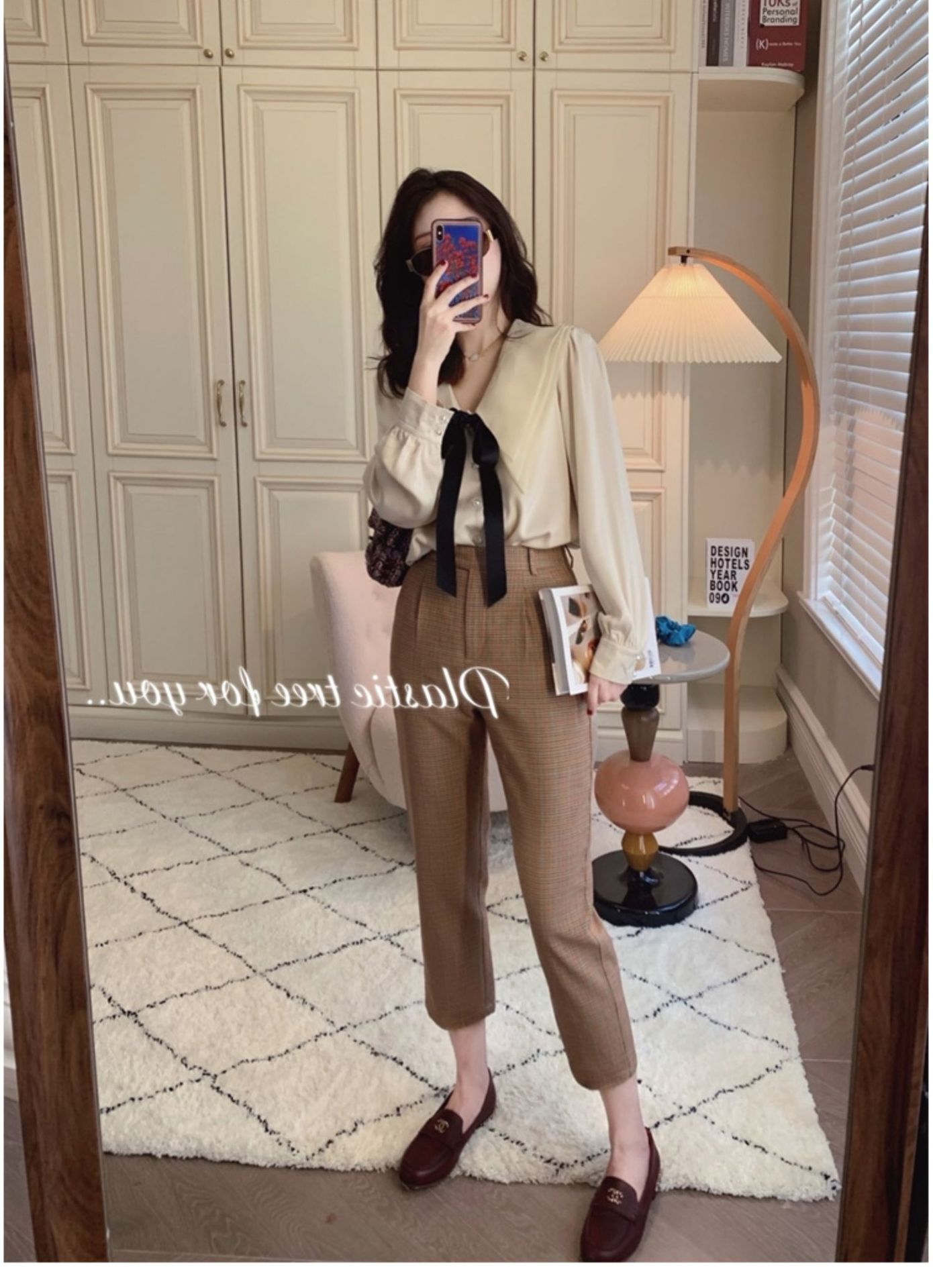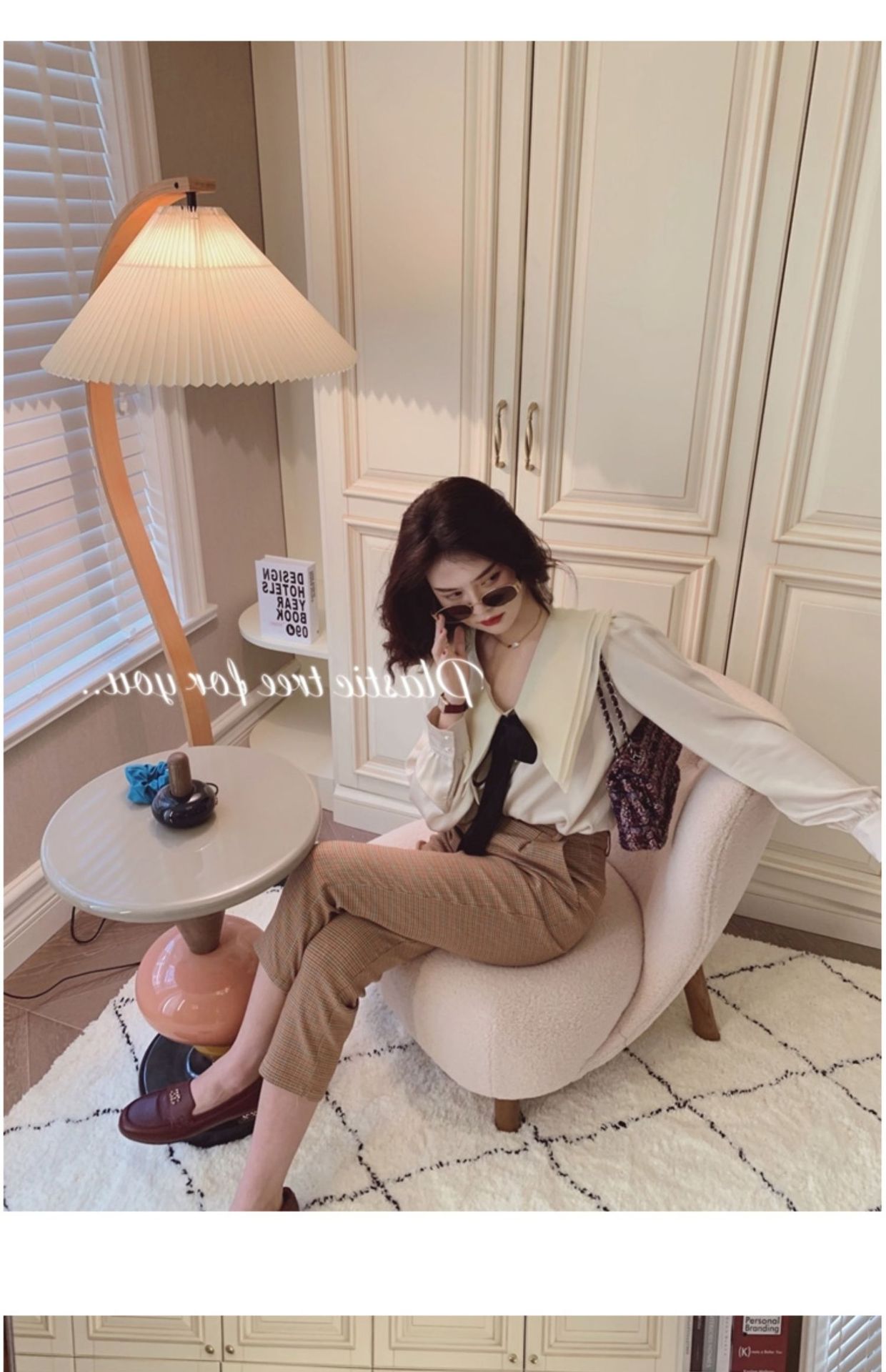 1069 프랑스 스타일 부드러운 스타일 달콤한 인형 칼라 탑 여성의 이른 봄 새로운 디자인 감각베이스 쉬폰 셔츠스토어 가기