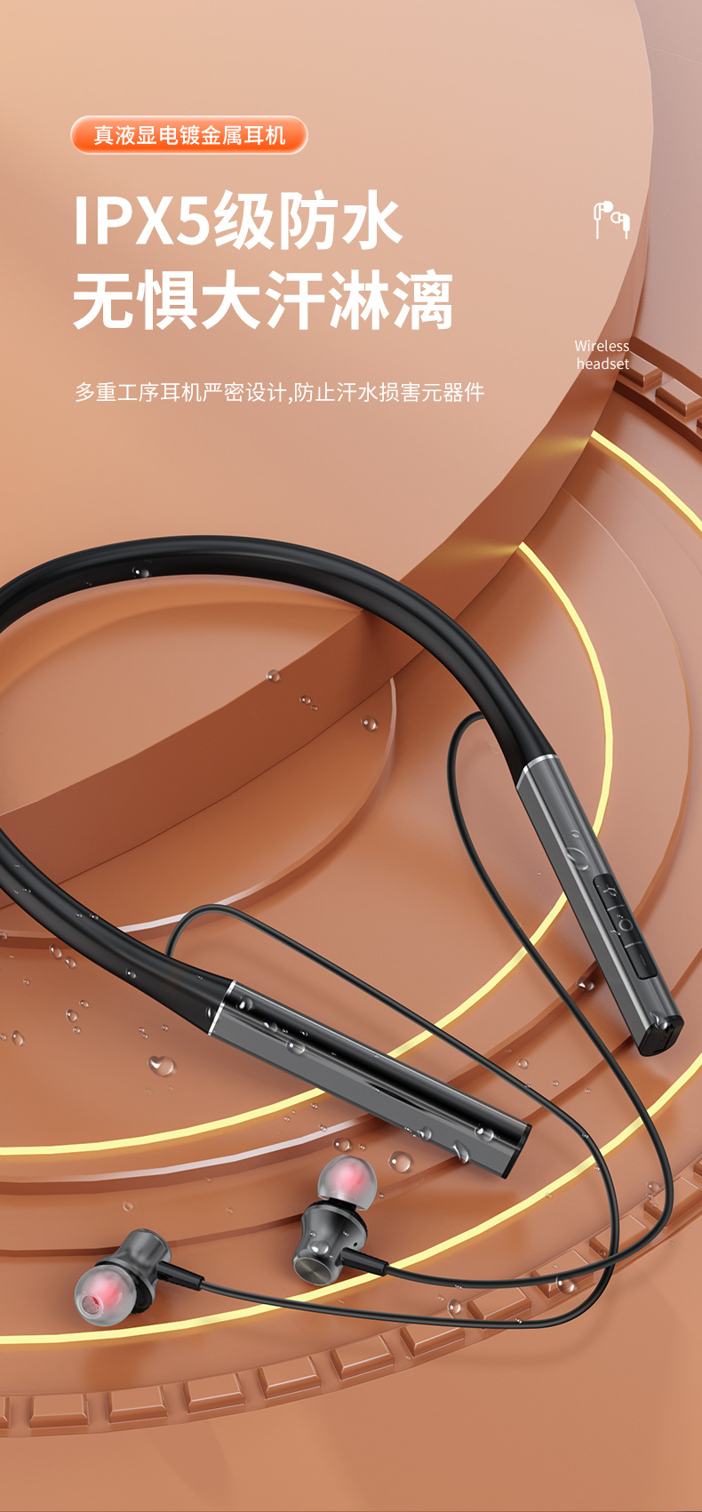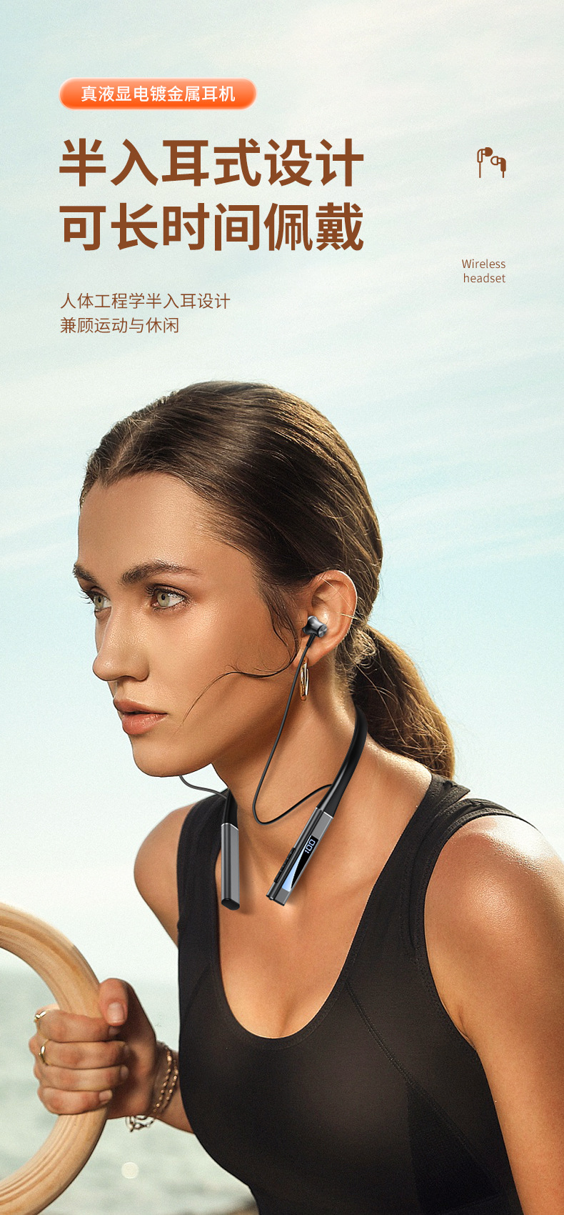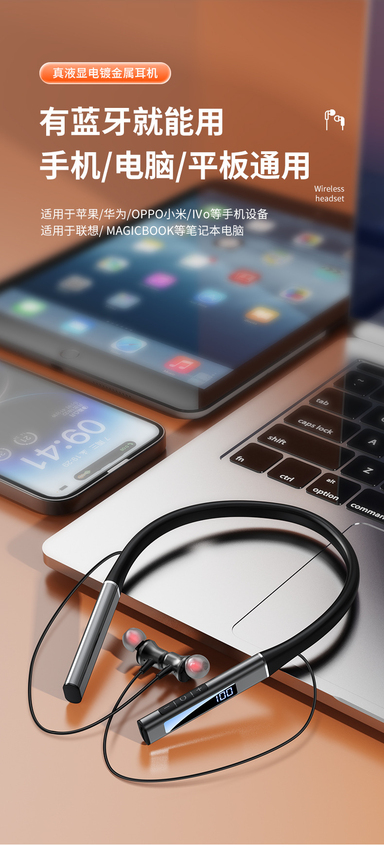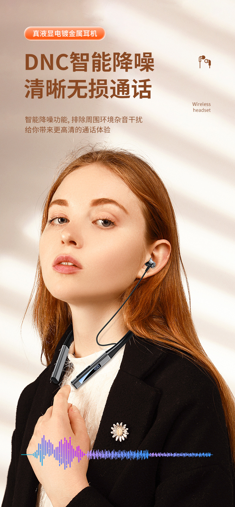 디지털 디스플레이, 긴 배터리 수명, 우수한 음질, 목걸이형 스포츠 헤드셋을 갖춘 새로운 5.0 인이어 무선 블루투스 헤드셋 공장