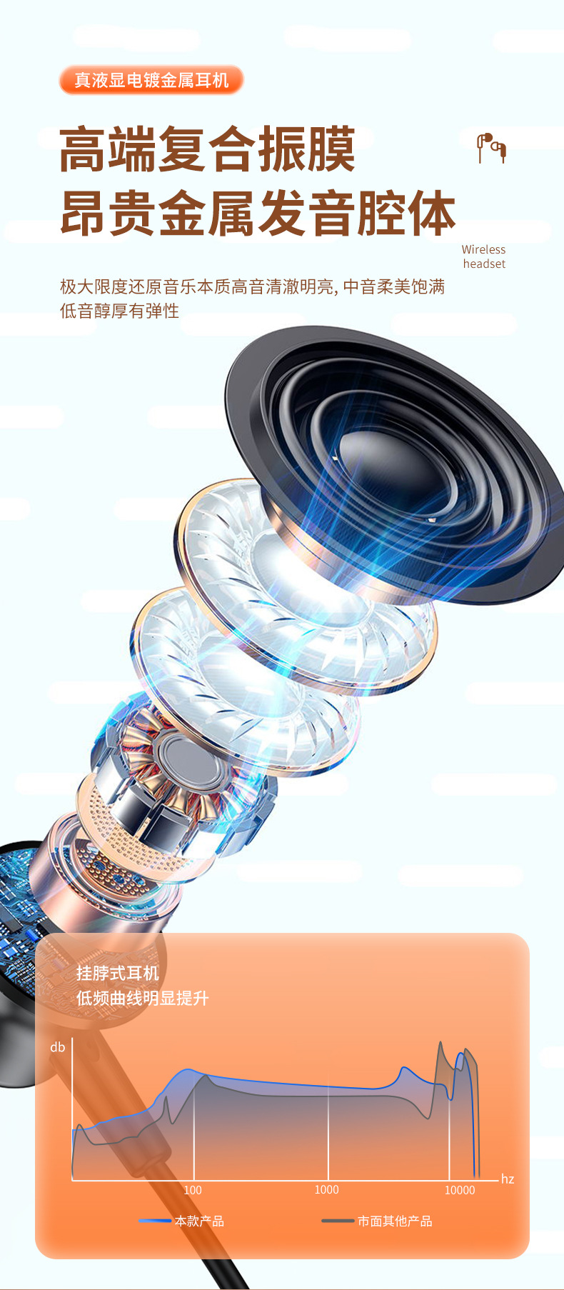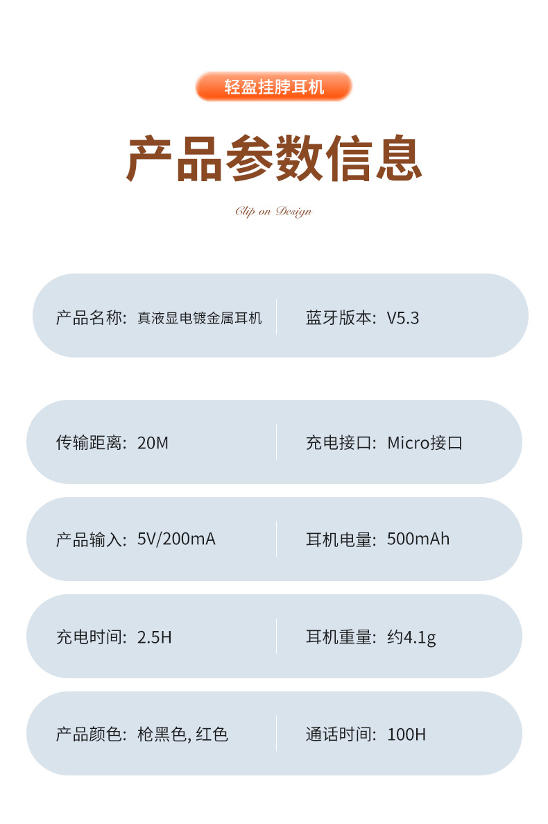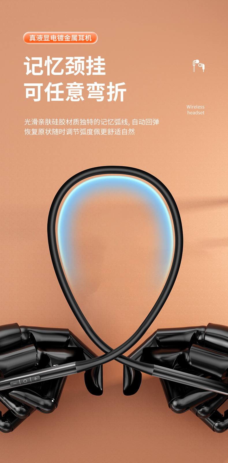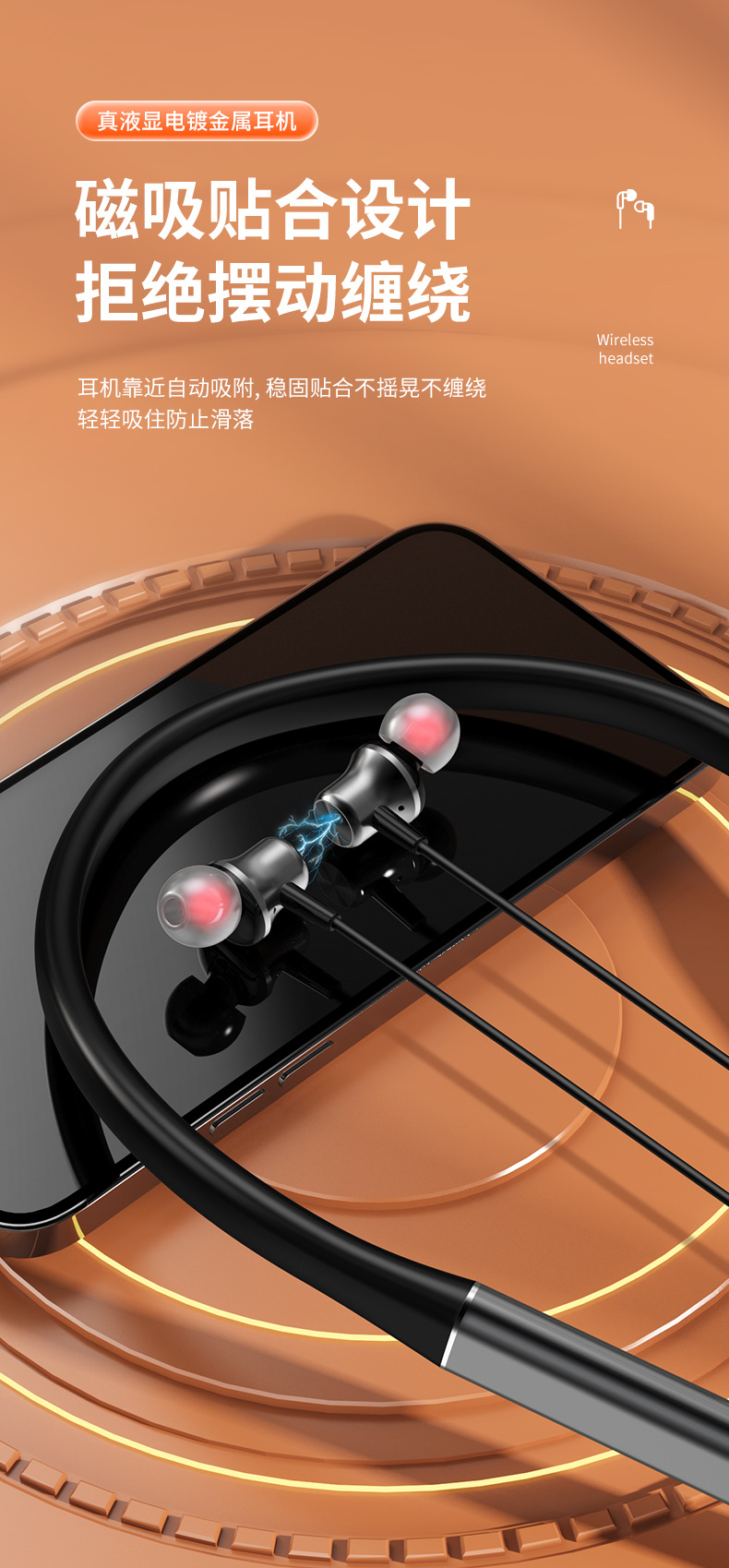 디지털 디스플레이, 긴 배터리 수명, 우수한 음질, 목걸이형 스포츠 헤드셋을 갖춘 새로운 5.0 인이어 무선 블루투스 헤드셋 공장