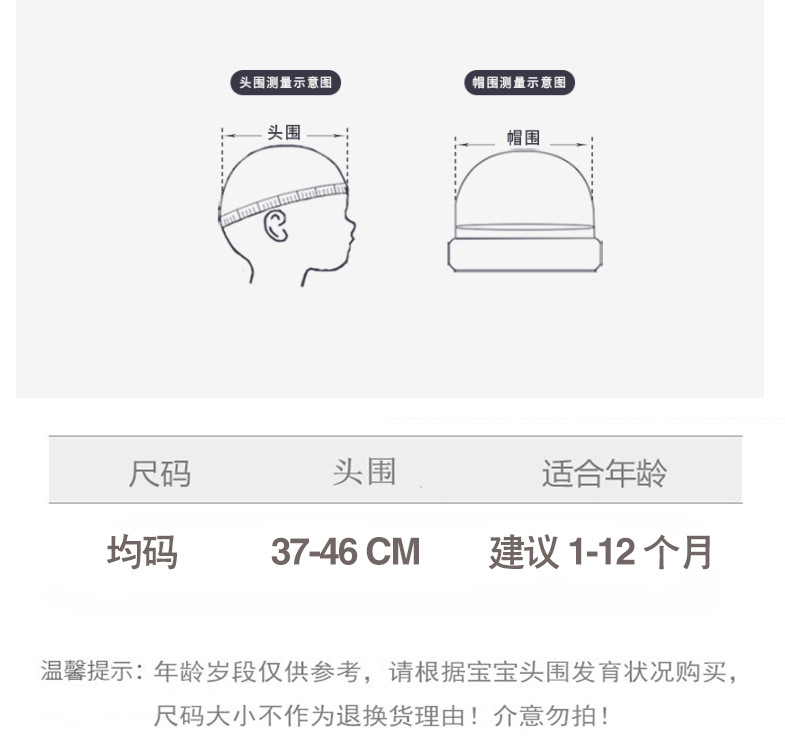 • 프리 사이즈 1-12 개월 머리 둘레 37-46cm