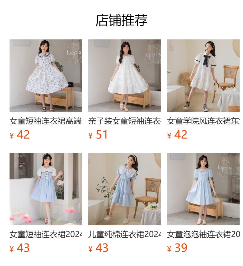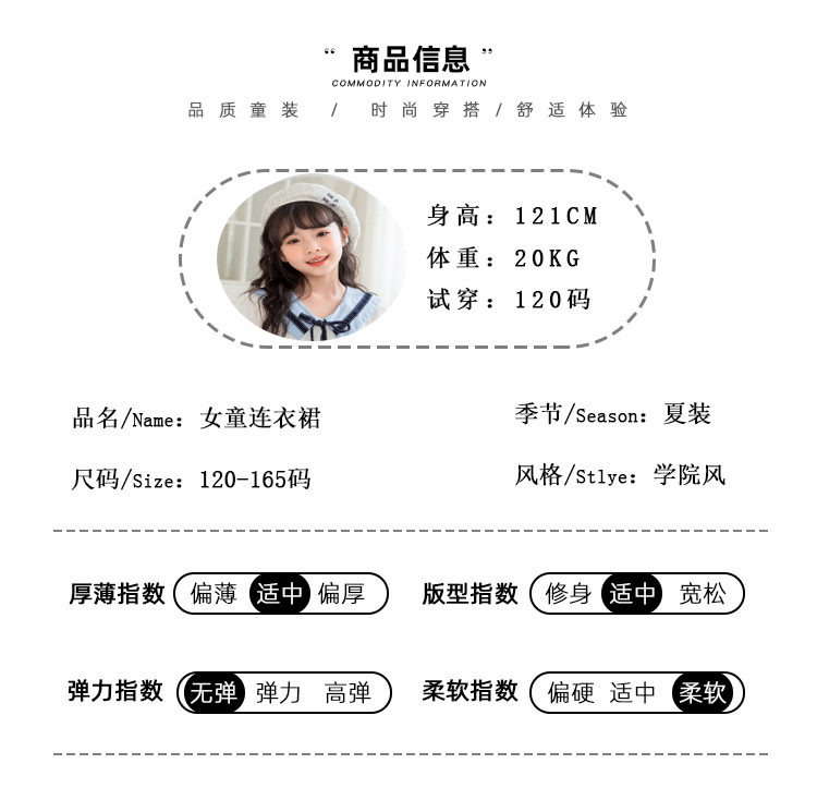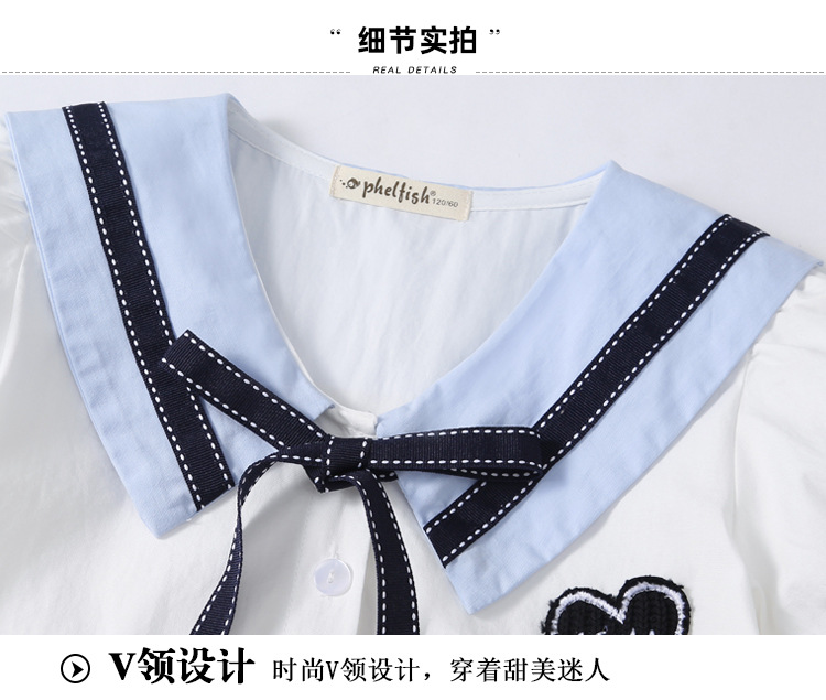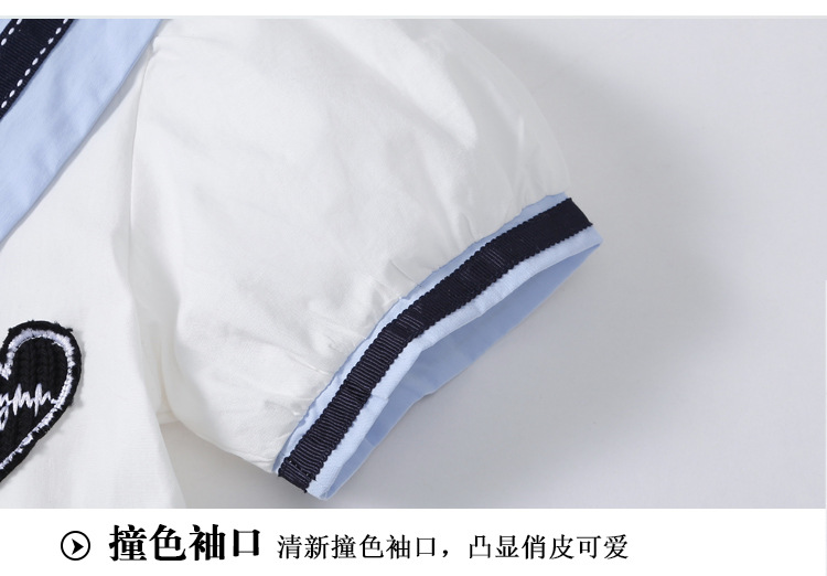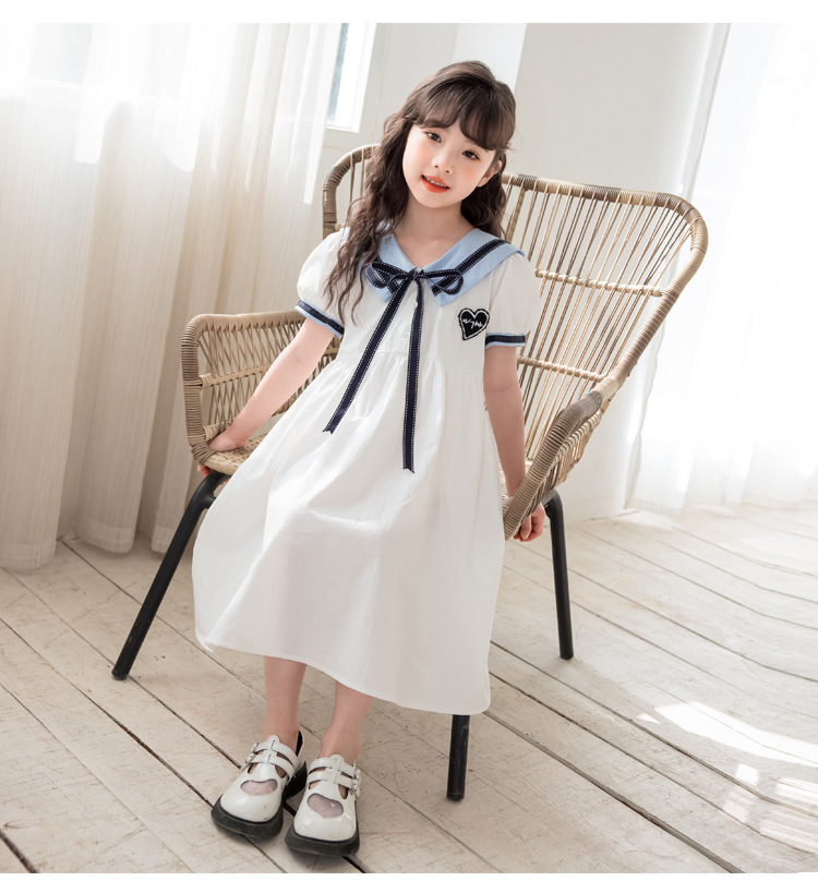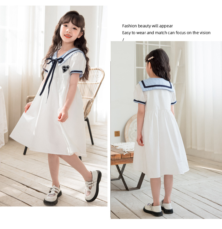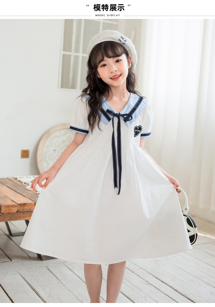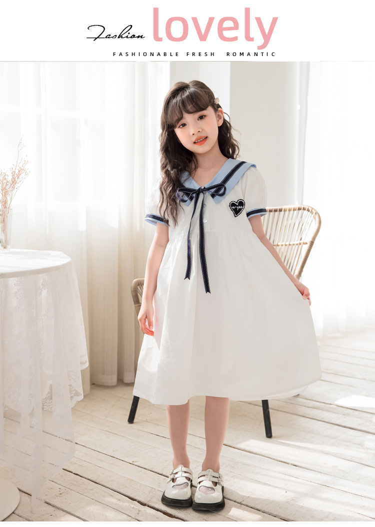 여아 반팔 스커트, 면 대학 스타일 셔츠, 공주 스커트, 흰색 라펠 중대형 아동 드레스, 2025 여름 의류스토어 가기