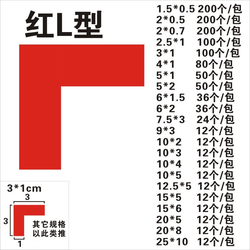 • 빨간색 L 자형 1.5*0.5cm (200 PCs/가방)