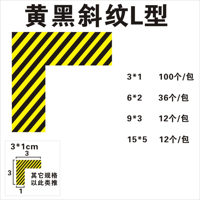 • 노란색과 검은 색 L 유형 9*3cm (12/팩)