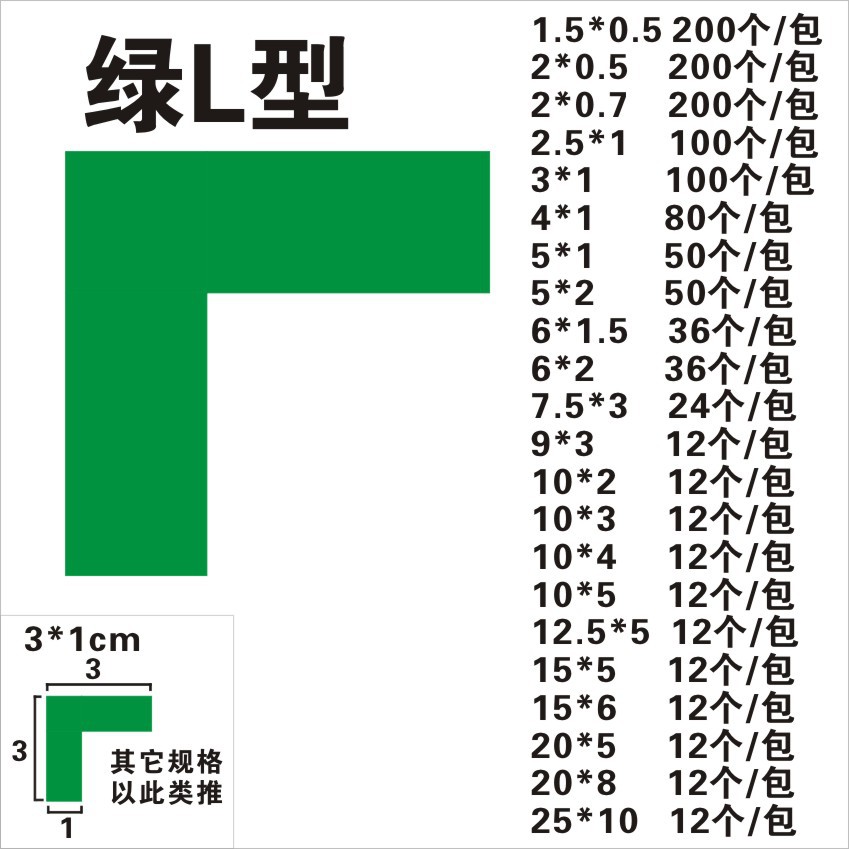 • 녹색 L 유형 10*3cm (12/가방)
