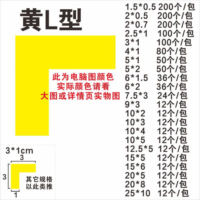 • 노란색 L 모양 7.5*3cm (24 PCs/가방)