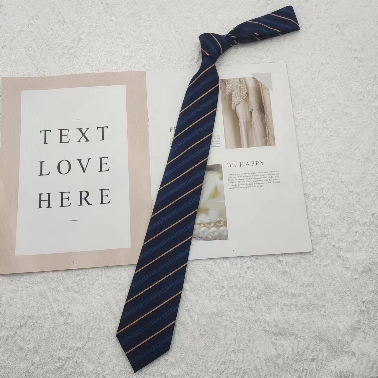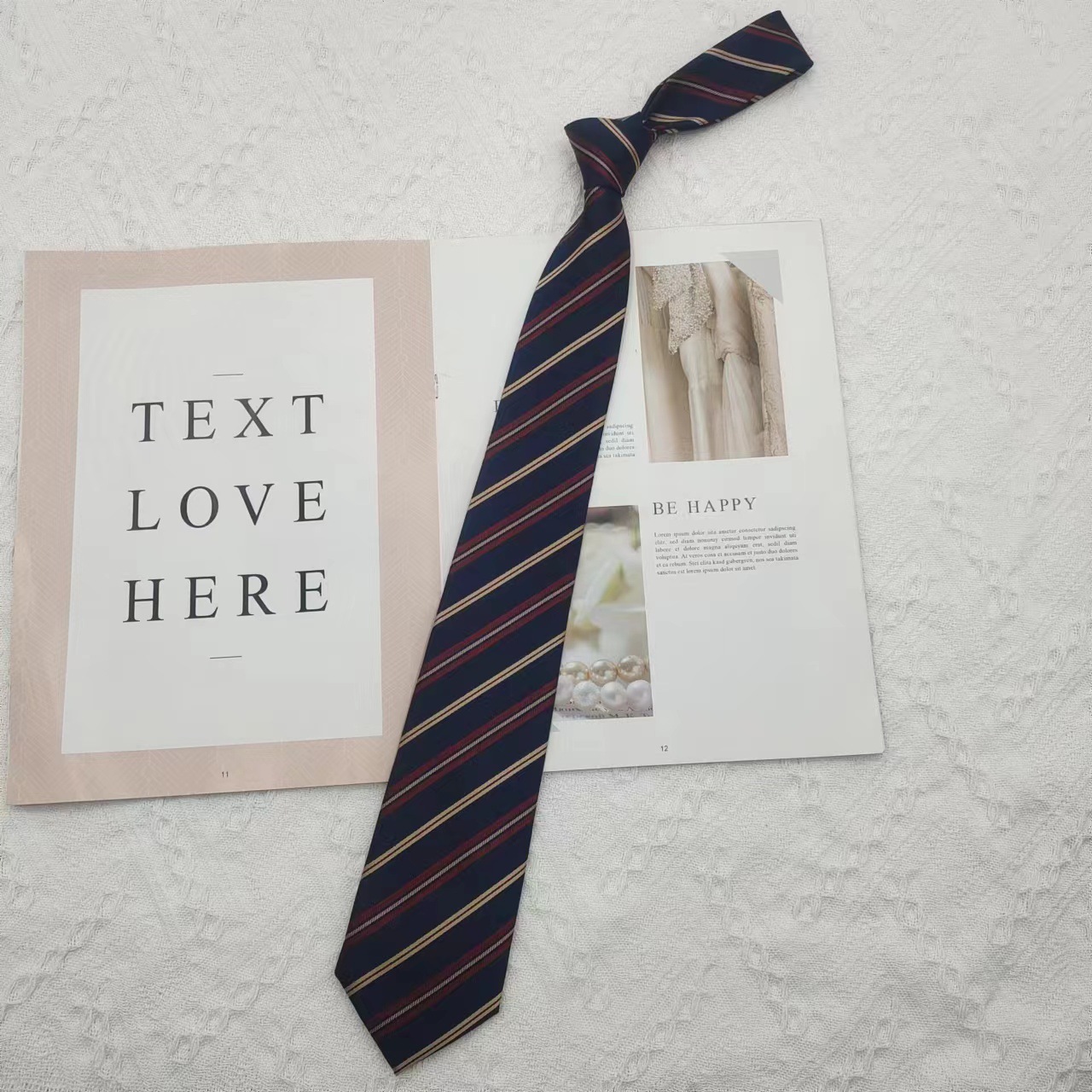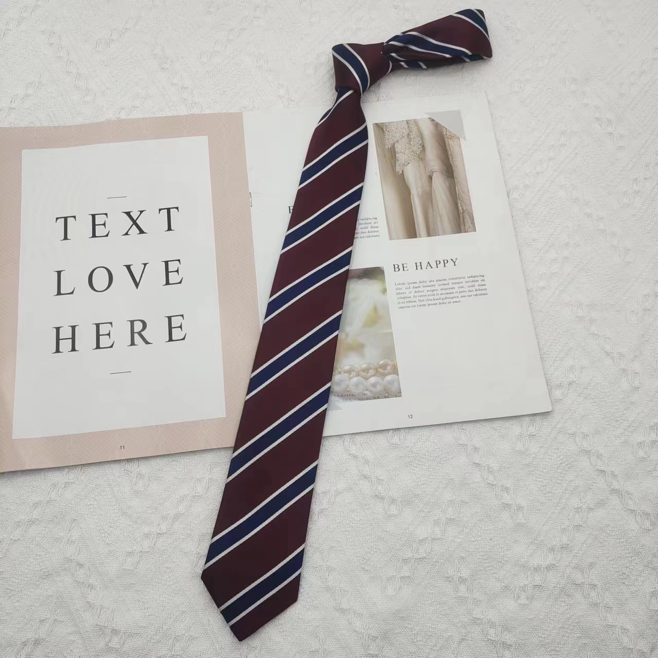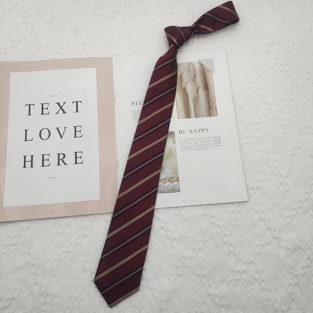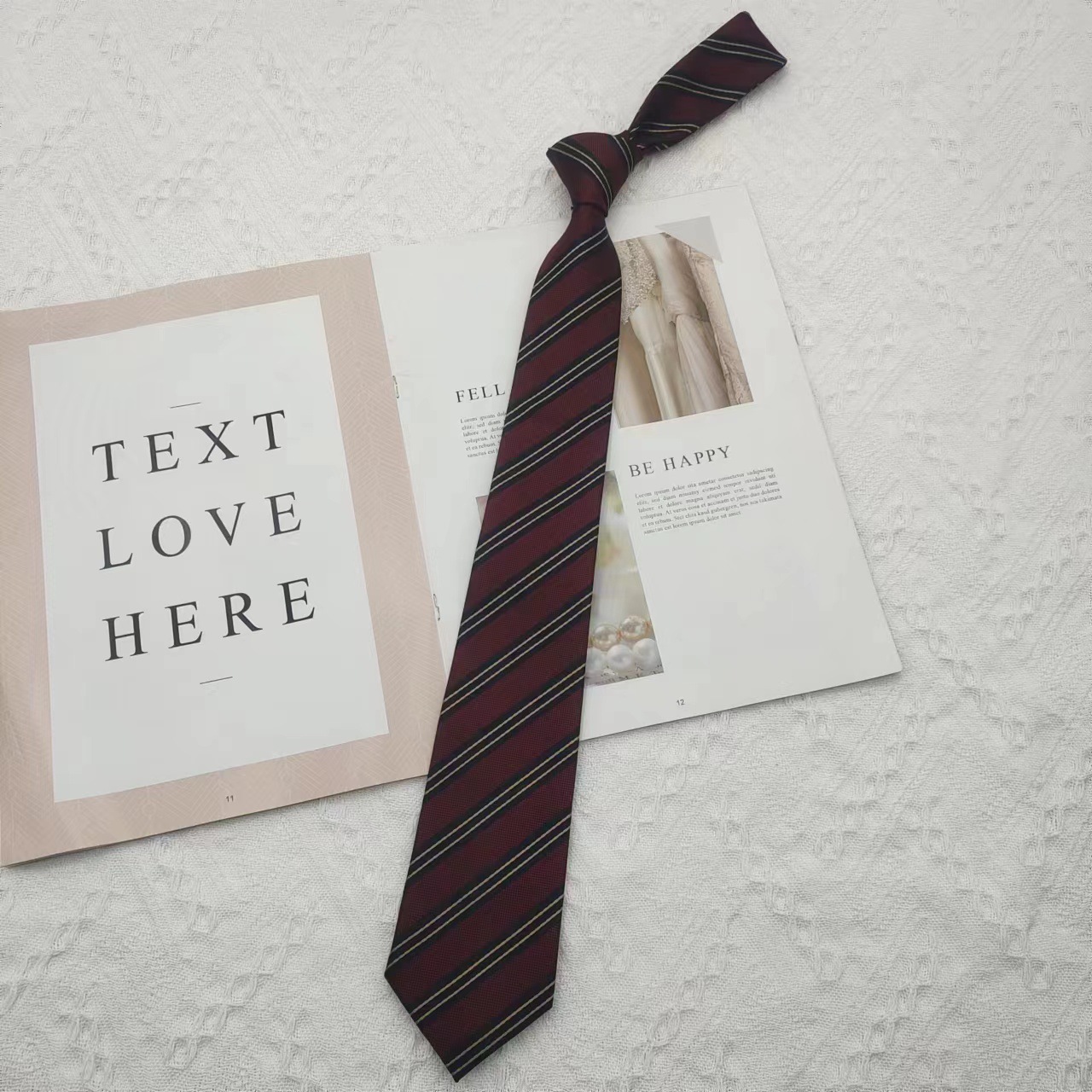 레드 블루 골드 레드 스트라이프 게으른 사람들 일본 스타일 대학 스타일 넥타이 여자의 졸업 사진 다크 브라운 남자의 나비 넥타이
