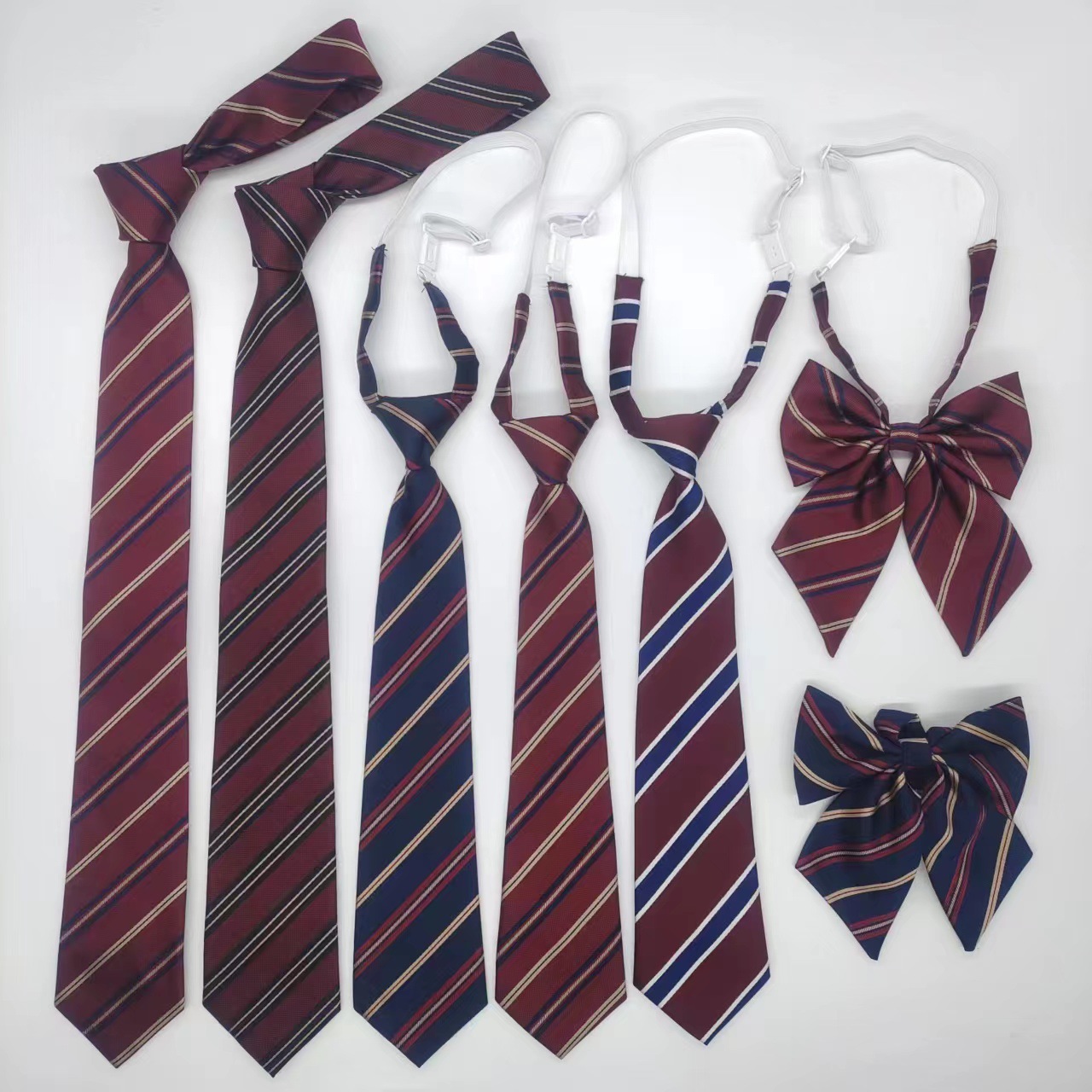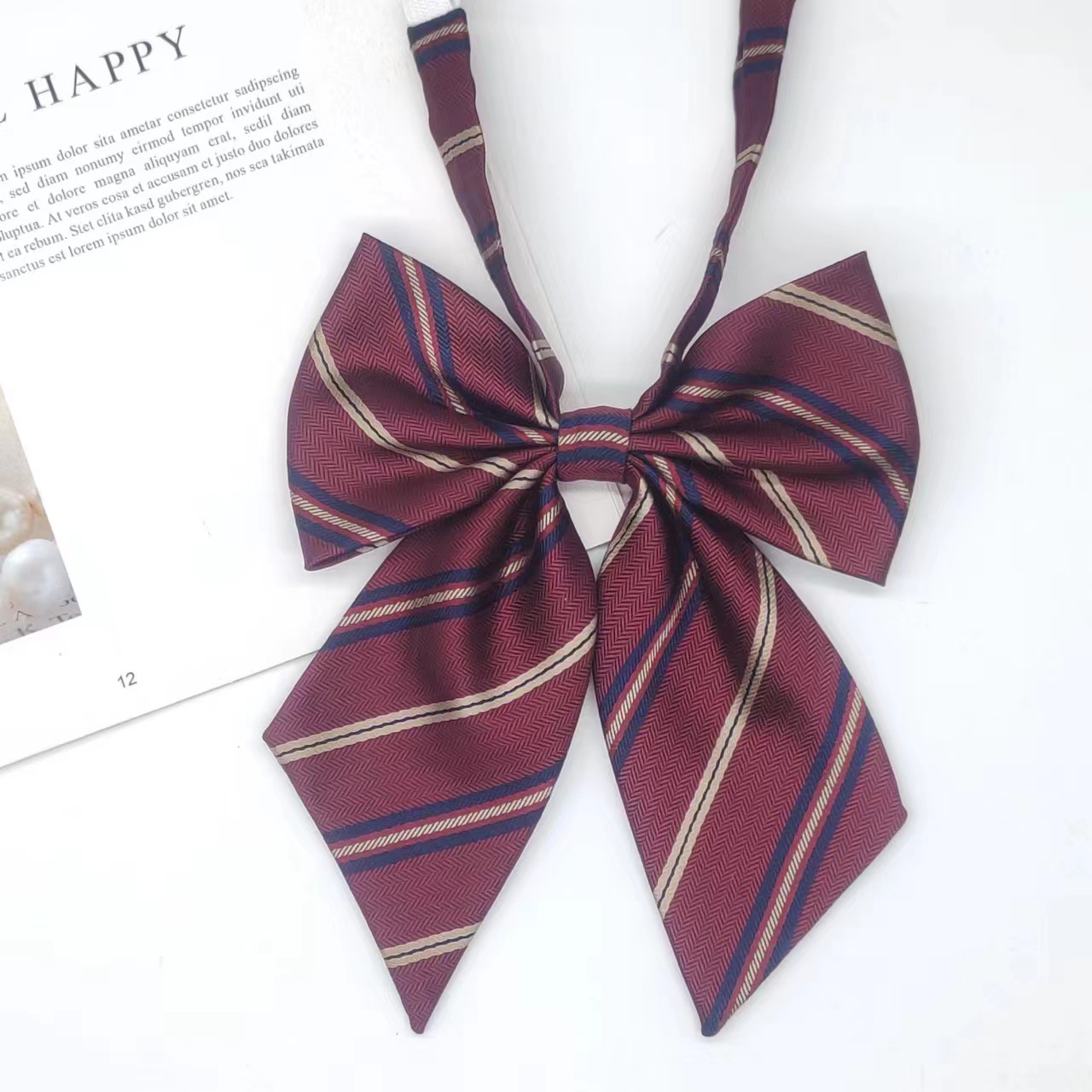레드 블루 골드 레드 스트라이프 게으른 사람들 일본 스타일 대학 스타일 넥타이 여자의 졸업 사진 다크 브라운 남자의 나비 넥타이스토어 가기