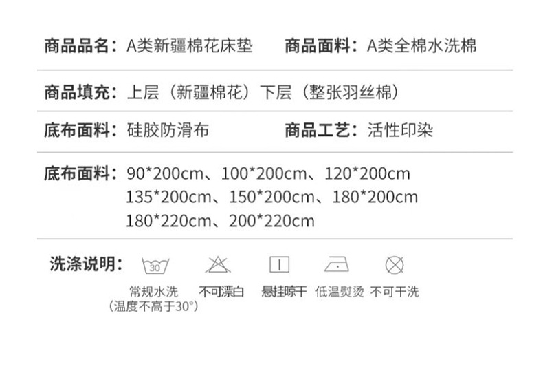 2023 미끄럼 방지 신장 워싱 코튼 매트리스 클래스 A 100% 면 매트리스 도매 단색 시몬스 매트리스스토어 가기