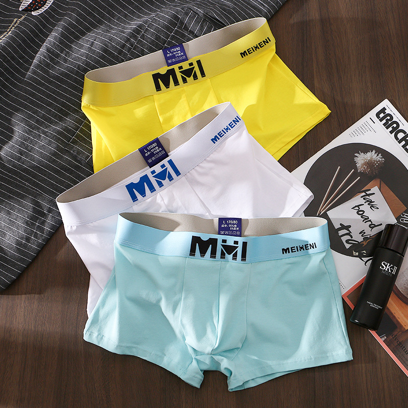 남자 속옷 단색 면 복서 소년 4 코너 반바지 청소년과 학생을위한 최신 유행 맞춤형 반바지