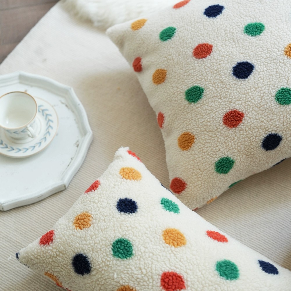 크로스 보더 스타일 귀여운 물방울 무늬 양고기 양털 쿠션 구형 베개 거실 침실 어린이 방 허리 베개 작은 빨간 책스토어 가기