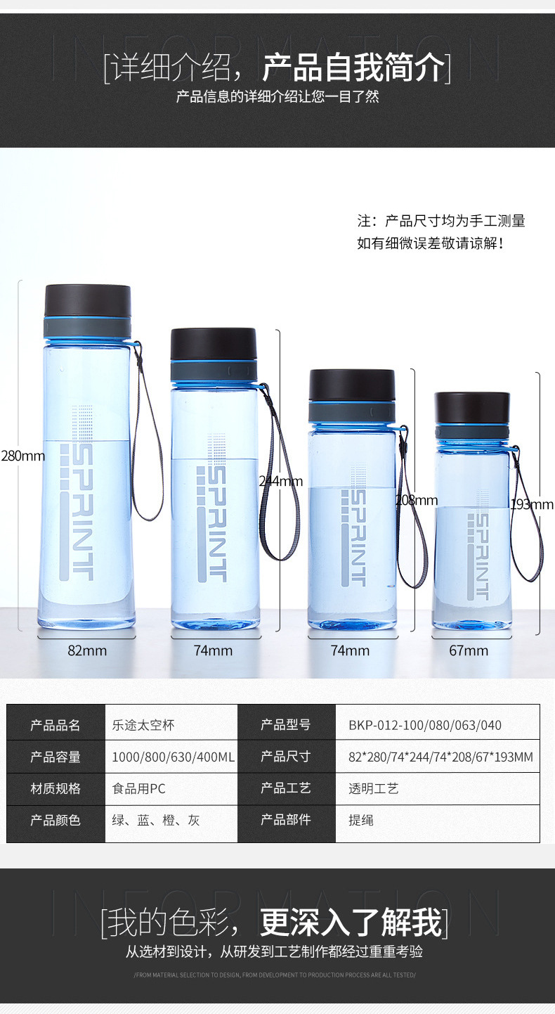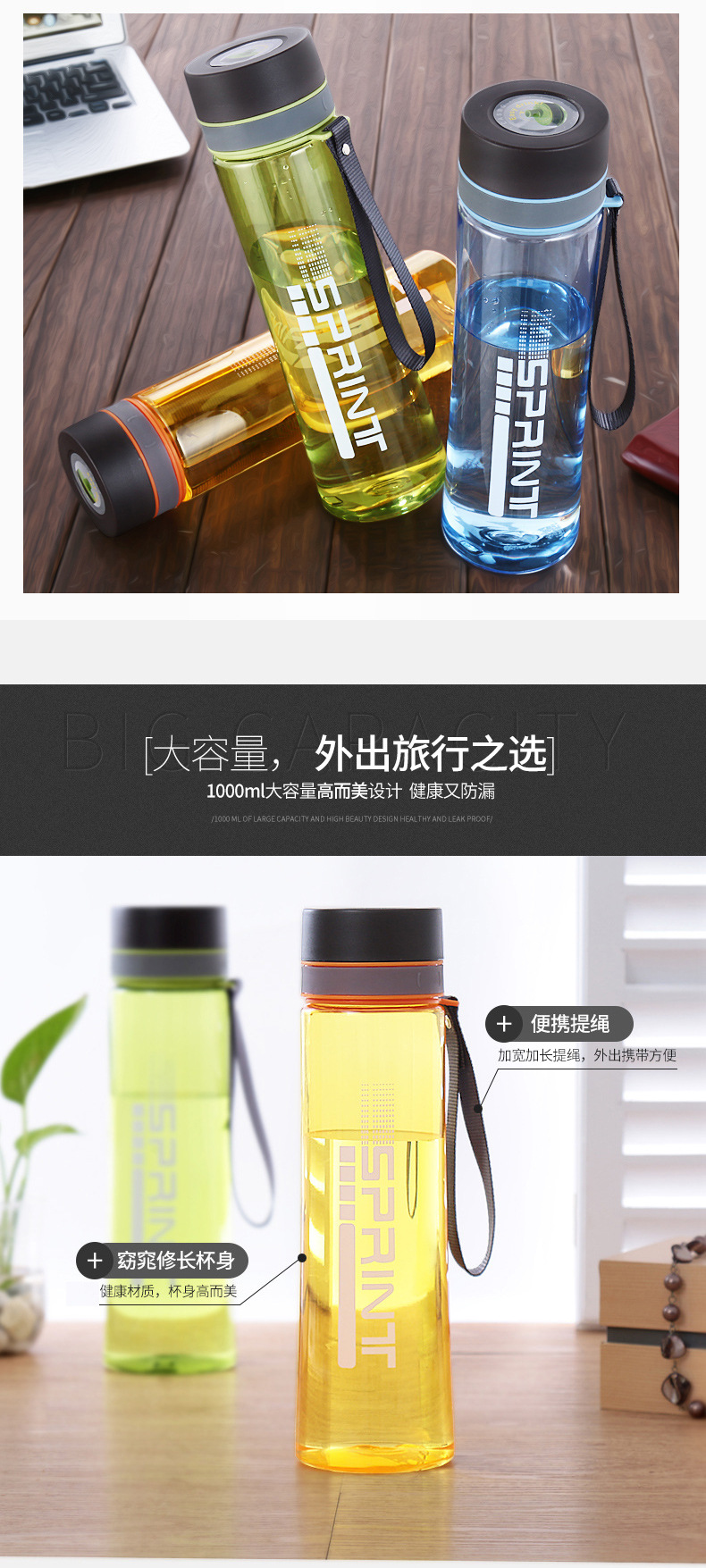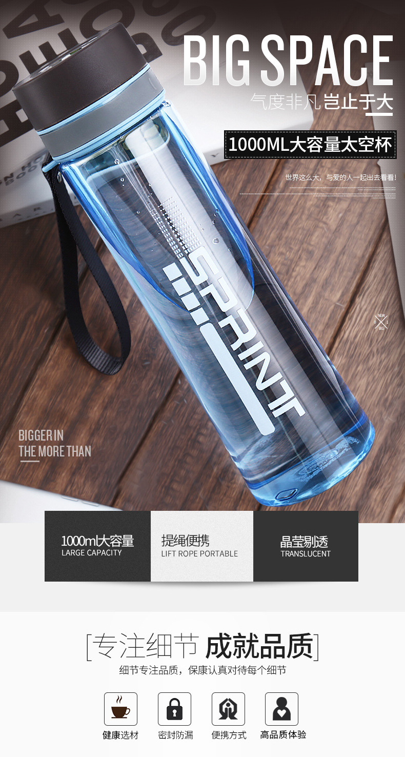 대용량 물컵 플라스틱 스페이스 컵 남녀 학생 스포츠 주전자 휴대용 야외 피트니스 찻잔 1000ml