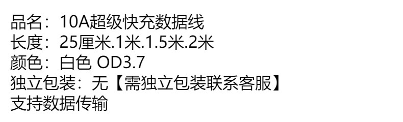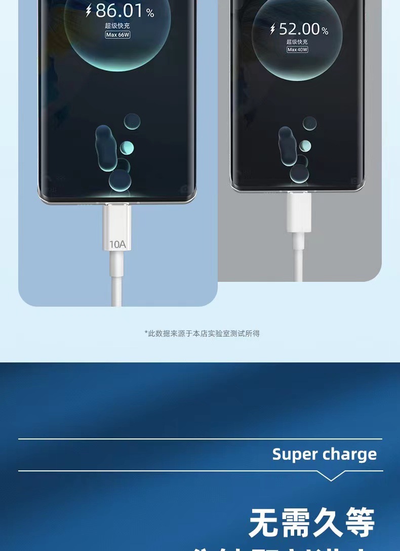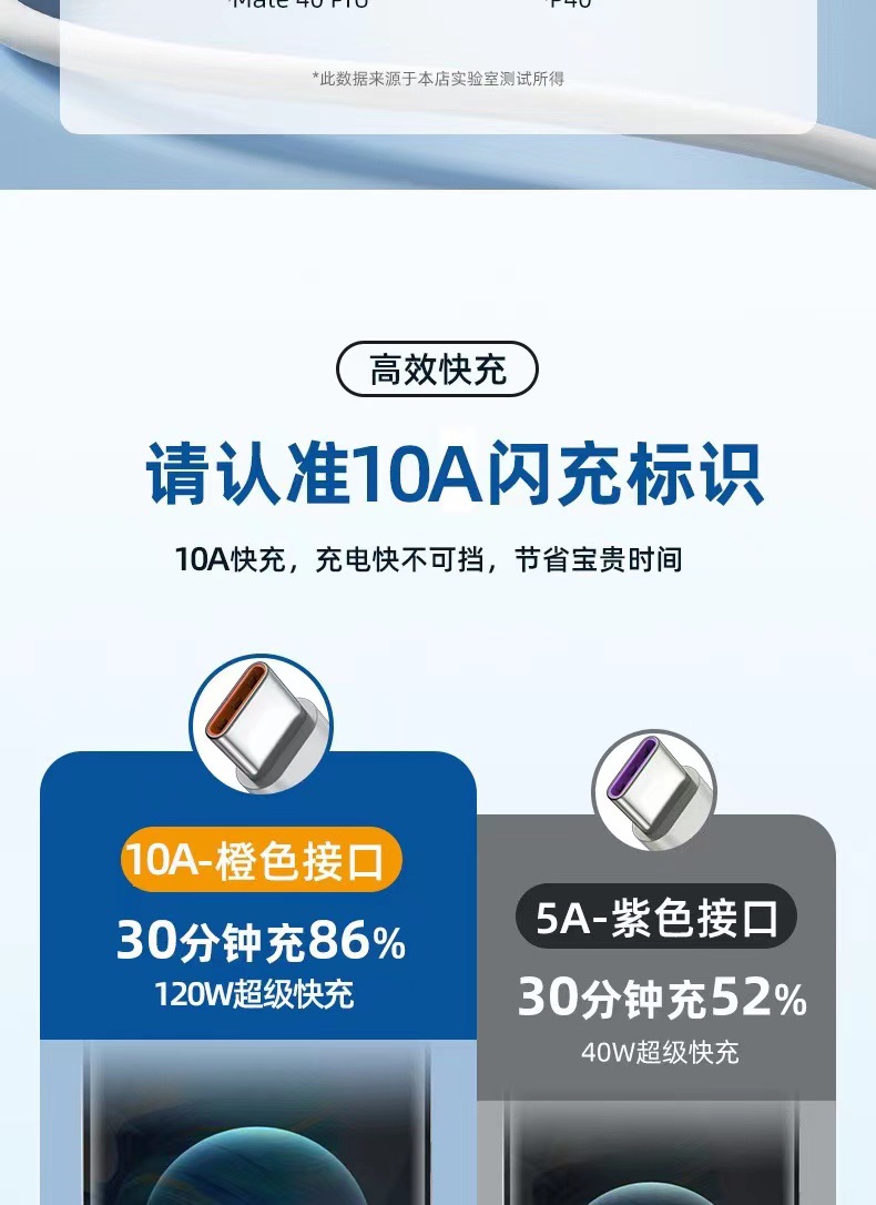 화웨이 120W 초고속 충전 타입-C 데이터 케이블을위한 10A 초고속 충전 휴대 전화 데이터 케이블 충전스토어 가기
