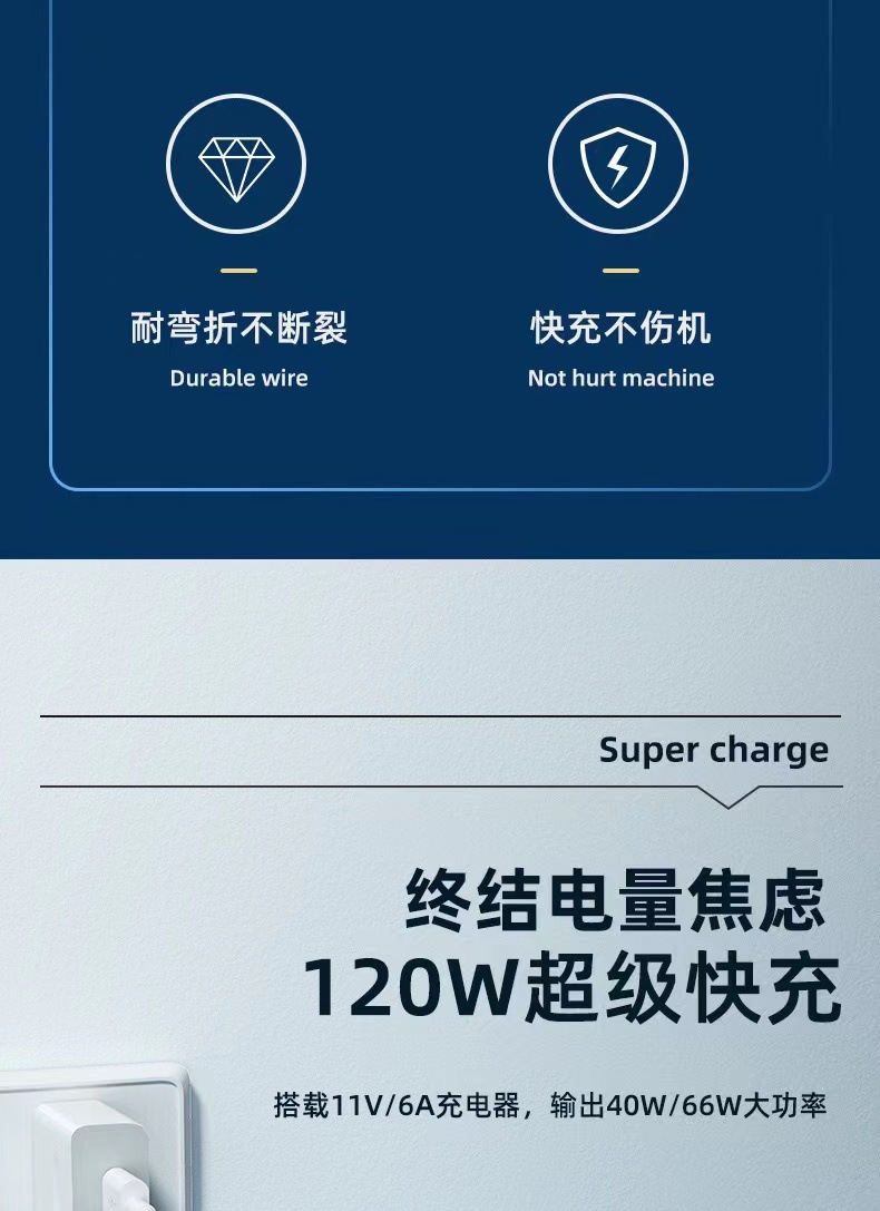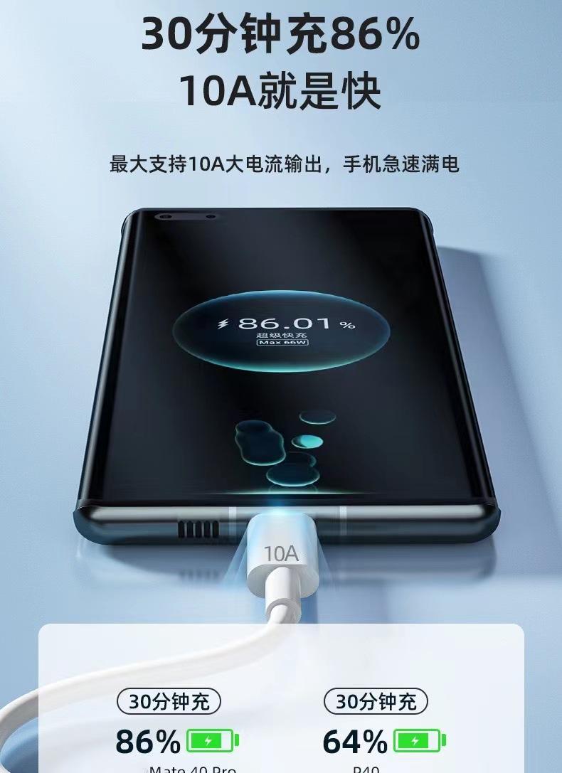 화웨이 120W 초고속 충전 타입-C 데이터 케이블을위한 10A 초고속 충전 휴대 전화 데이터 케이블 충전