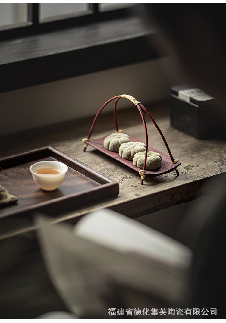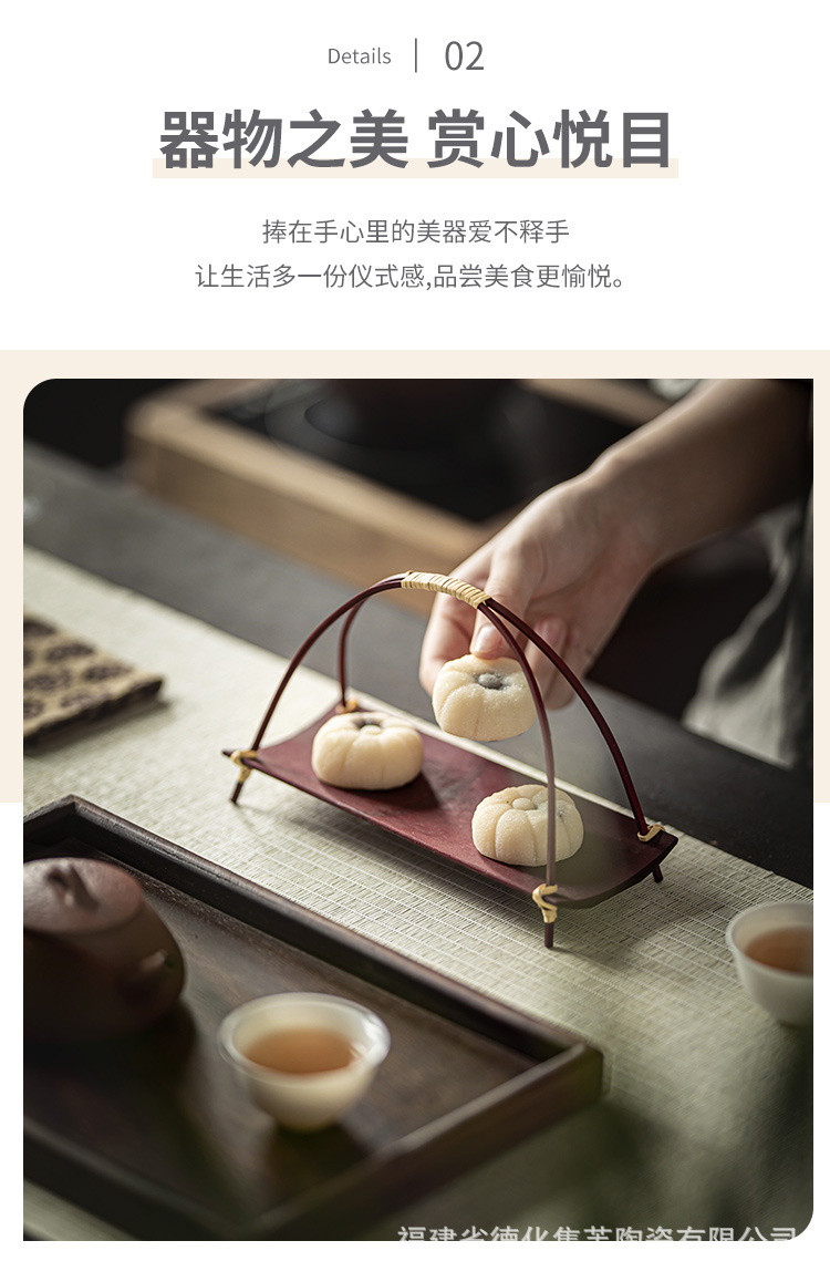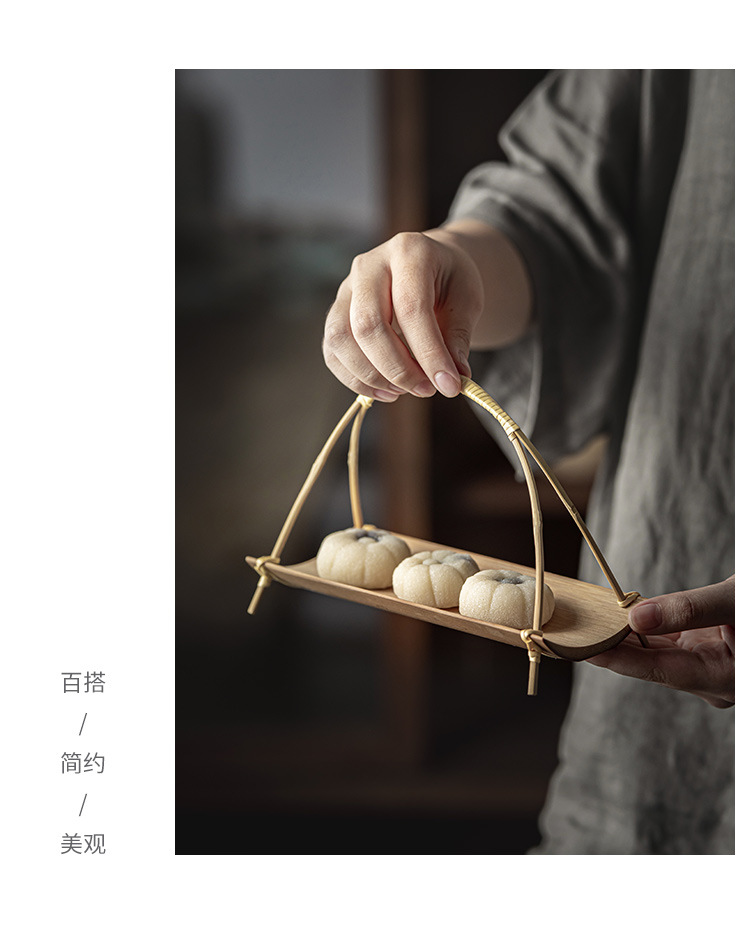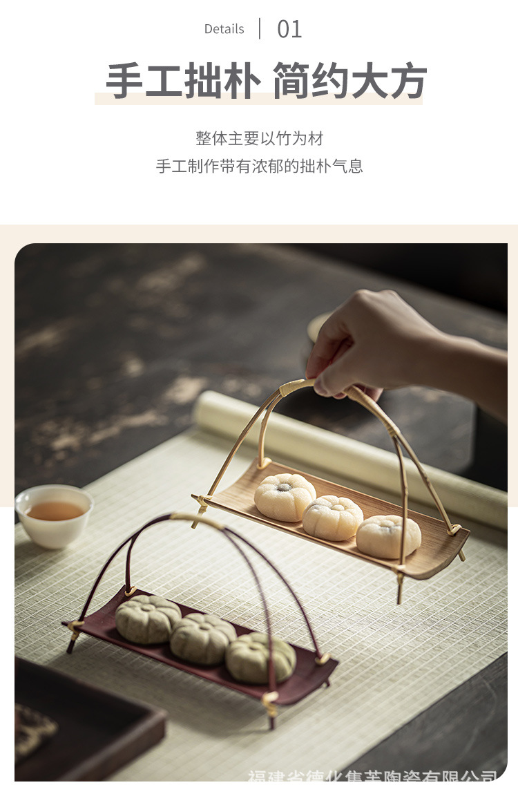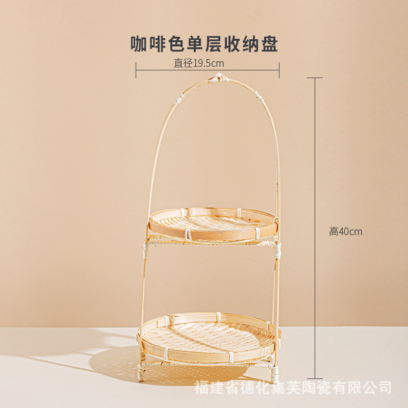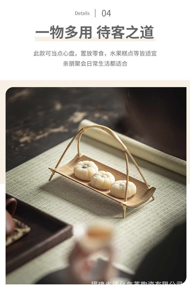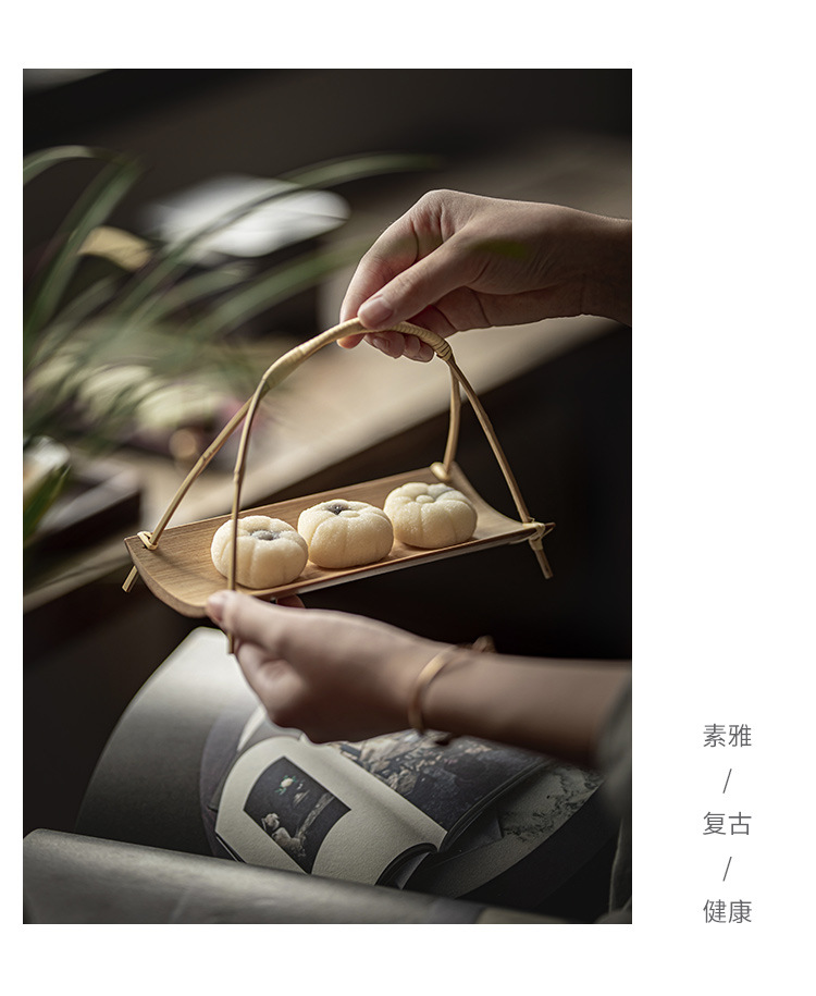 도자기 요리 차 과일 간식 접시 세트 대나무 작은 바구니 간식 과자 접시 빈티지 복고풍 다과 접시스토어 가기