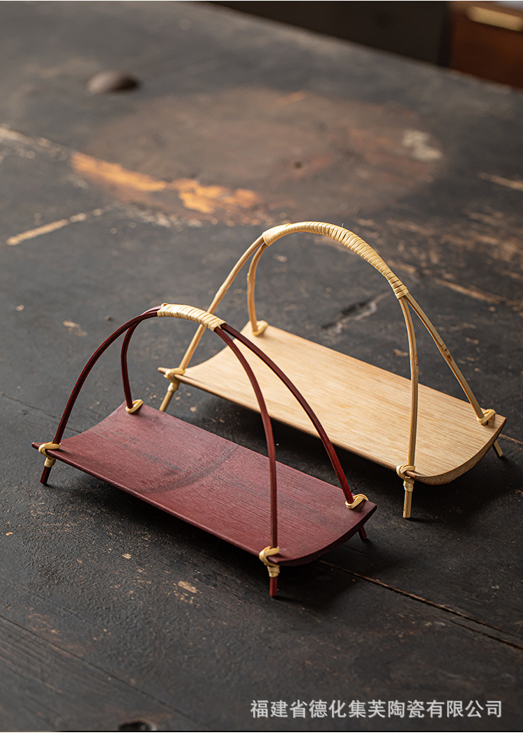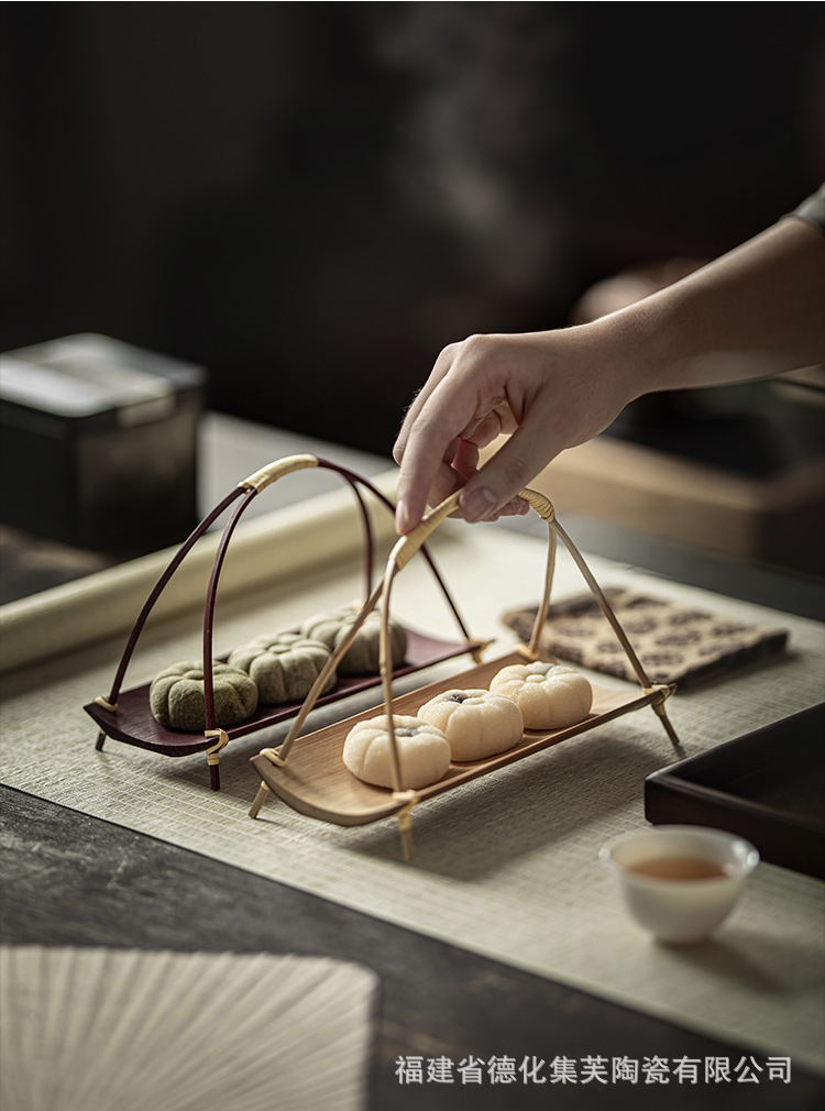 도자기 요리 차 과일 간식 접시 세트 대나무 작은 바구니 간식 과자 접시 빈티지 복고풍 다과 접시