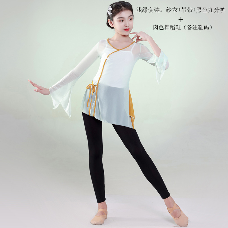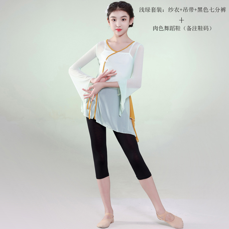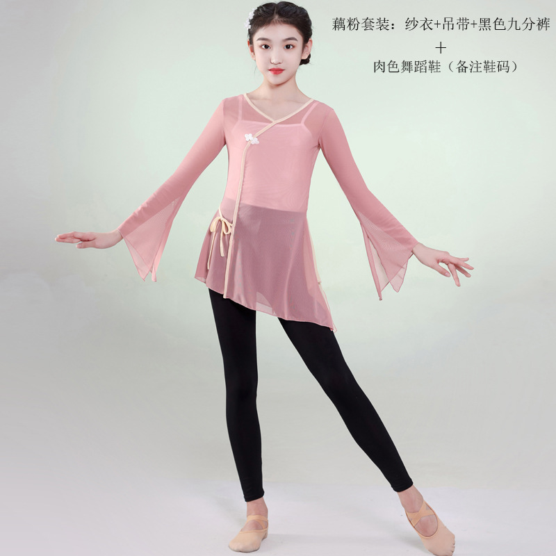 어린이 클래식 댄스 의상 중국 무용 공연 의상 소녀의 연습 의상 어린이 팬 댄스 의상 공연 의상