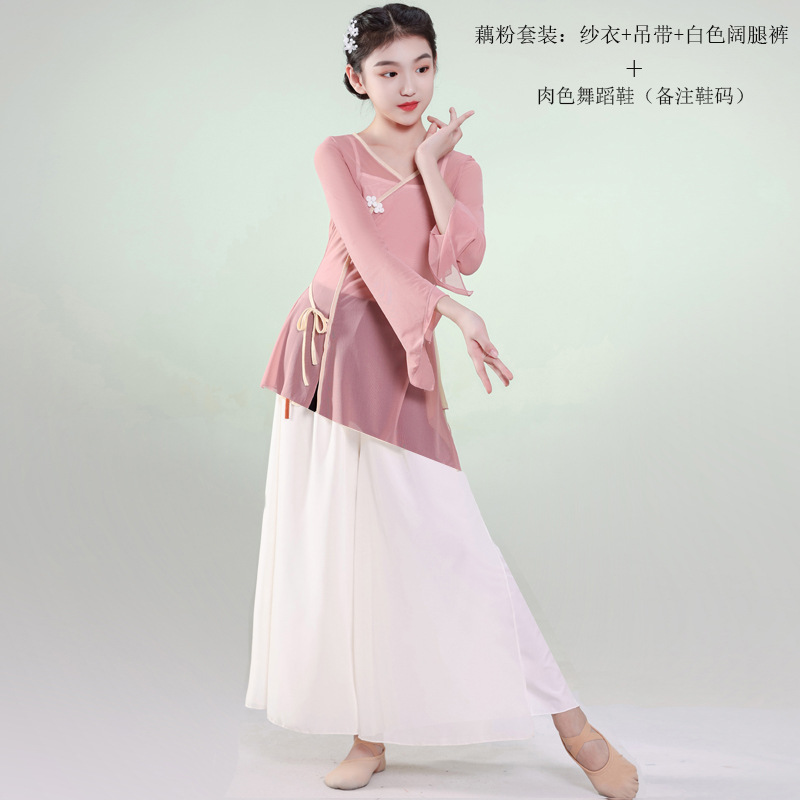 • 연꽃 뿌리 전분 세트: 거즈 + 콘돌 벨트 + 검은 색 크롭 팬츠 + 댄스 슈즈 (노트 신발 크기)