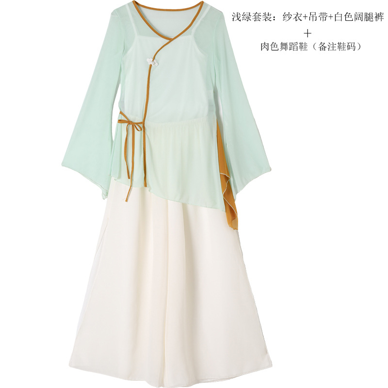 • 라이트 그린 세트: 거즈 + 멜빵 + 흰색 와이드 레그 팬츠 + 댄스 슈즈 (신발 사이즈 노트)