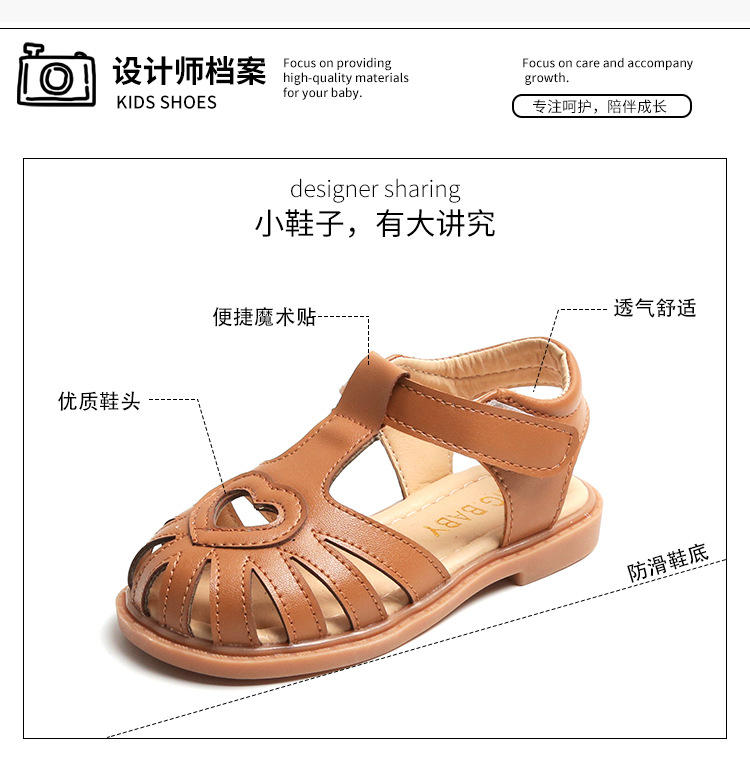 한국식 중공 통기성 어린이 작은 가죽 신발 여름 새 여아 샌들 발가락 부드러운 바닥 아기 신발 어린이 신발 여름