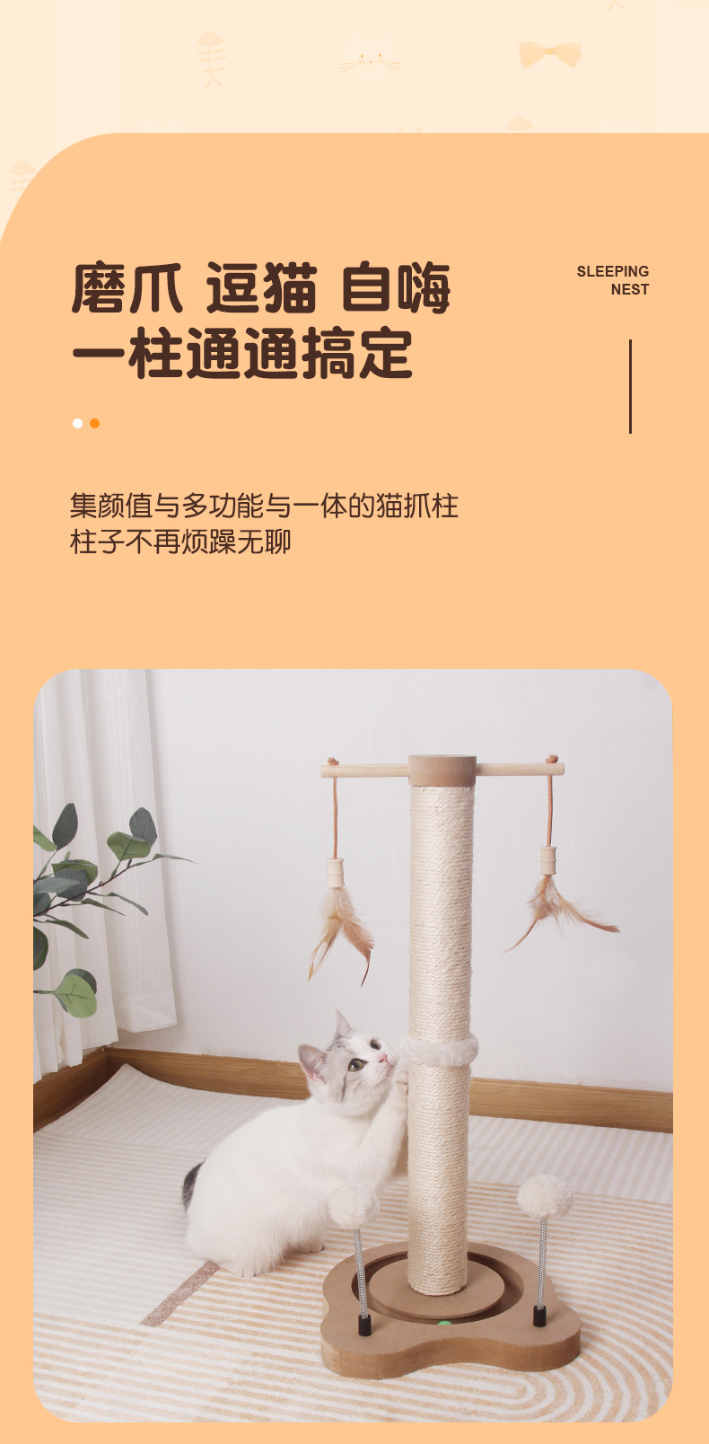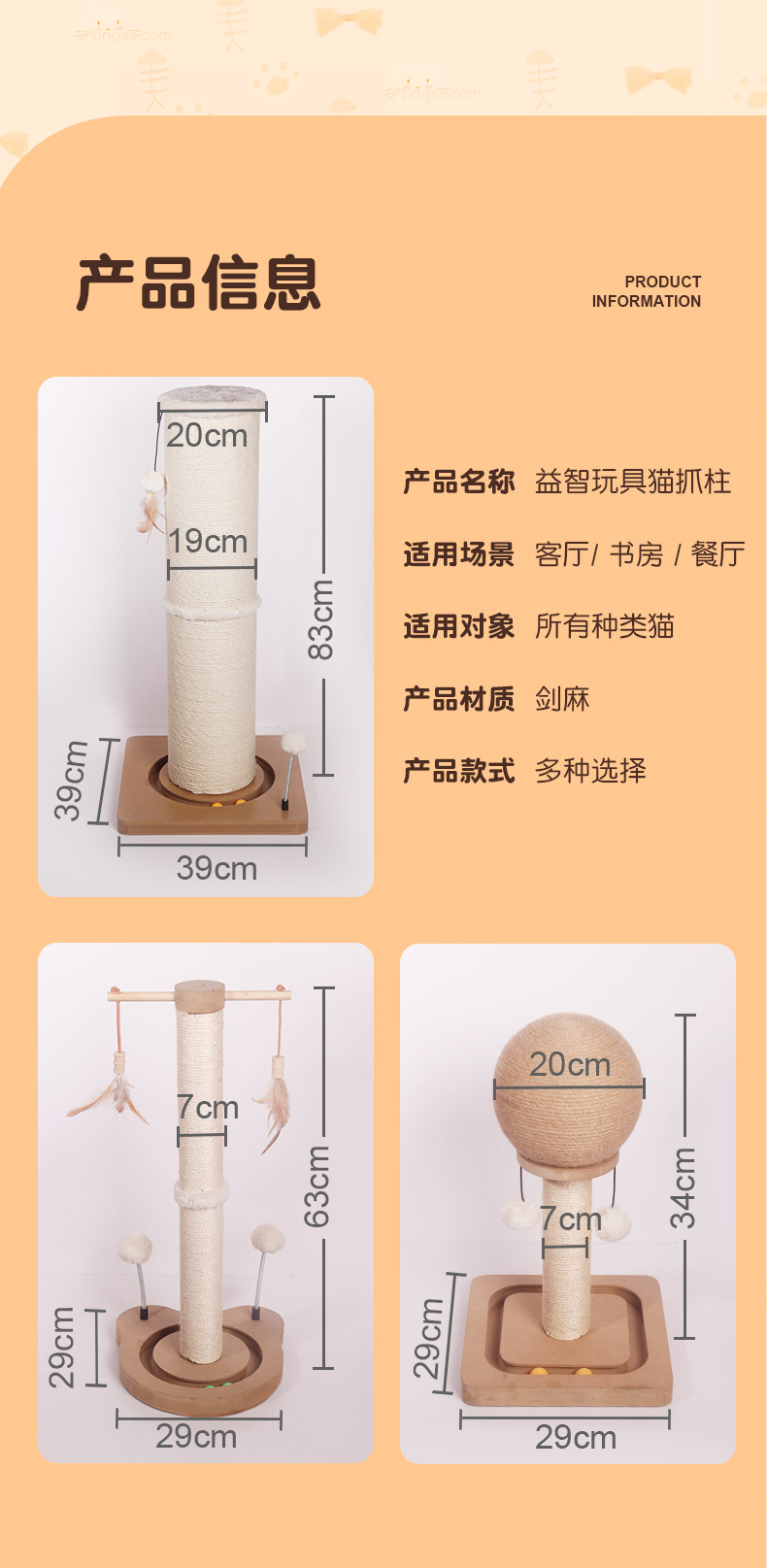 공장 직접 도매 고양이 잡아 칼럼 대형 고양이 범용 수직 고양이 등반 랙 다기능 퍼즐 턴테이블 고양이 장난감