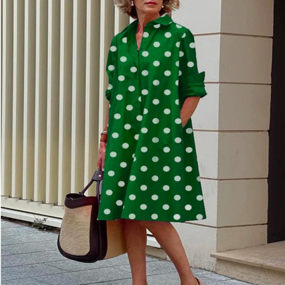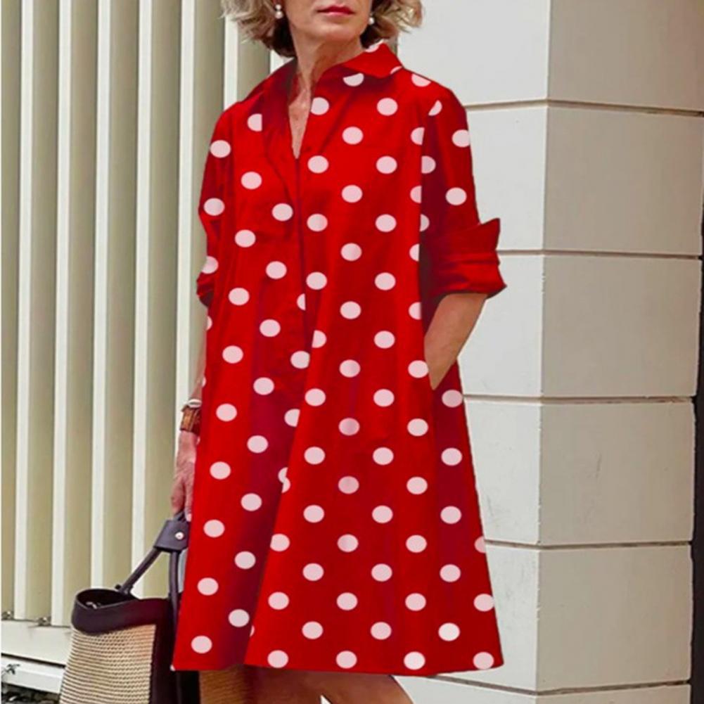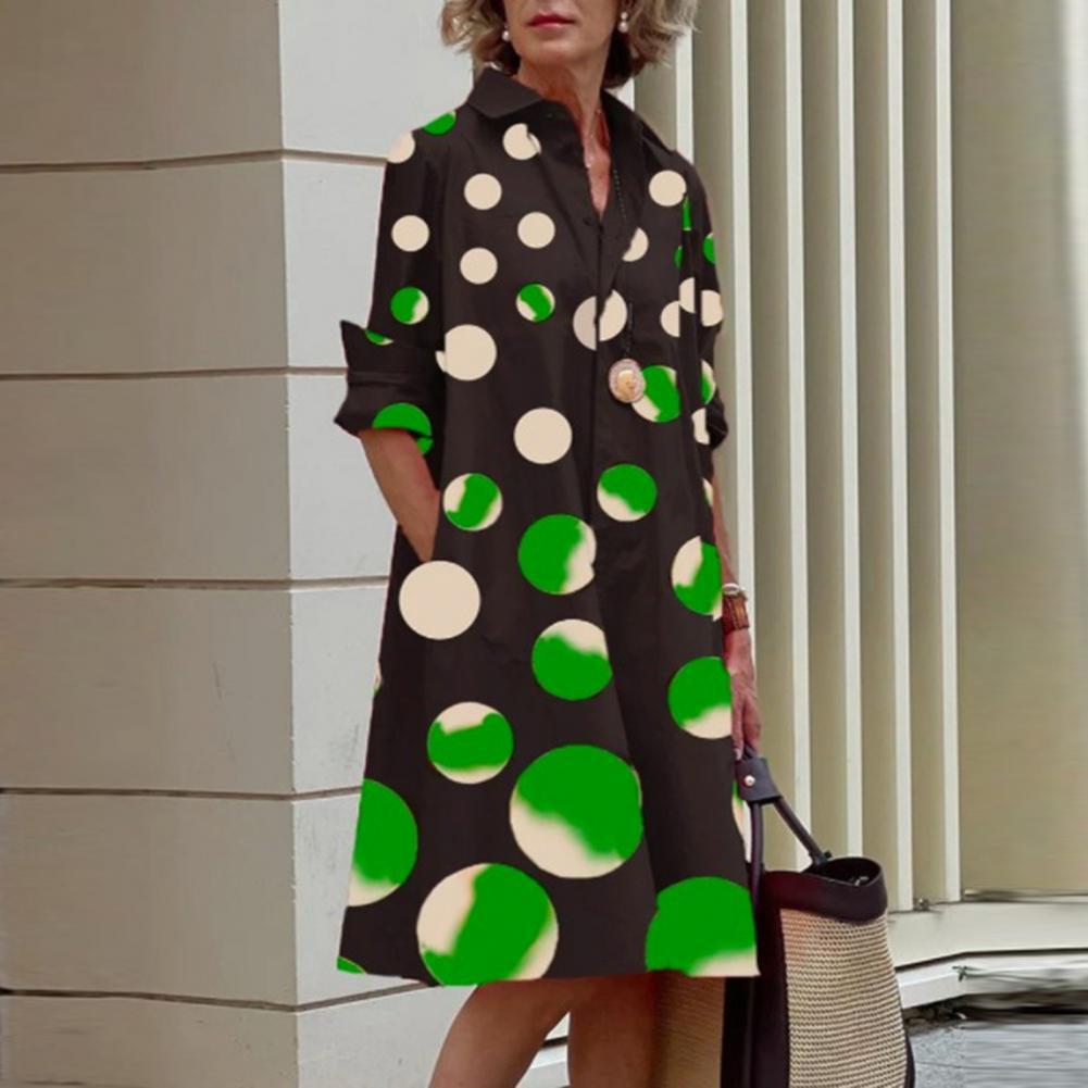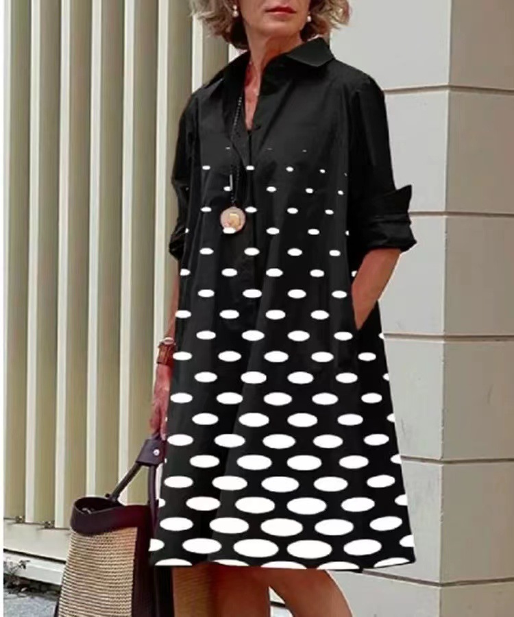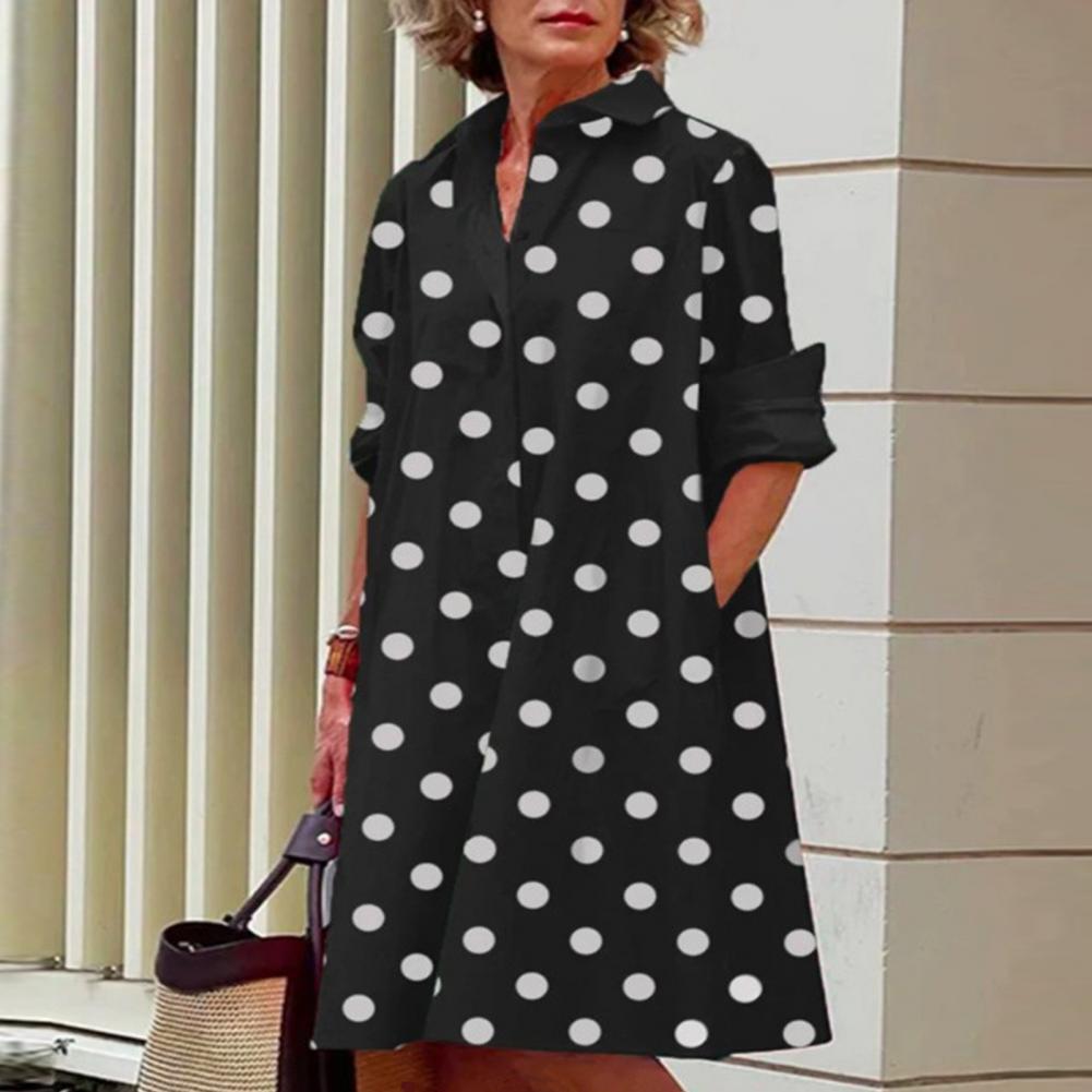 2023 아마존 유럽과 미국 크로스 국경 새로운 패션 기질 웨이브 도트 3d 인쇄 셔츠 칼라 긴 소매 긴 원피스스토어 가기
