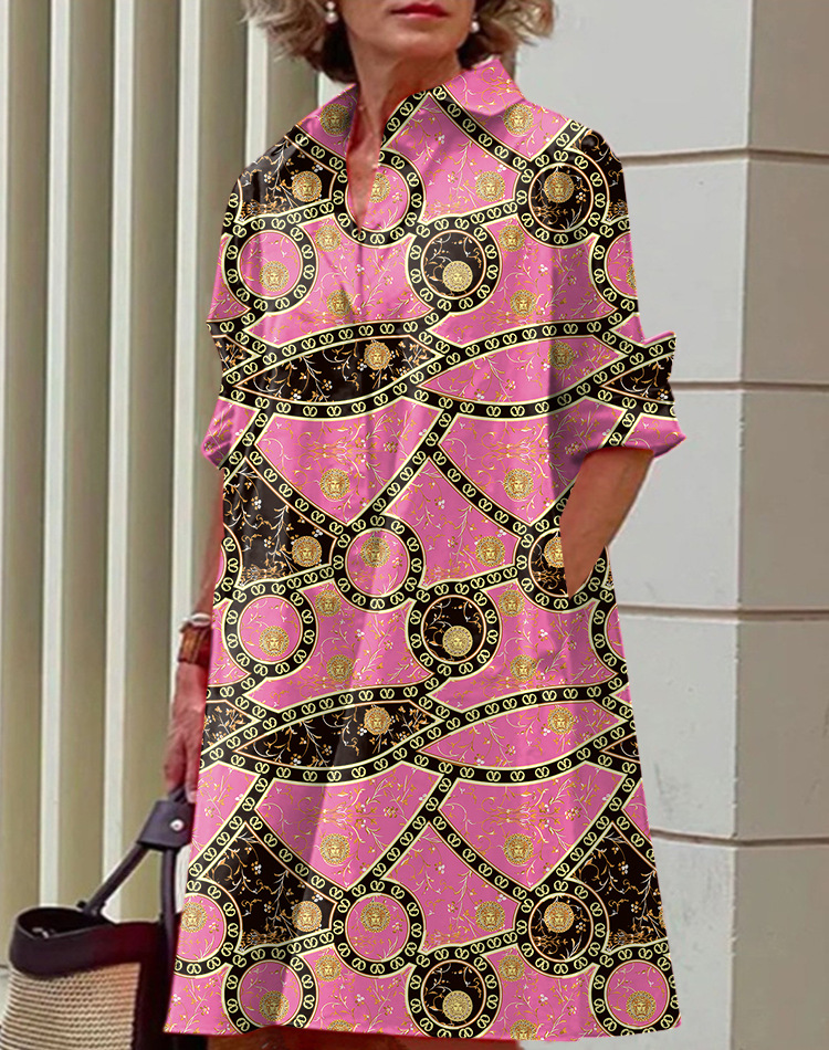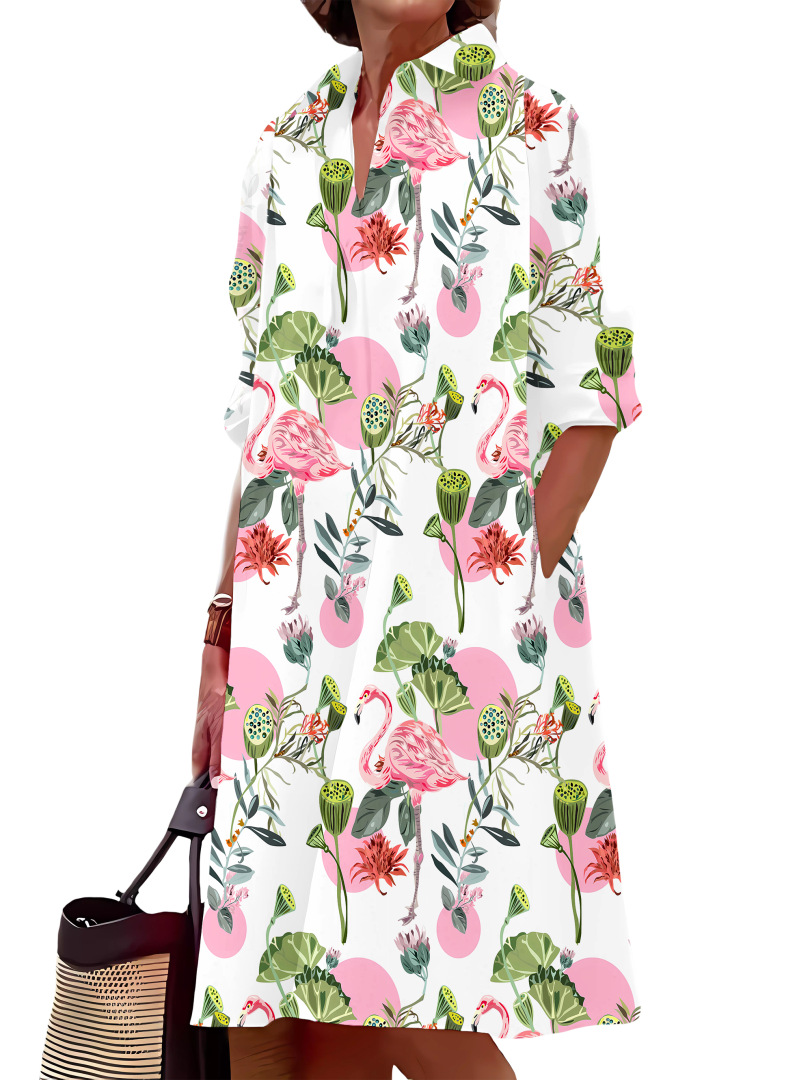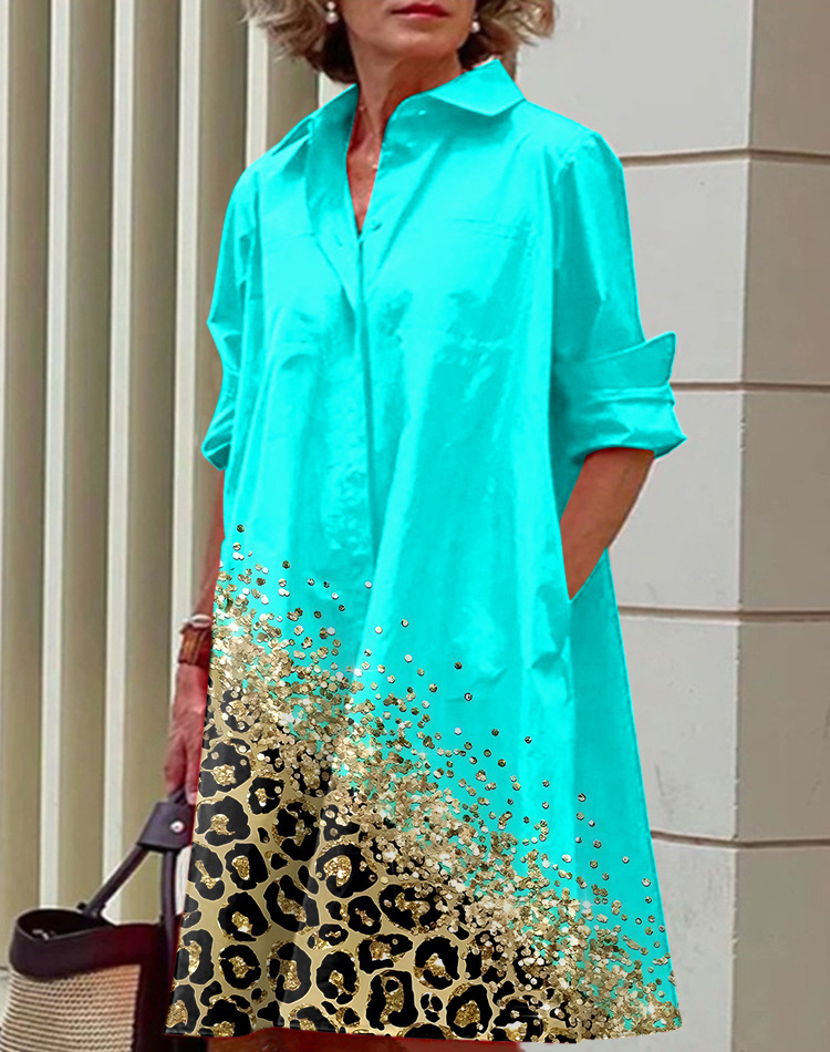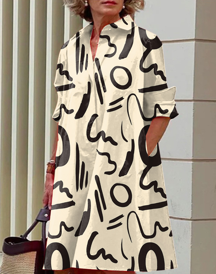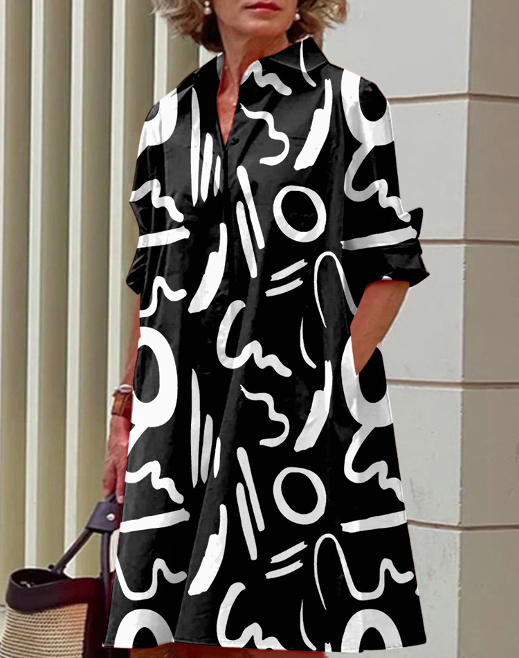 2023 아마존 유럽과 미국 크로스 국경 새로운 패션 기질 웨이브 도트 3d 인쇄 셔츠 칼라 긴 소매 긴 원피스스토어 가기
