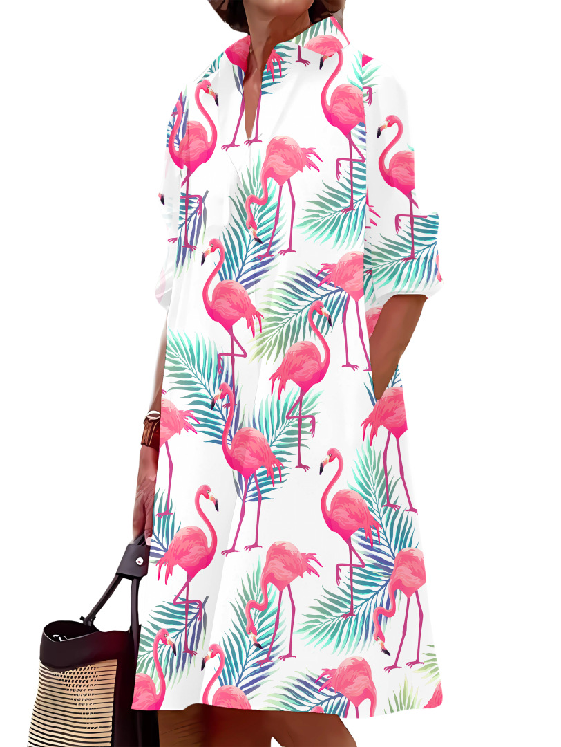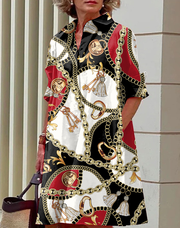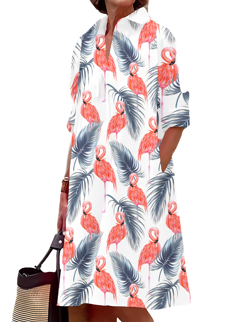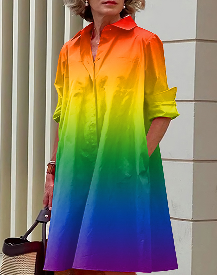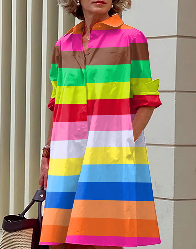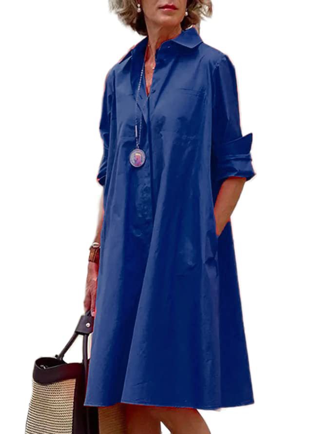 2023 아마존 유럽과 미국 크로스 국경 새로운 패션 기질 웨이브 도트 3d 인쇄 셔츠 칼라 긴 소매 긴 원피스스토어 가기