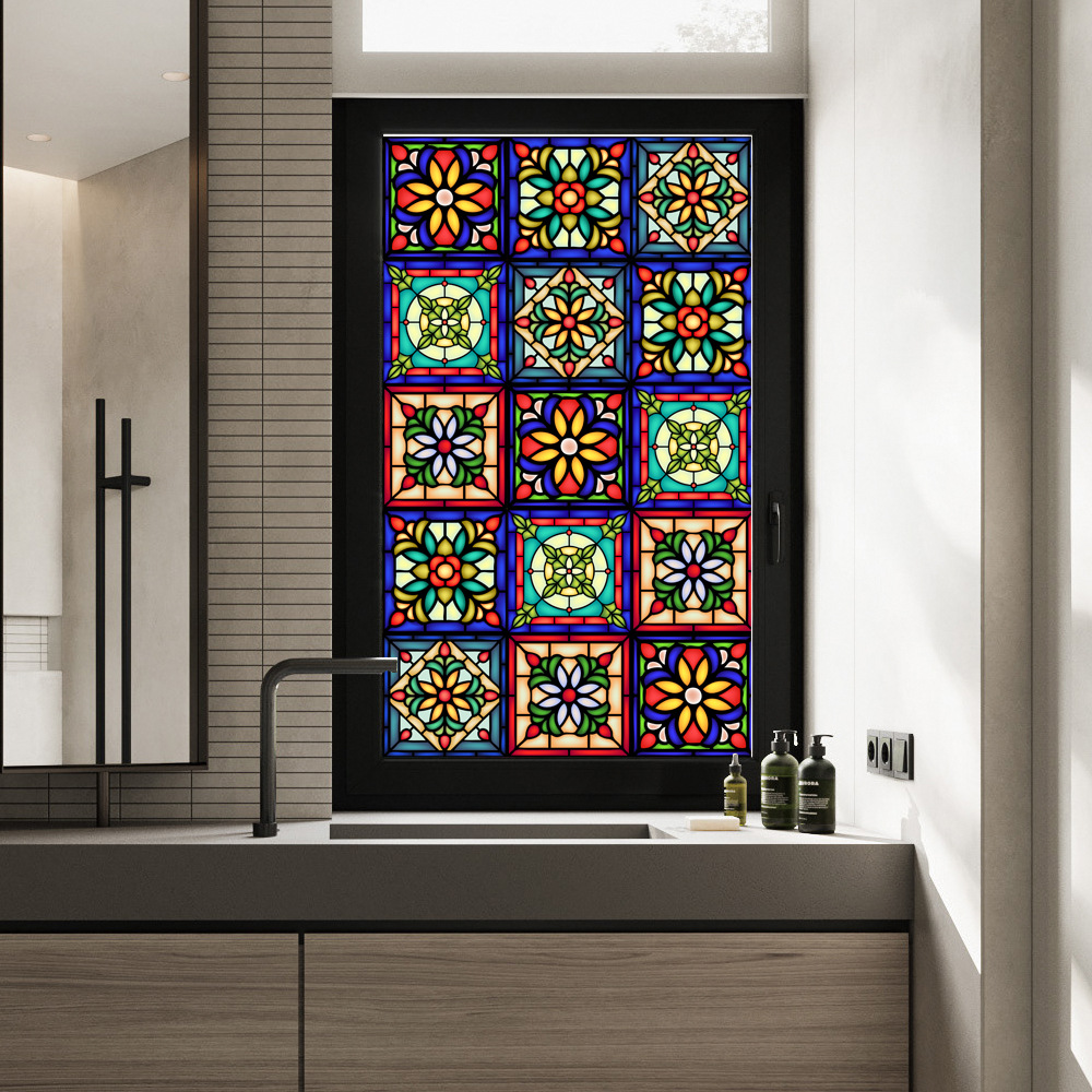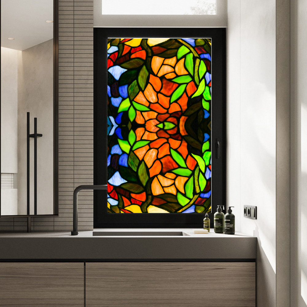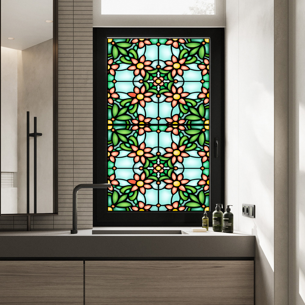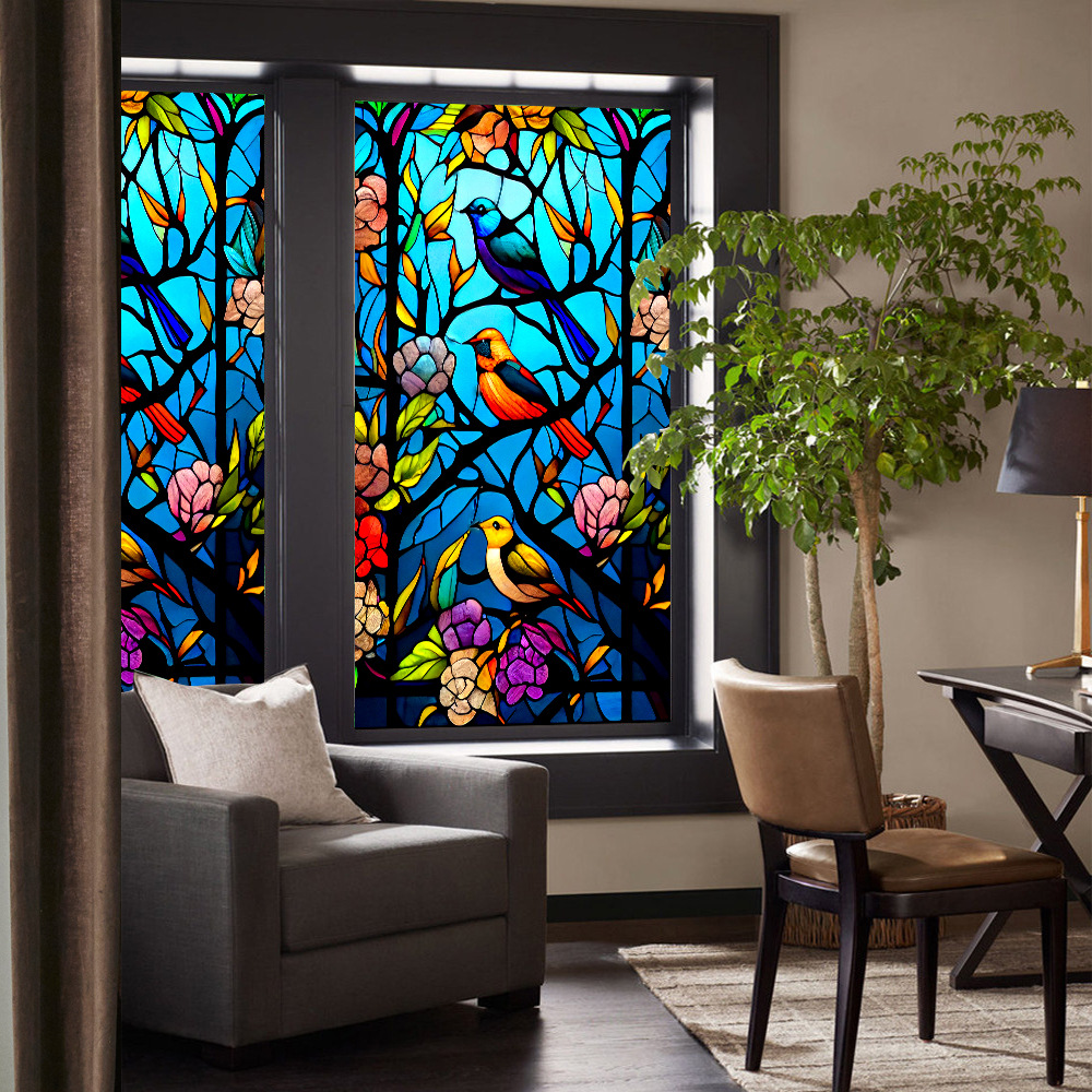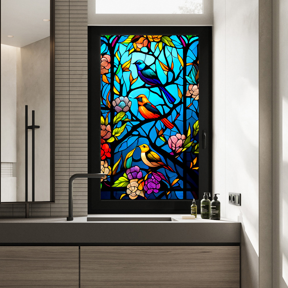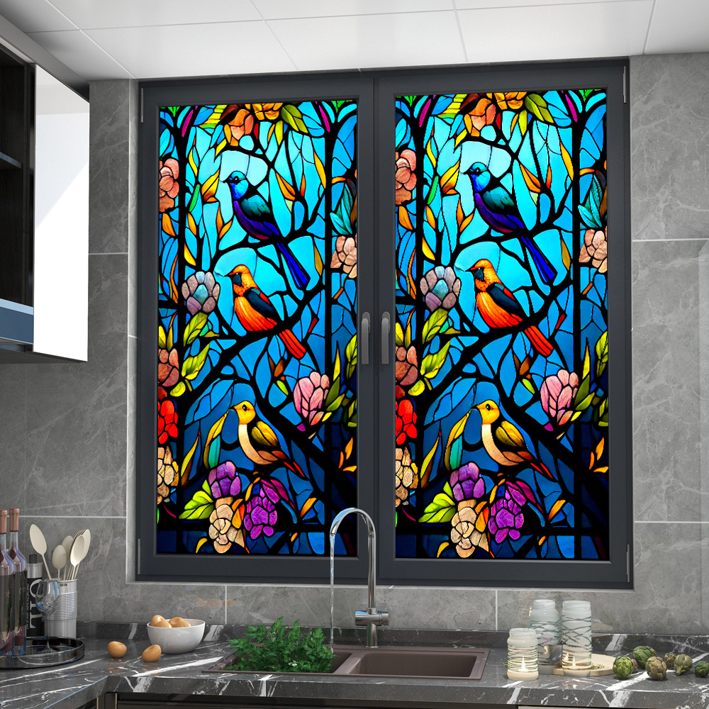 BL112-191 색 복고풍 꽃과 새 PVC 정전기 유리 스티커 접착제 창 필름 이동식 유리 창 그릴